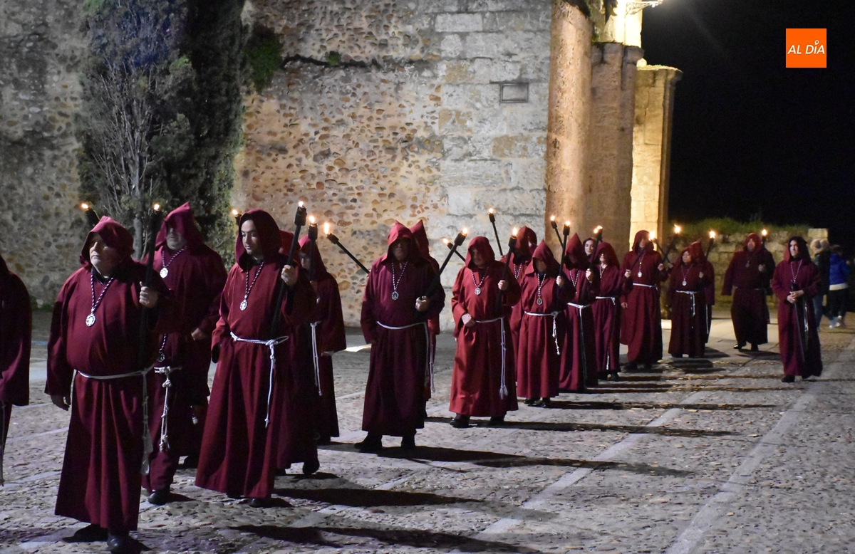 El cielo volvió a estar revuelto en Ciudad Rodrigo durante la jornada del Martes Santo (especialmente durante el segundo tramo de la mañana y la hora de comer), pero la Ilustre Cofradía de la Santa Cruz pudo llevar a cabo por la noche (a las 22.00 horas) su procesión de las Cinco Llagas de Cristo sin ningún tipo de incidencia meteorológica, salvo el frío que se levantó, que restó afluencia de público al desfile.