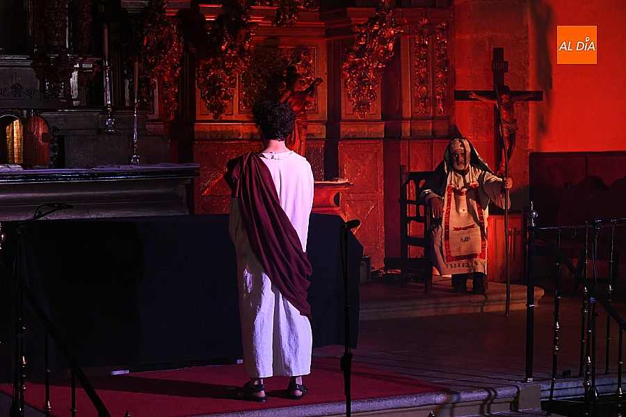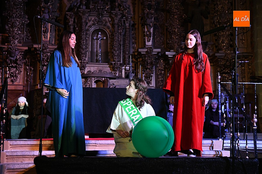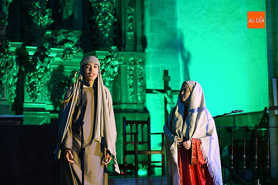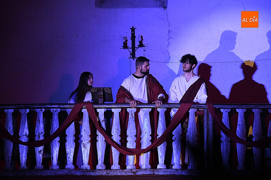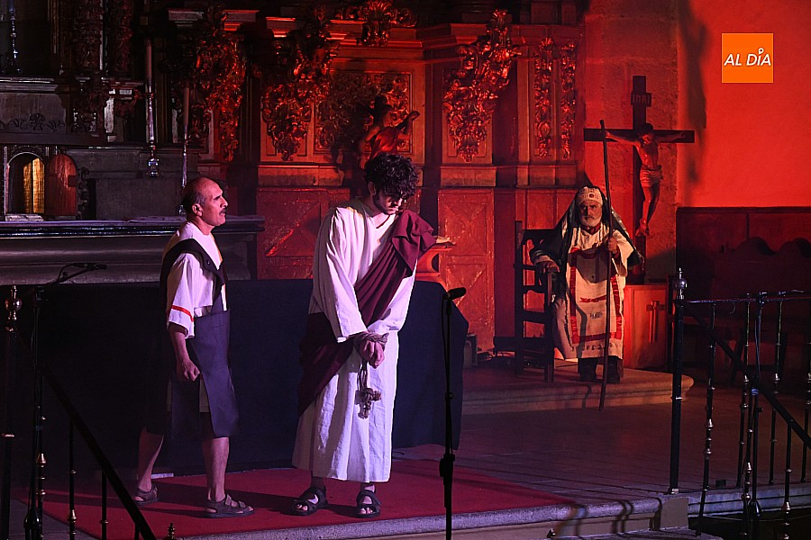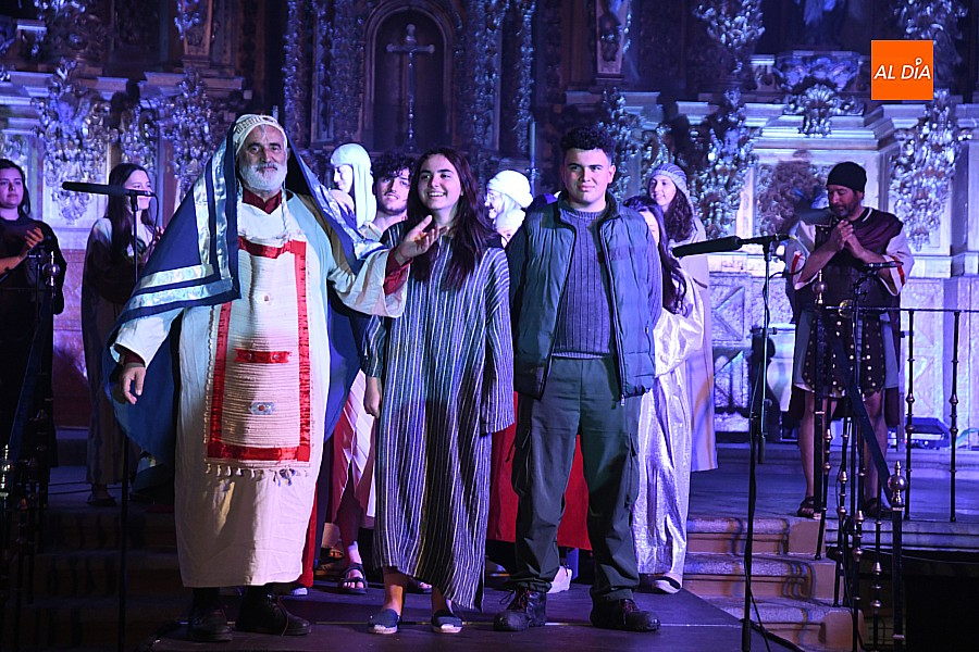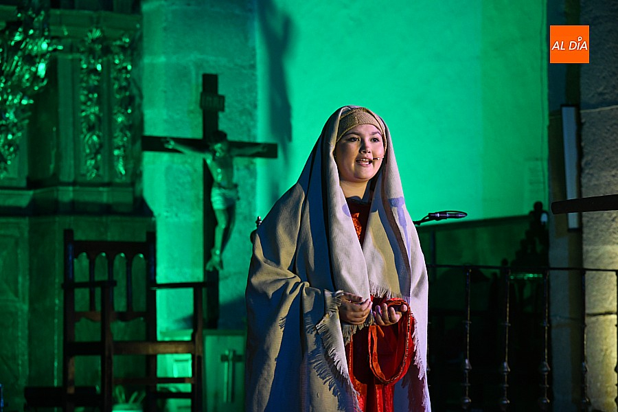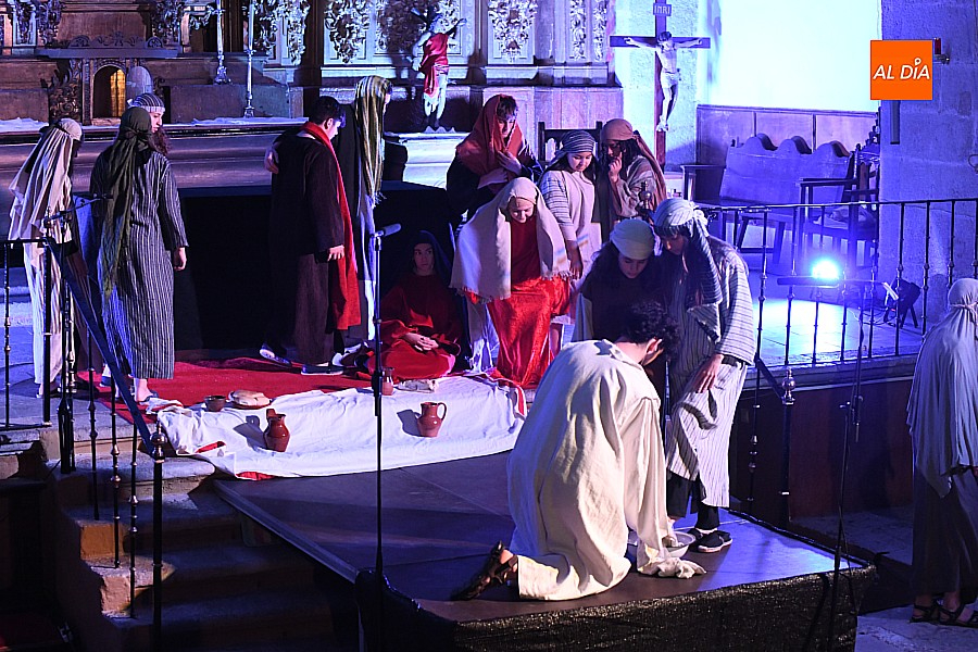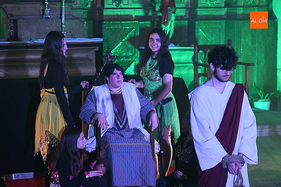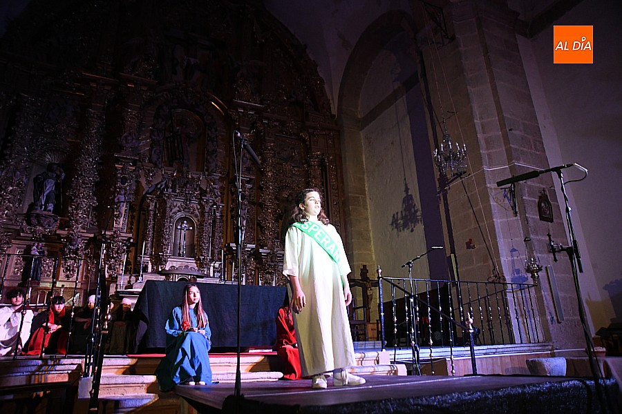 La iglesia parroquial de San Lorenzo se convirtió en un escenario excepcional y a la vez en refugio frente al frío para acoger la penúltima representación del grupo teatral El Manantial en esta Semana Santa 2025.