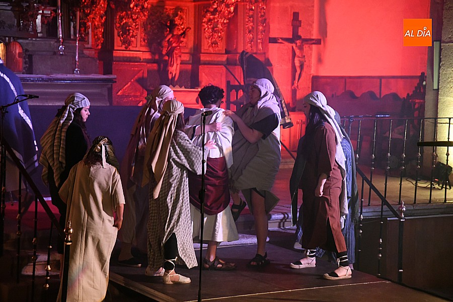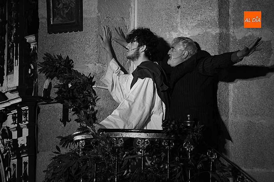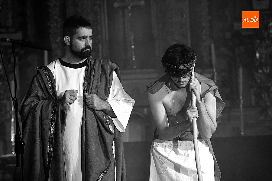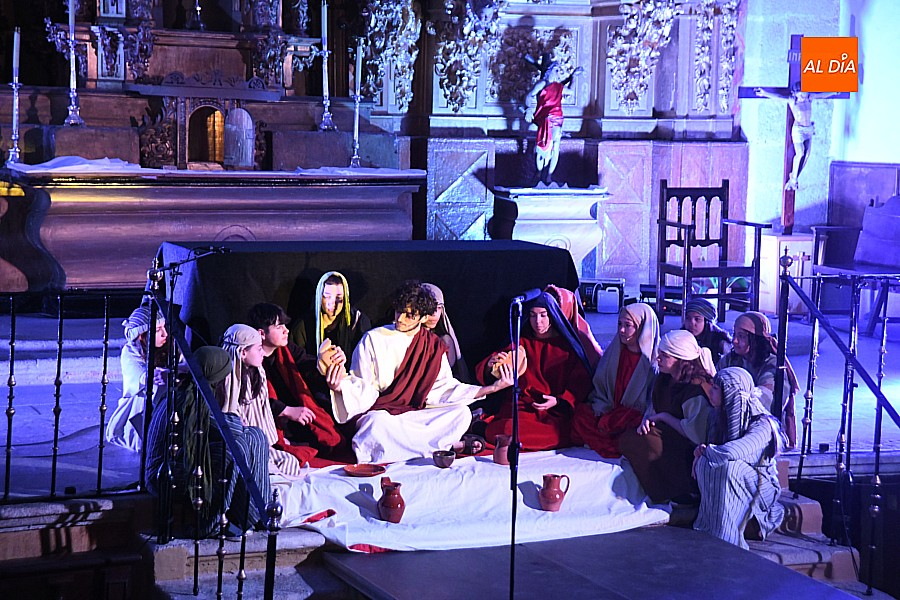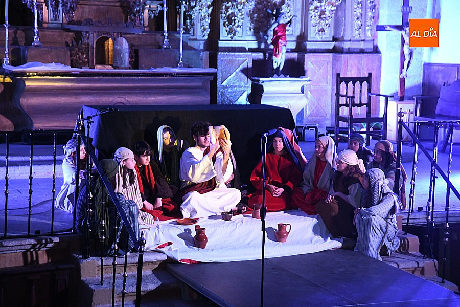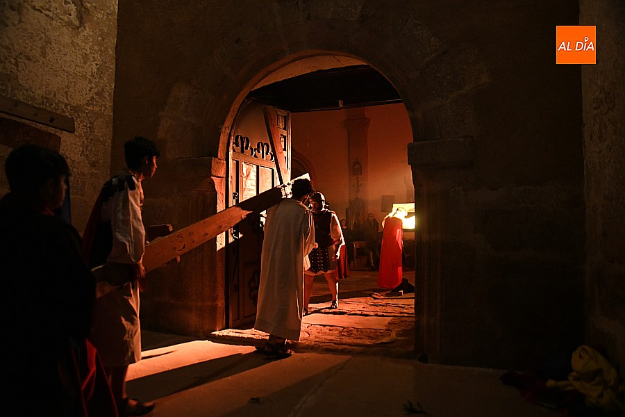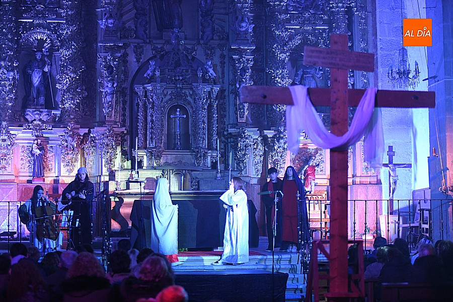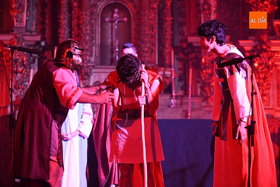 Después de recorrer distintos municipios de la diócesis, el grupo se acerca al final de su recorrido este Martes Santo en la localidad de El Bodón. La representación tuvo lugar en el interior del templo parroquial, una acertada decisión por parte de la organización, no solo por los 6ºgrados que marcaban los termómetros al inicio, sino también por los 4,5ºC que acompañaron el momento más sobrecogedor de la obra: la Crucifixión.