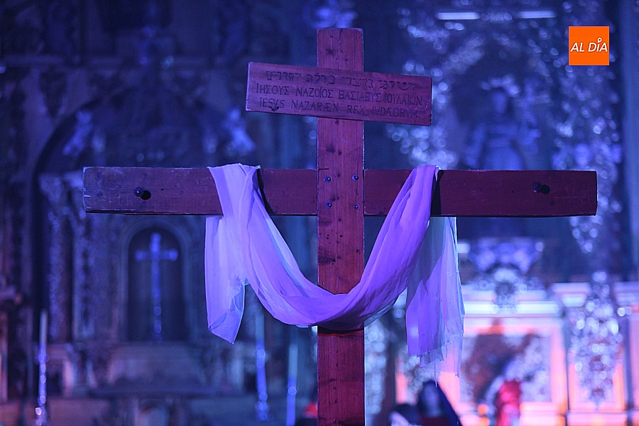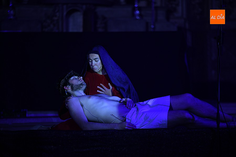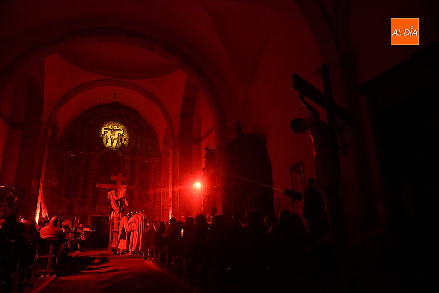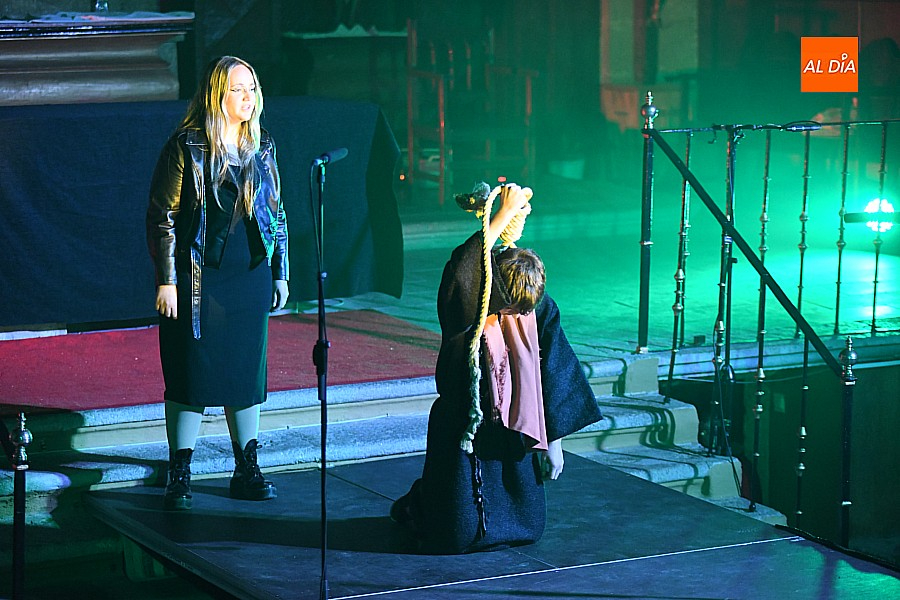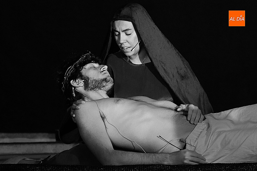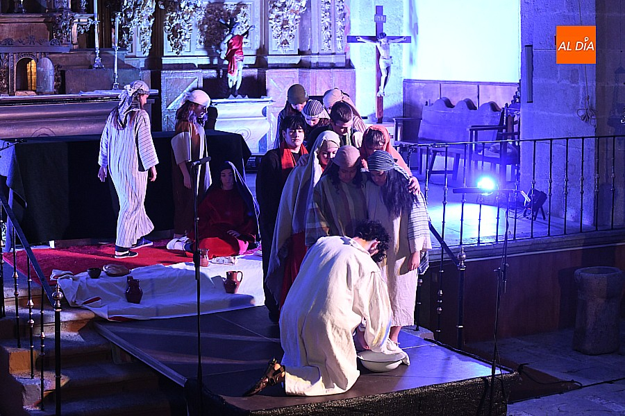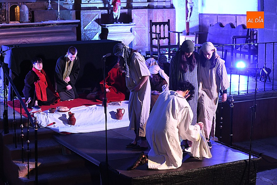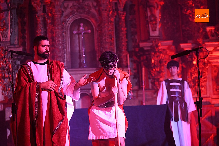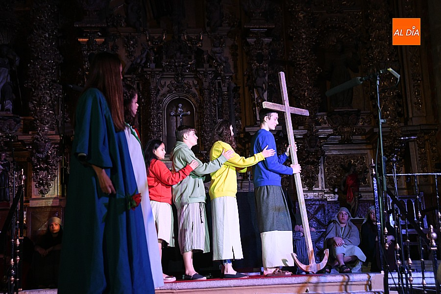 Después de recorrer distintos municipios de la diócesis, el grupo se acerca al final de su recorrido este Martes Santo en la localidad de El Bodón. La representación tuvo lugar en el interior del templo parroquial, una acertada decisión por parte de la organización, no solo por los 6ºgrados que marcaban los termómetros al inicio, sino también por los 4,5ºC que acompañaron el momento más sobrecogedor de la obra: la Crucifixión.