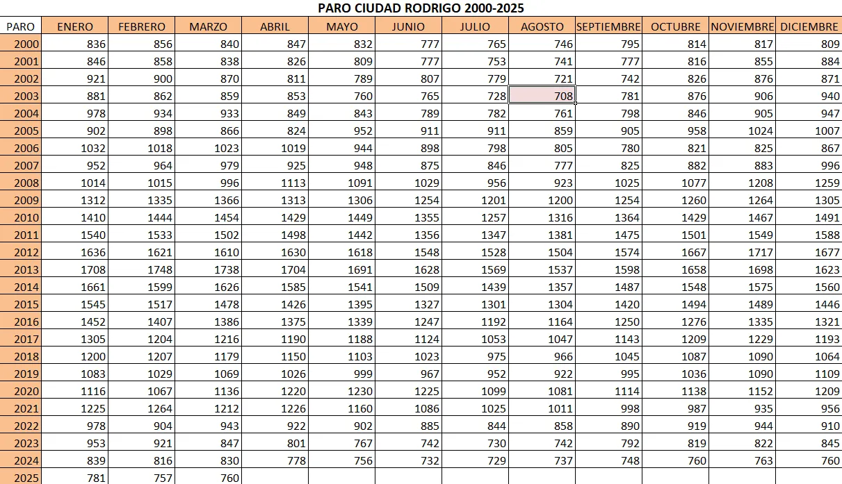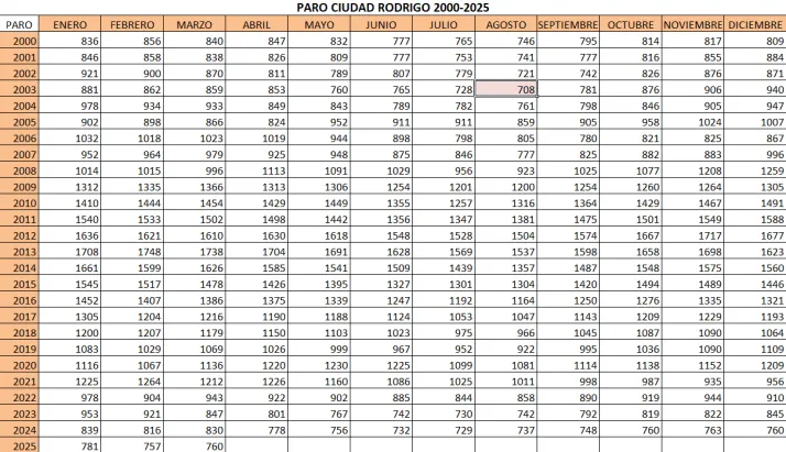 El paro registró un ligero aumento durante el mes de marzo en Ciudad Rodrigo, según los datos hechos públicos en los últimos días por el Servicio Público de Empleo Estatal (SEPE). En concreto, durante el mes anterior se pasó de 757 a 760 desempleados, que en todo caso es la menor cifra para el mes de marzo en lo que va de siglo, con bastante diferencia respecto al anterior registro más bajo, que eran los 830 de marzo de 2024.