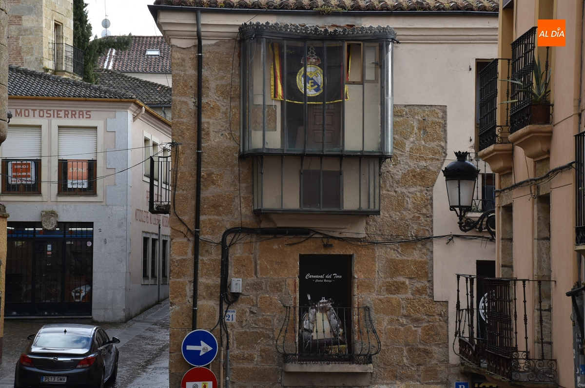 Pese a que el partido que tenía que jugar frente al Arsenal era apenas una eliminatoria de cuartos de final, al menos en la jornada del Miércoles Santo se pudo ver por las calles de Ciudad Rodrigo una bandera se supone que ‘de apoyo’ al Real Madrid, en concreto, en un balcón de la calle Colada.