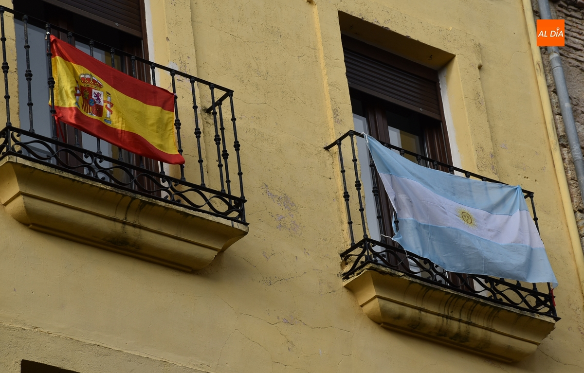 En la calle Colada también se podía encontrar en la tarde del miércoles una bandera de Argentina