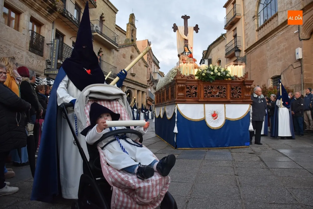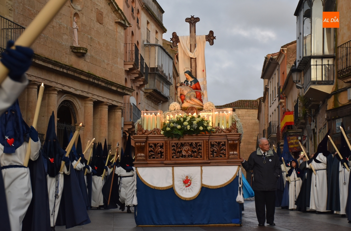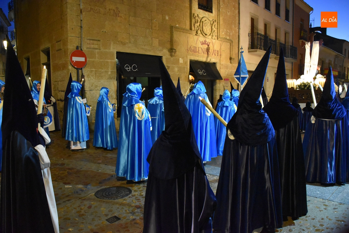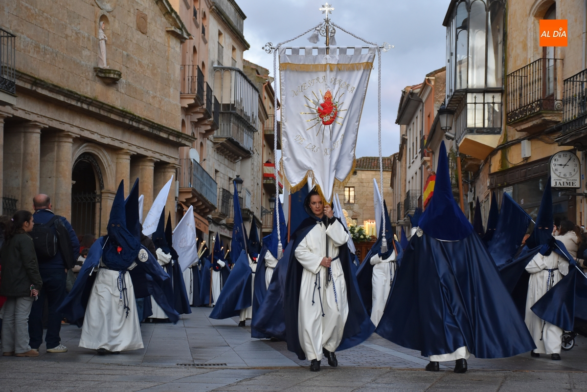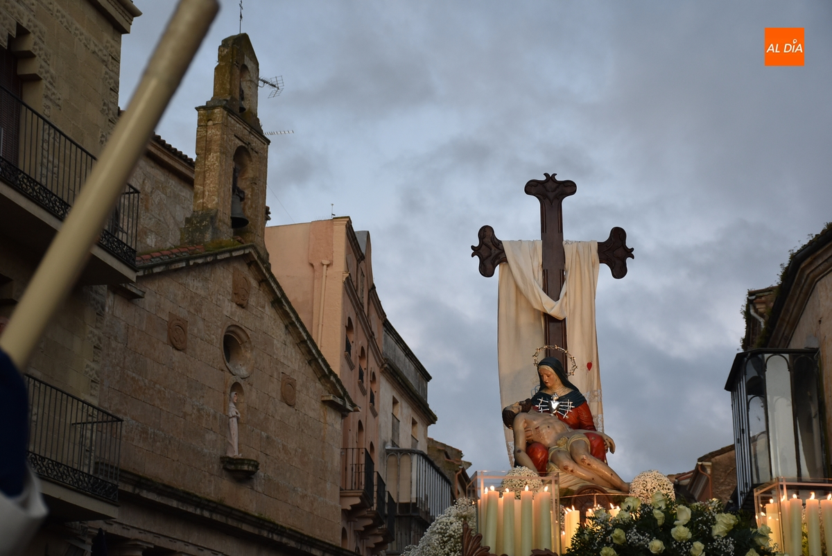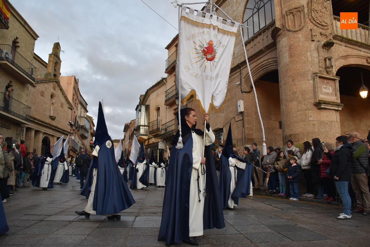 Por tercera jornada consecutiva, el cielo volvió a estar bastante revoltoso en Ciudad Rodrigo durante las horas diurnas del Miércoles Santo, pero al igual que ya ocurrió el Martes, se calmó a última hora de la tarde para permitir que se desarrollase al completo, y con total normalidad, la procesión de la Cofradía de Nuestra Señora de las Angustias, con la cual se abren los días centrales de la Semana Santa en Miróbriga.