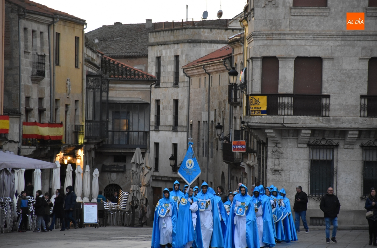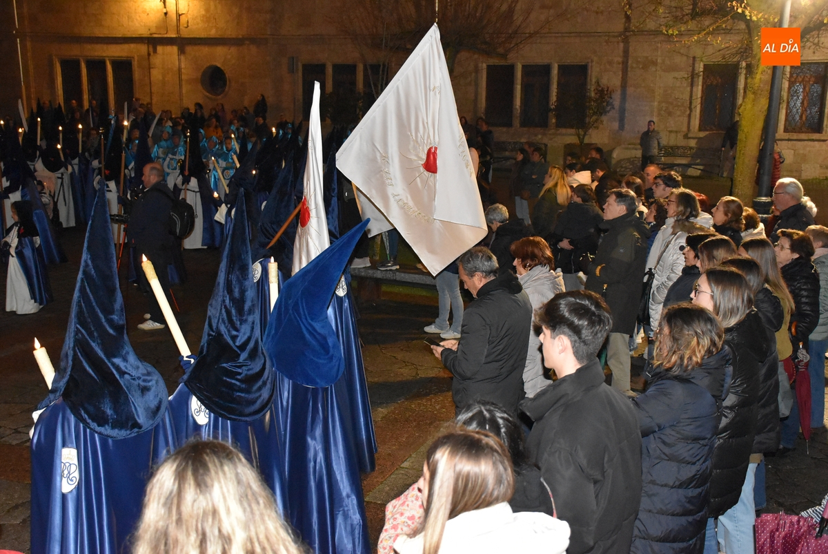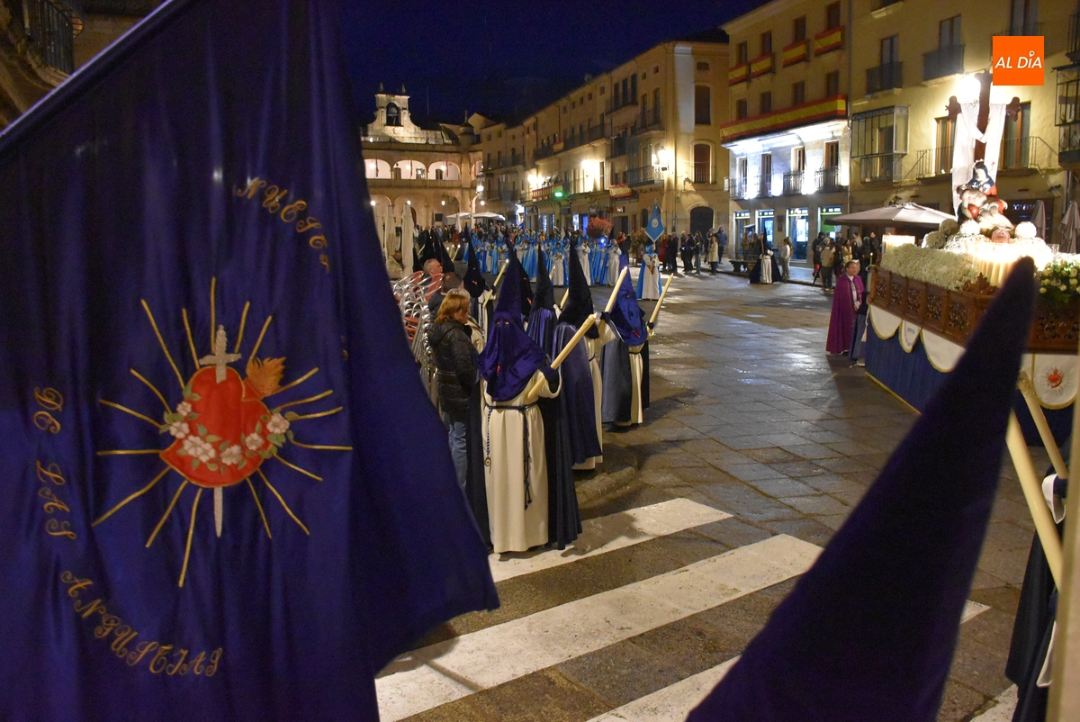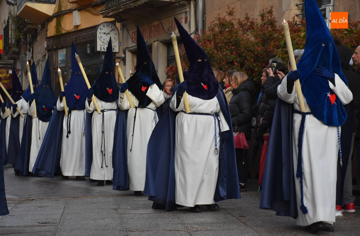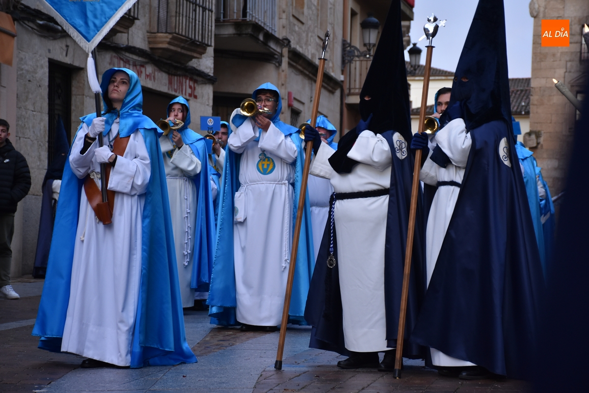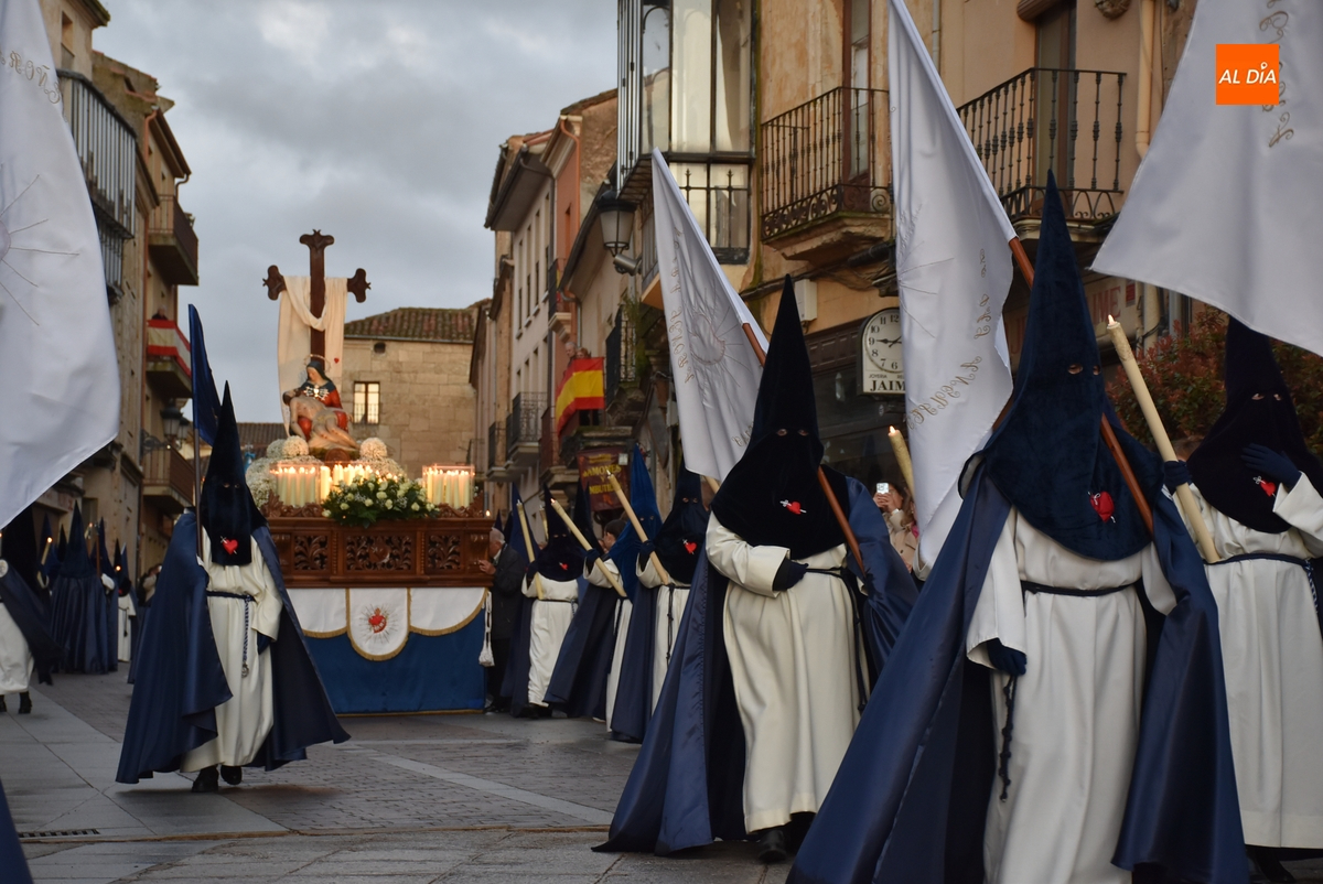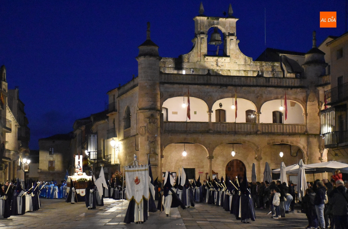 Por tercera jornada consecutiva, el cielo volvió a estar bastante revoltoso en Ciudad Rodrigo durante las horas diurnas del Miércoles Santo, pero al igual que ya ocurrió el Martes, se calmó a última hora de la tarde para permitir que se desarrollase al completo, y con total normalidad, la procesión de la Cofradía de Nuestra Señora de las Angustias, con la cual se abren los días centrales de la Semana Santa en Miróbriga.