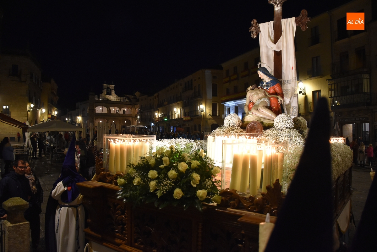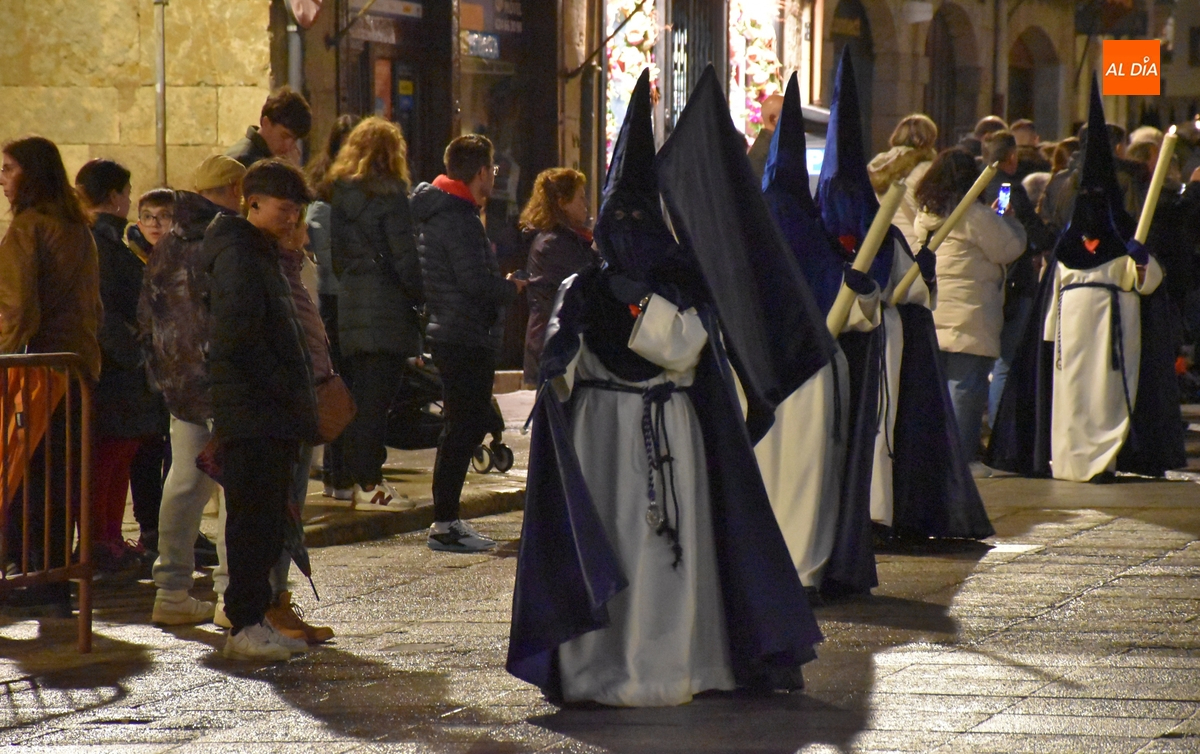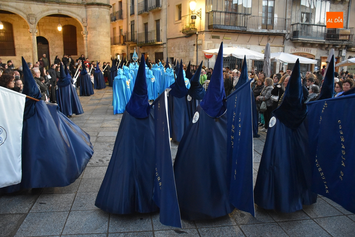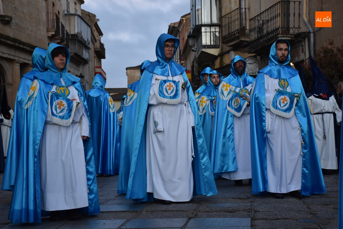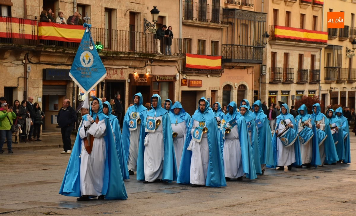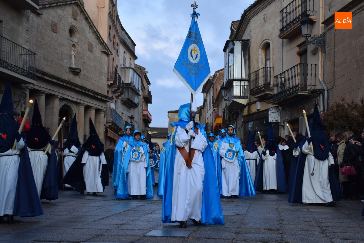 Por tercera jornada consecutiva, el cielo volvió a estar bastante revoltoso en Ciudad Rodrigo durante las horas diurnas del Miércoles Santo, pero al igual que ya ocurrió el Martes, se calmó a última hora de la tarde para permitir que se desarrollase al completo, y con total normalidad, la procesión de la Cofradía de Nuestra Señora de las Angustias, con la cual se abren los días centrales de la Semana Santa en Miróbriga.