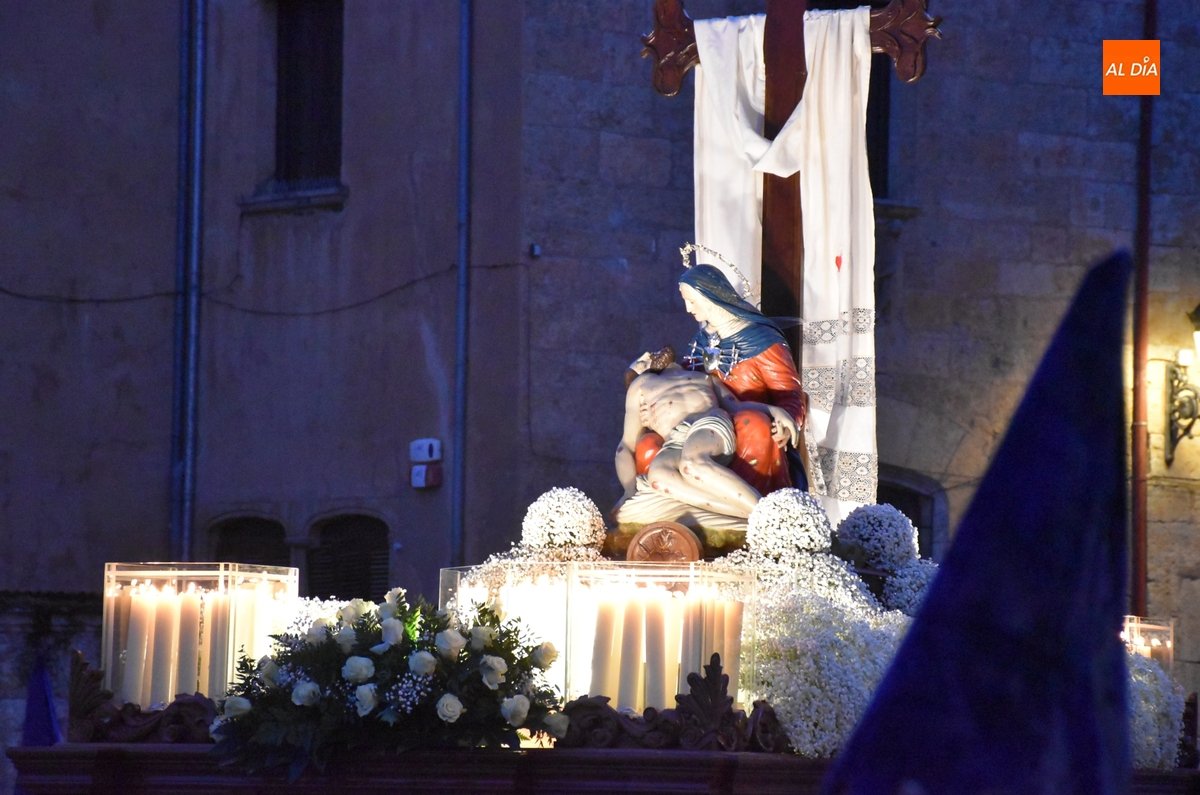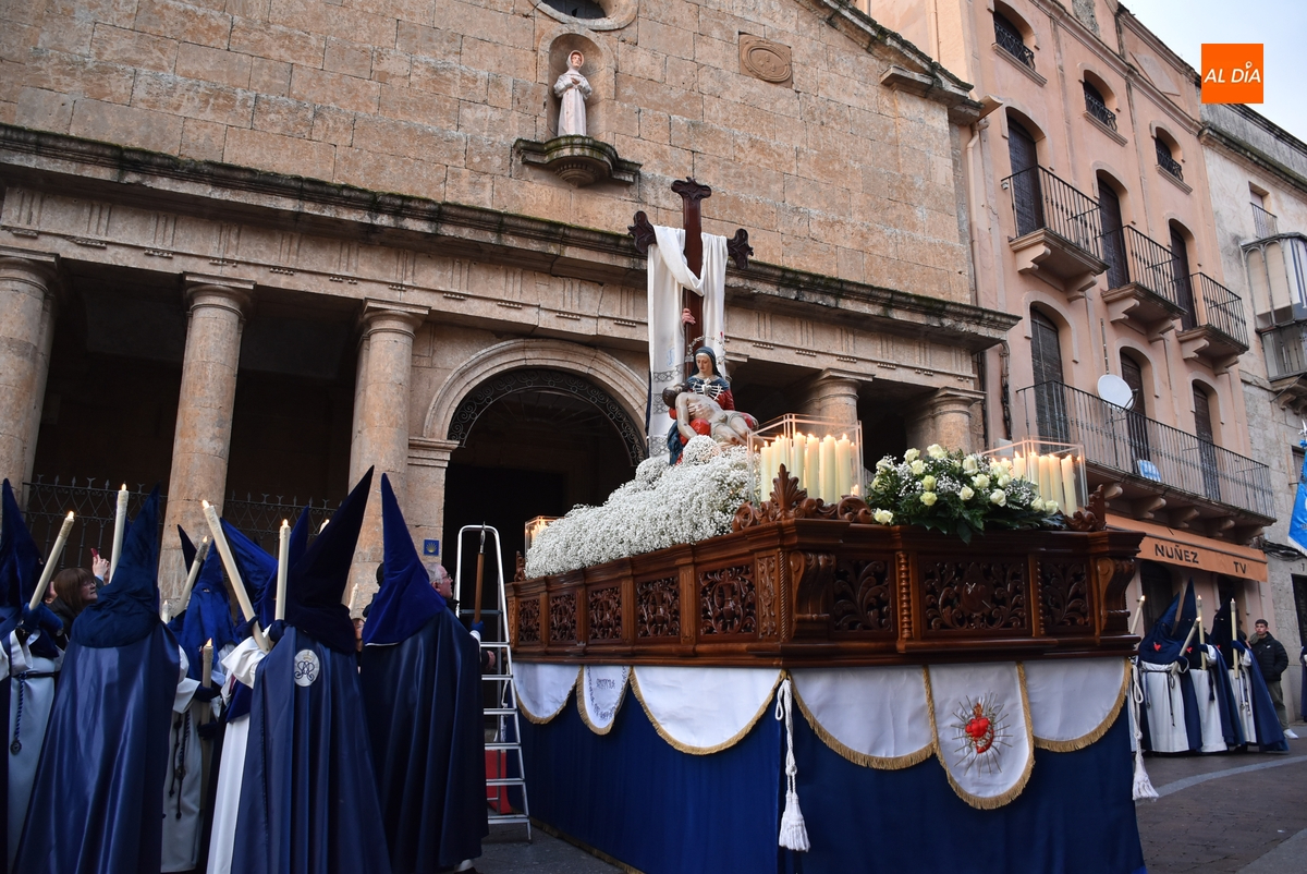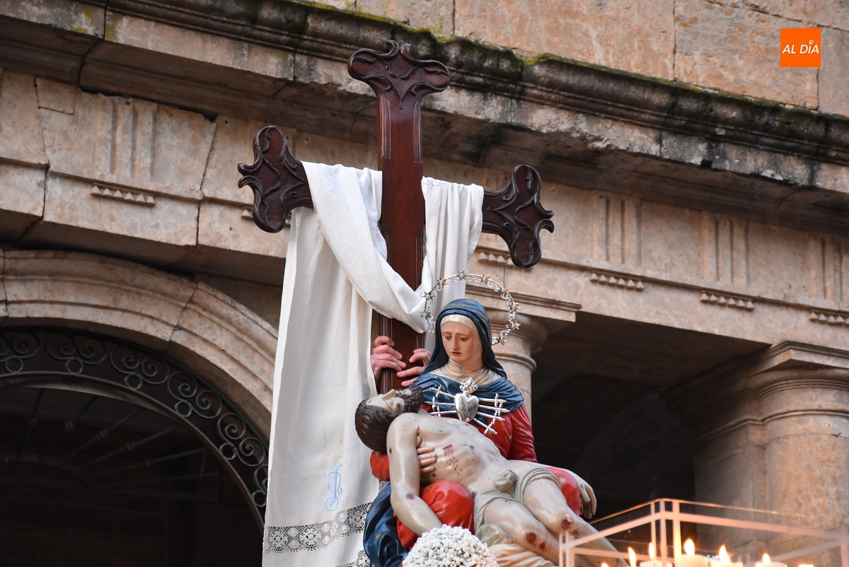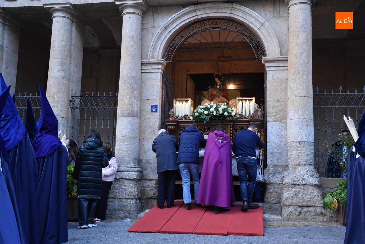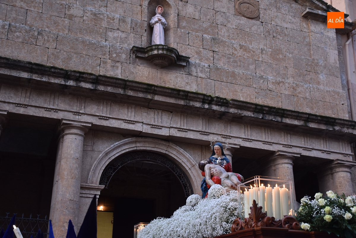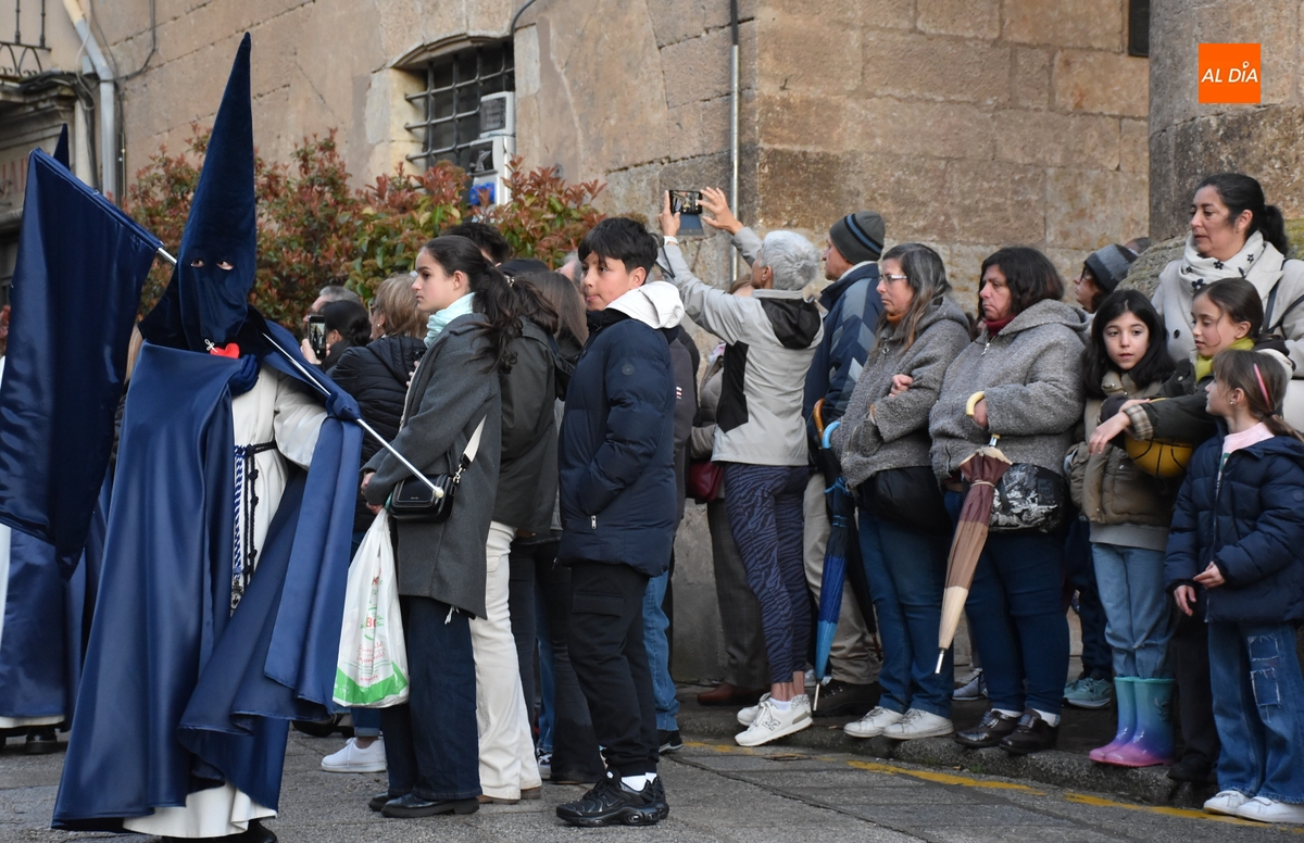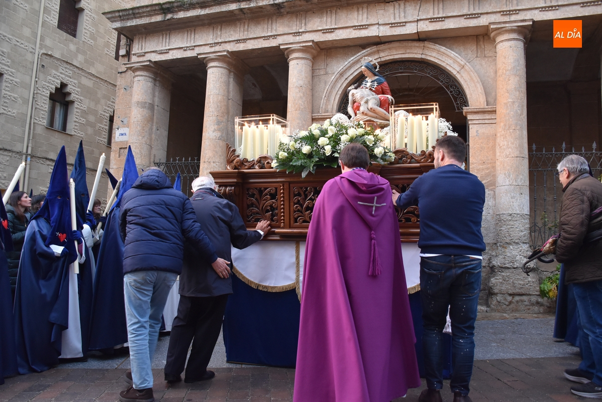 Por tercera jornada consecutiva, el cielo volvió a estar bastante revoltoso en Ciudad Rodrigo durante las horas diurnas del Miércoles Santo, pero al igual que ya ocurrió el Martes, se calmó a última hora de la tarde para permitir que se desarrollase al completo, y con total normalidad, la procesión de la Cofradía de Nuestra Señora de las Angustias, con la cual se abren los días centrales de la Semana Santa en Miróbriga.