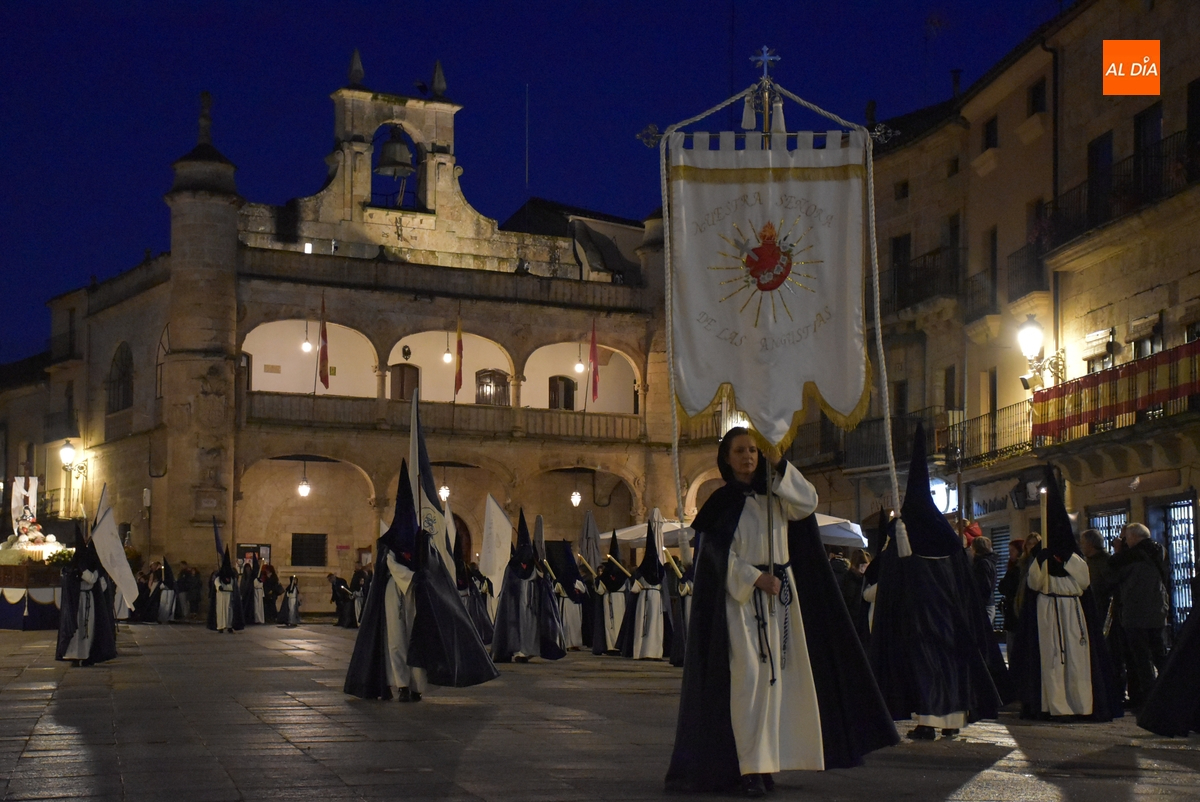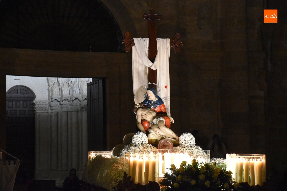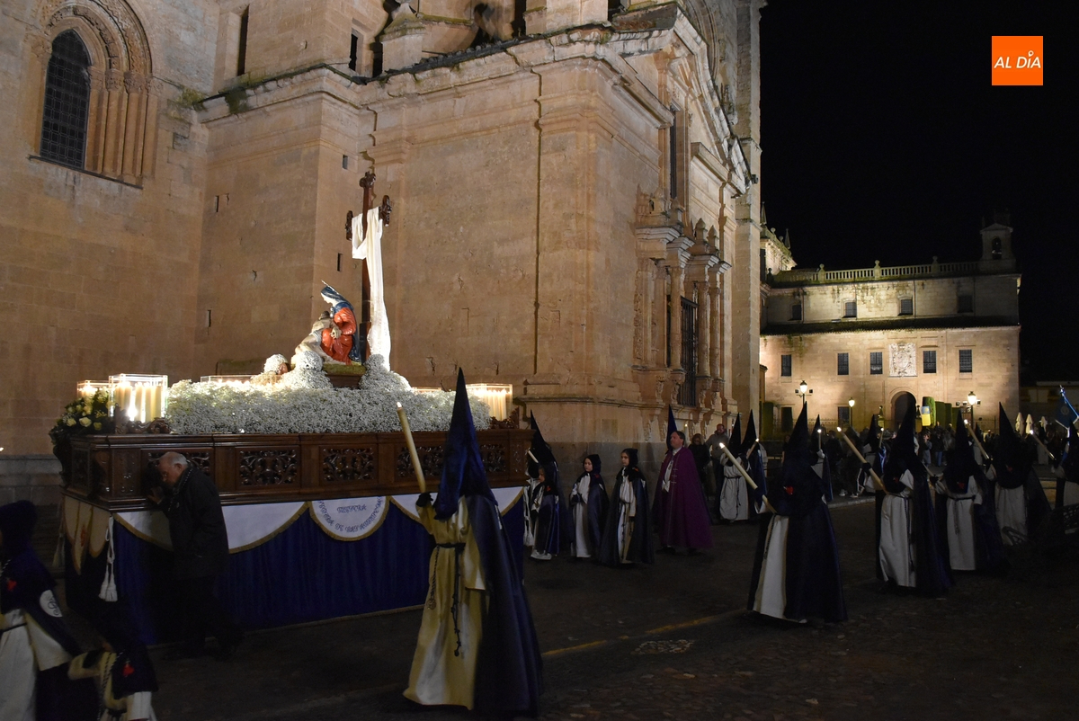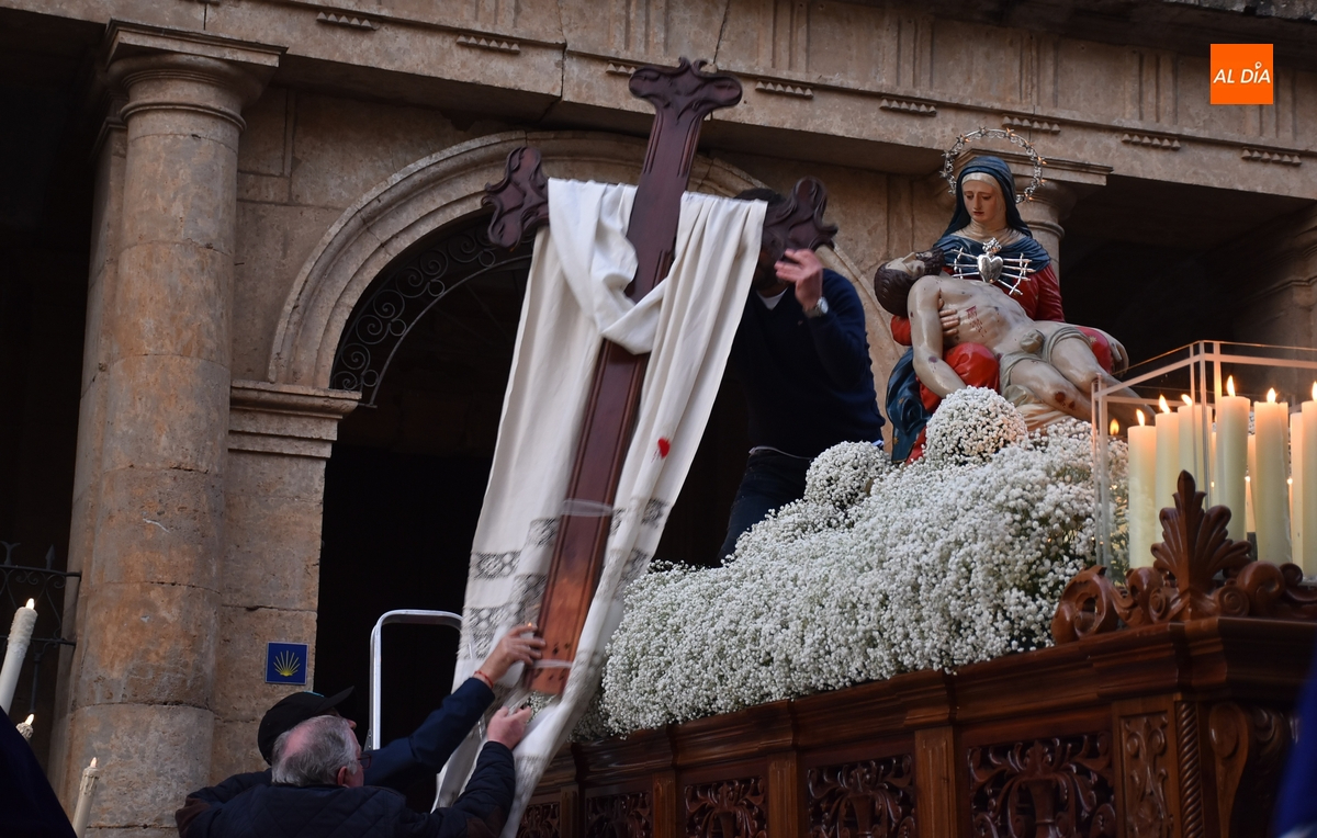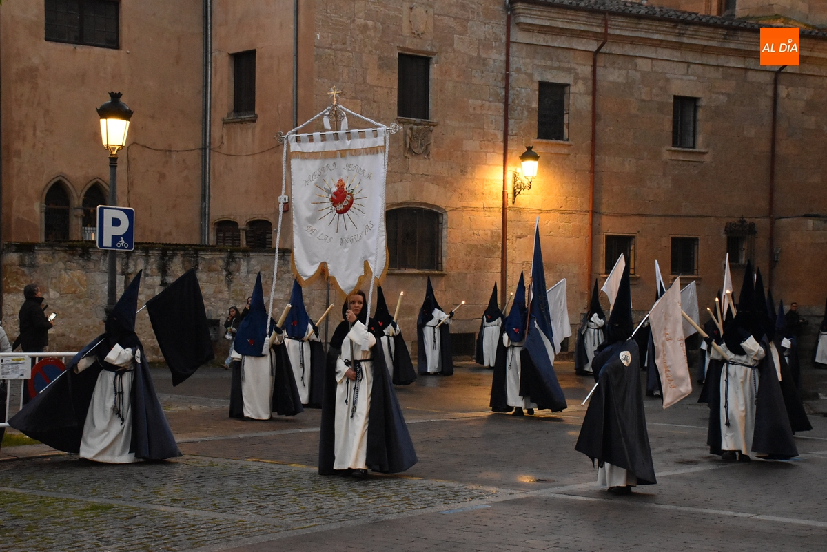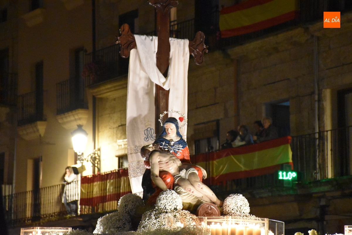 Por tercera jornada consecutiva, el cielo volvió a estar bastante revoltoso en Ciudad Rodrigo durante las horas diurnas del Miércoles Santo, pero al igual que ya ocurrió el Martes, se calmó a última hora de la tarde para permitir que se desarrollase al completo, y con total normalidad, la procesión de la Cofradía de Nuestra Señora de las Angustias, con la cual se abren los días centrales de la Semana Santa en Miróbriga.