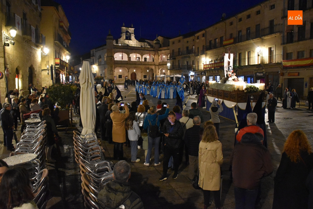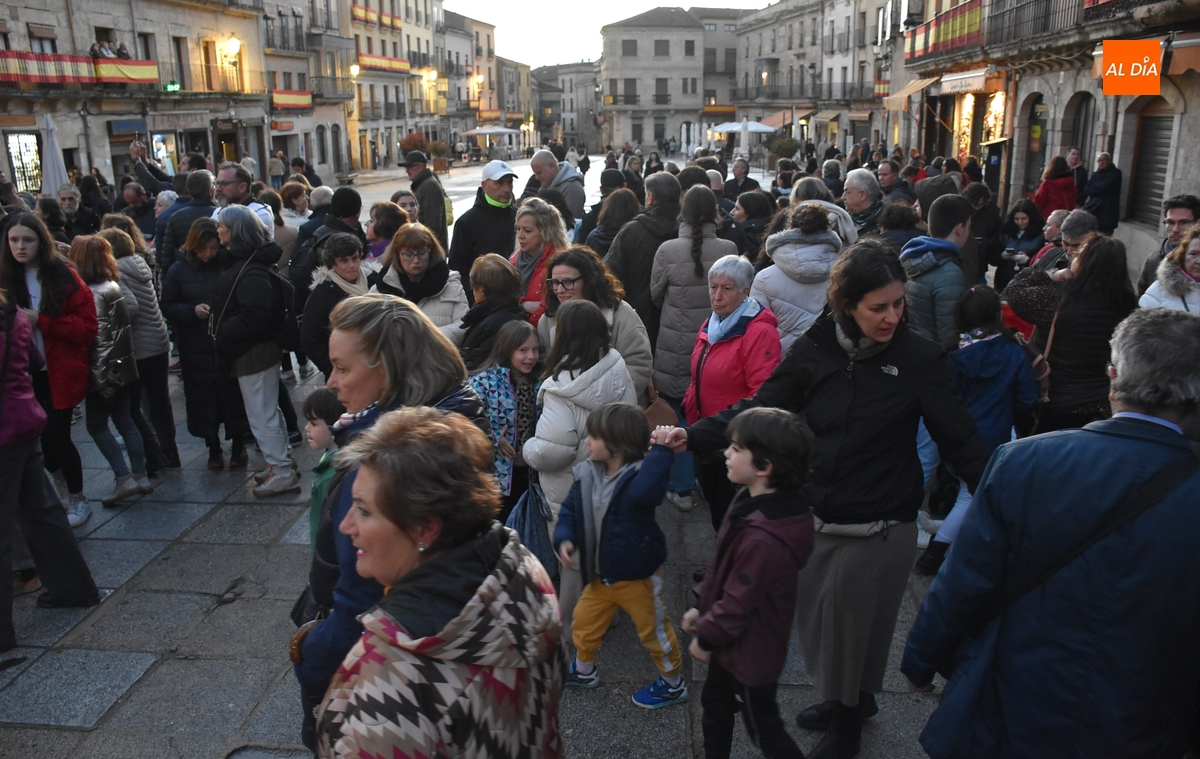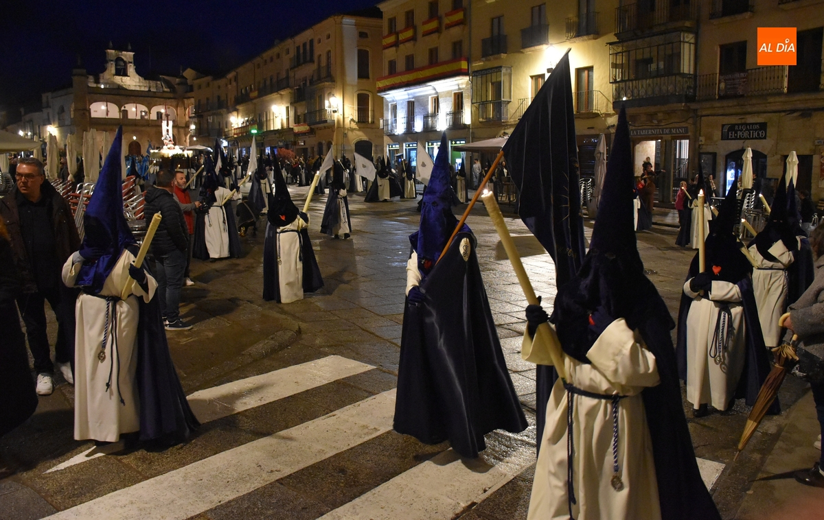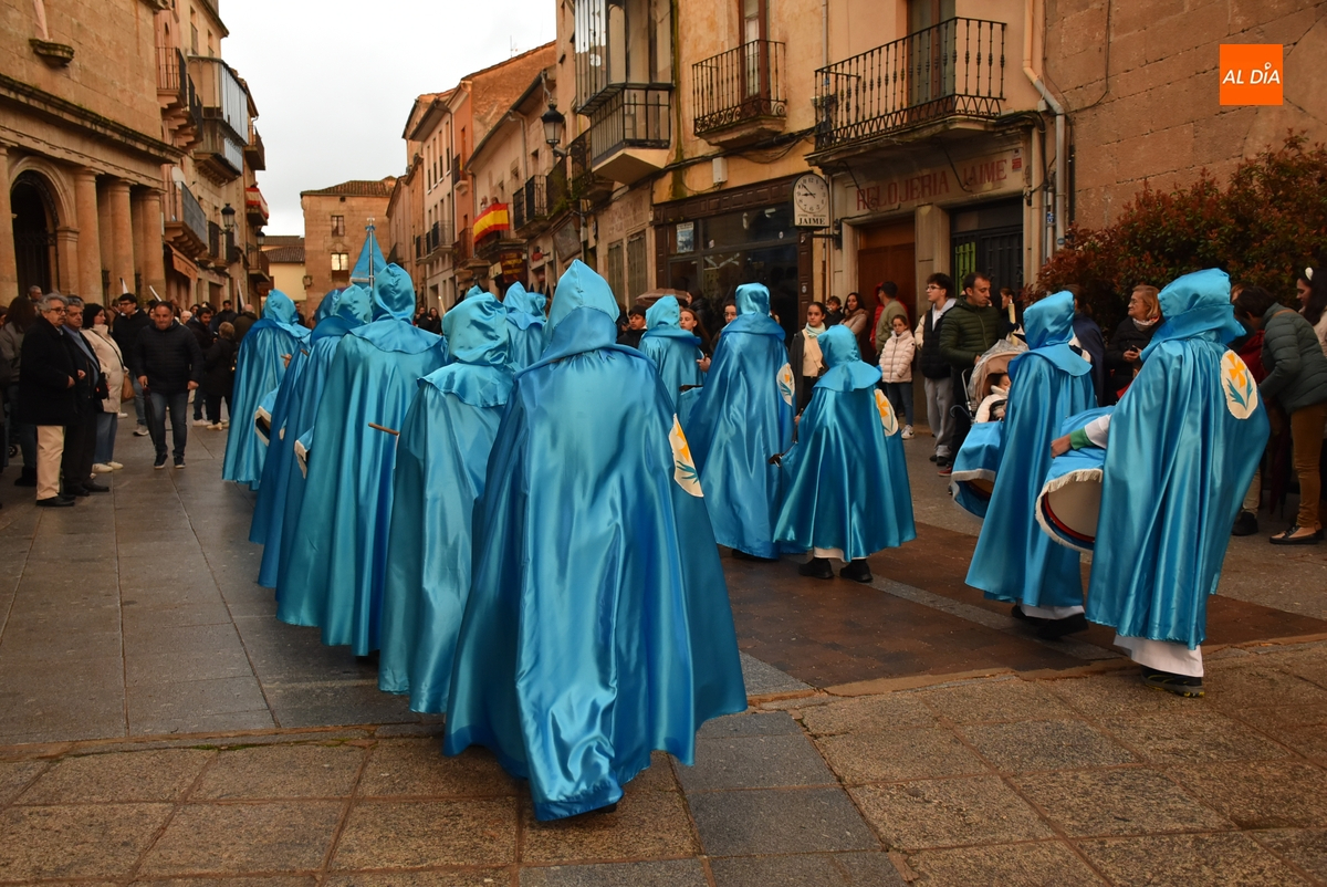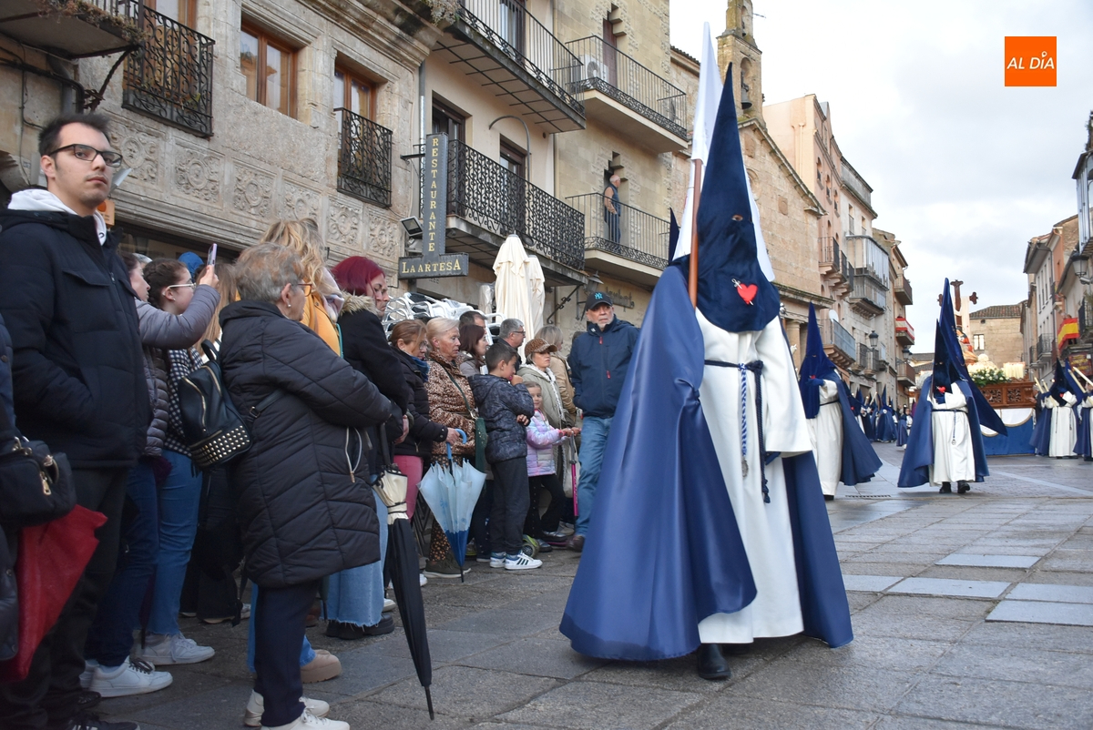 Tras recorrer la Plazuela Cristóbal de Castillejo, unos metros del Campo del Pozo y de la calle Arco, la calle Gigantes y la Rúa del Sol, volvió a la Plaza (donde hacía 11ºC), que descendió al completo, realizando una parada junto a la calle Julián Sánchez para disfrutar de otra pieza de la Coral Mirobrigense Dámaso Ledesma. Junto a estas canciones, la procesión tuvo la animación musical continua de la Banda de Cornetas y Tambores de la Cofradía de Jesús Amigo de los Niños.