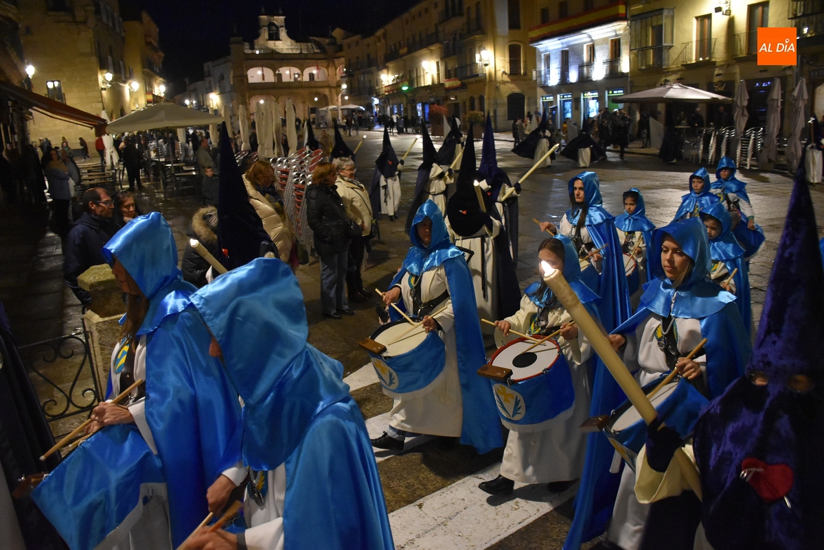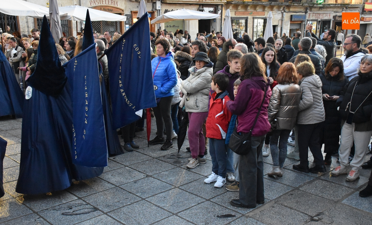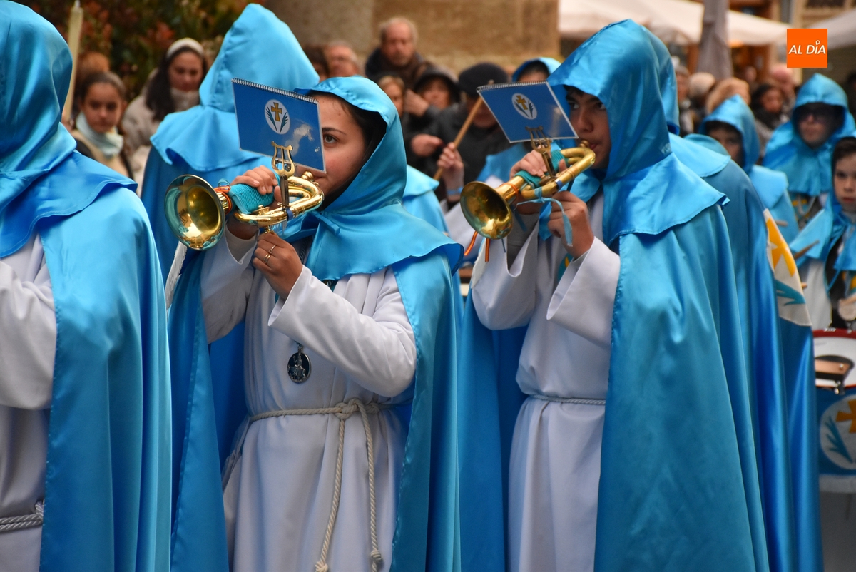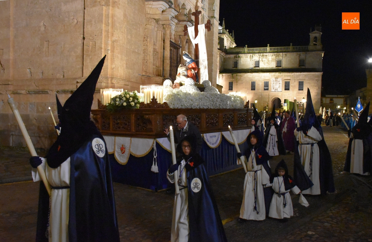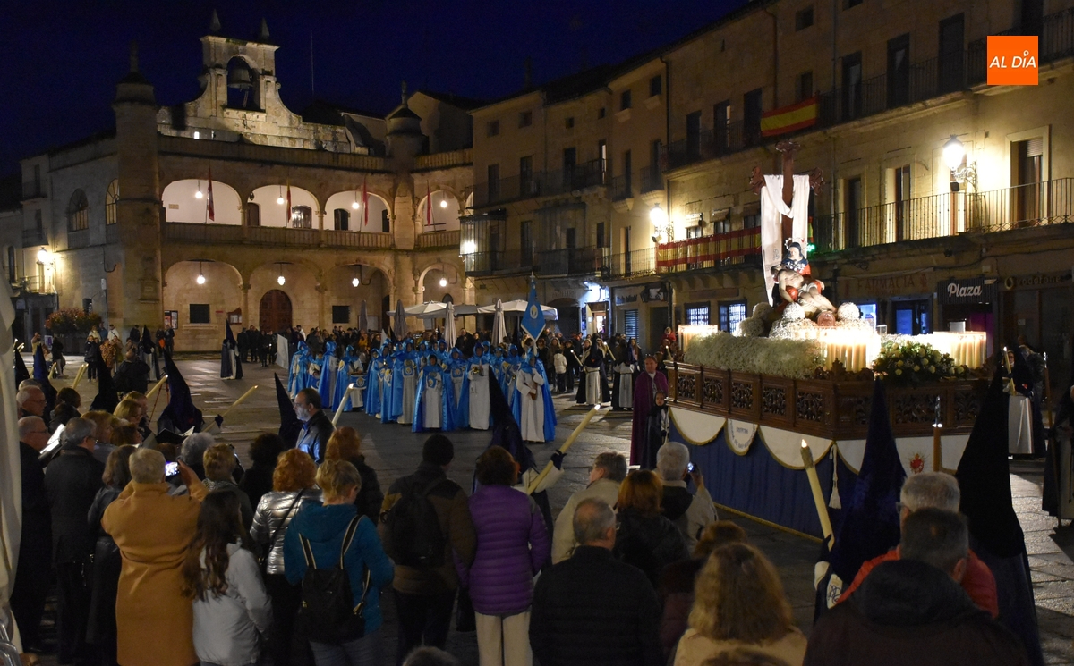 Tras recorrer la Plazuela Cristóbal de Castillejo, unos metros del Campo del Pozo y de la calle Arco, la calle Gigantes y la Rúa del Sol, volvió a la Plaza (donde hacía 11ºC), que descendió al completo, realizando una parada junto a la calle Julián Sánchez para disfrutar de otra pieza de la Coral Mirobrigense Dámaso Ledesma. Junto a estas canciones, la procesión tuvo la animación musical continua de la Banda de Cornetas y Tambores de la Cofradía de Jesús Amigo de los Niños.