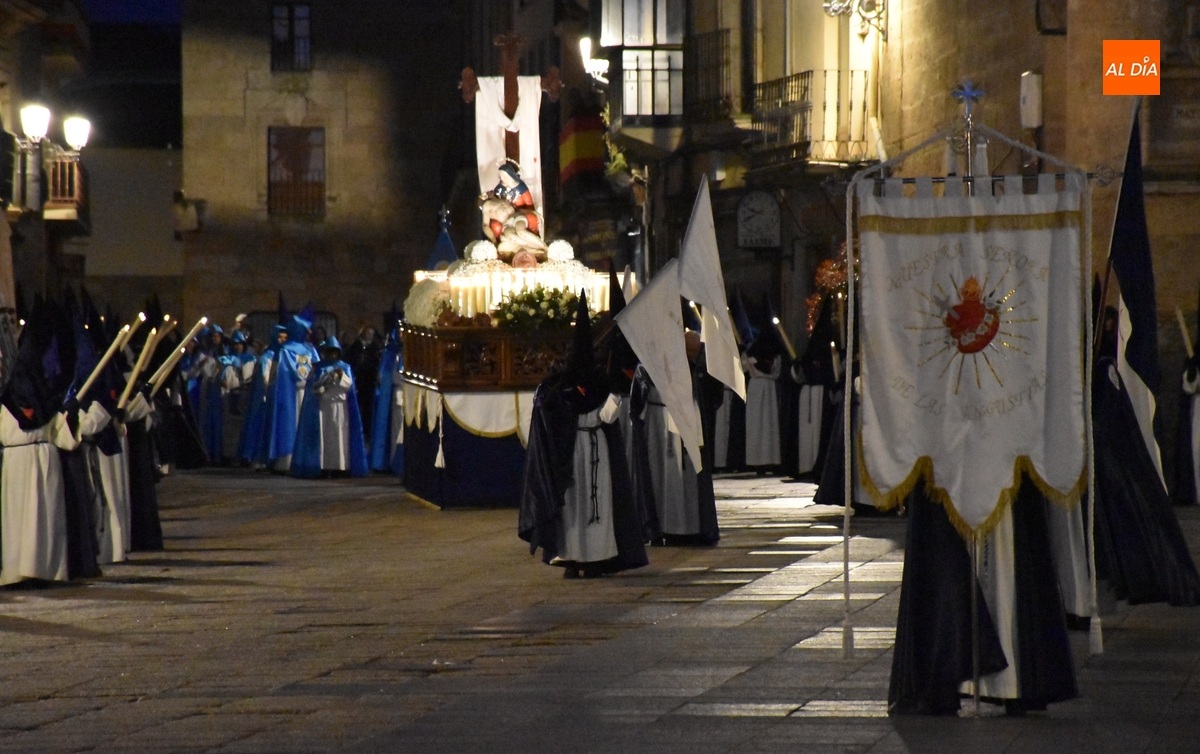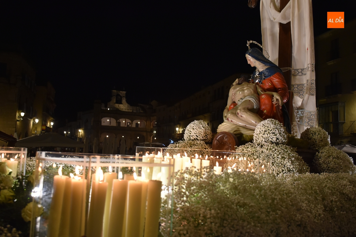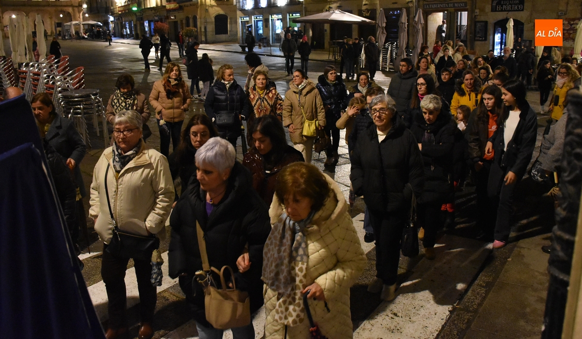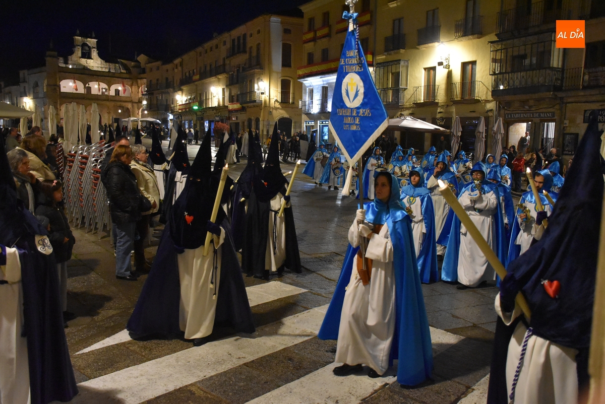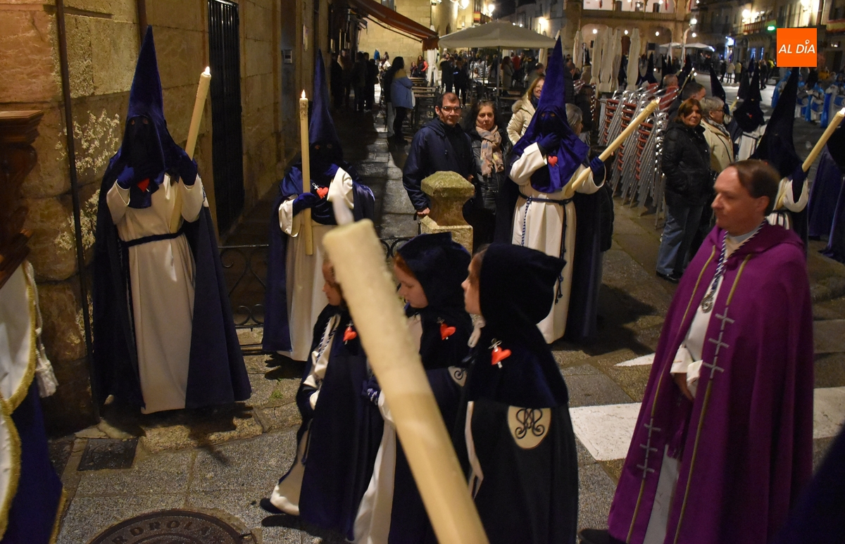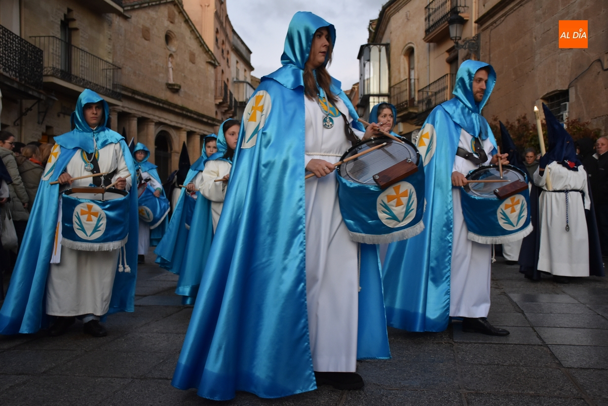Tras recorrer la Plazuela Cristóbal de Castillejo, unos metros del Campo del Pozo y de la calle Arco, la calle Gigantes y la Rúa del Sol, volvió a la Plaza (donde hacía 11ºC), que descendió al completo, realizando una parada junto a la calle Julián Sánchez para disfrutar de otra pieza de la Coral Mirobrigense Dámaso Ledesma. Junto a estas canciones, la procesión tuvo la animación musical continua de la Banda de Cornetas y Tambores de la Cofradía de Jesús Amigo de los Niños.