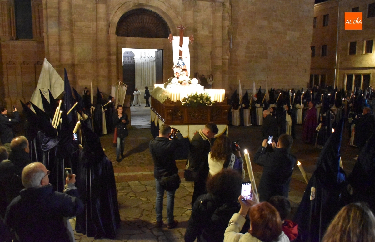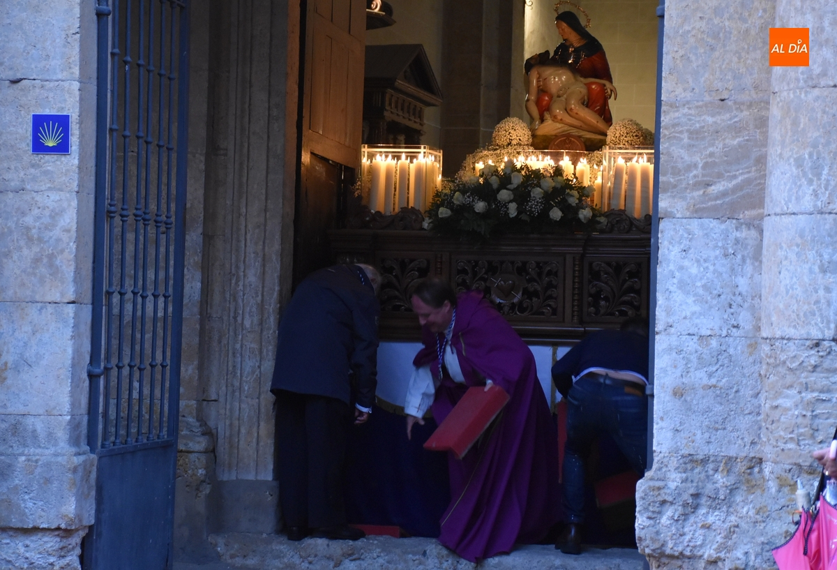En el tramo final, la Virgen de las Angustias recorrió la calle Cardenal Pacheco al completo para salir a la zona de la Catedral, alcanzando la Plazuela de Herrasti, donde como es habitual se cantó la Salve. Tras un Viva a la Virgen por parte del capellán, se empezó a introducir la imagen de la Virgen en el Pórtico del Perdón, donde unas cuantas personas aprovecharon para tomar fotos antes de emprender rumbo a casa.