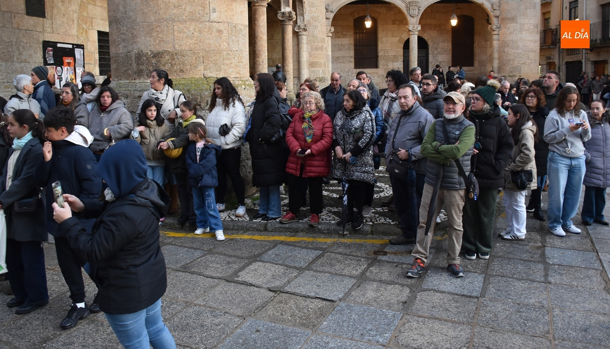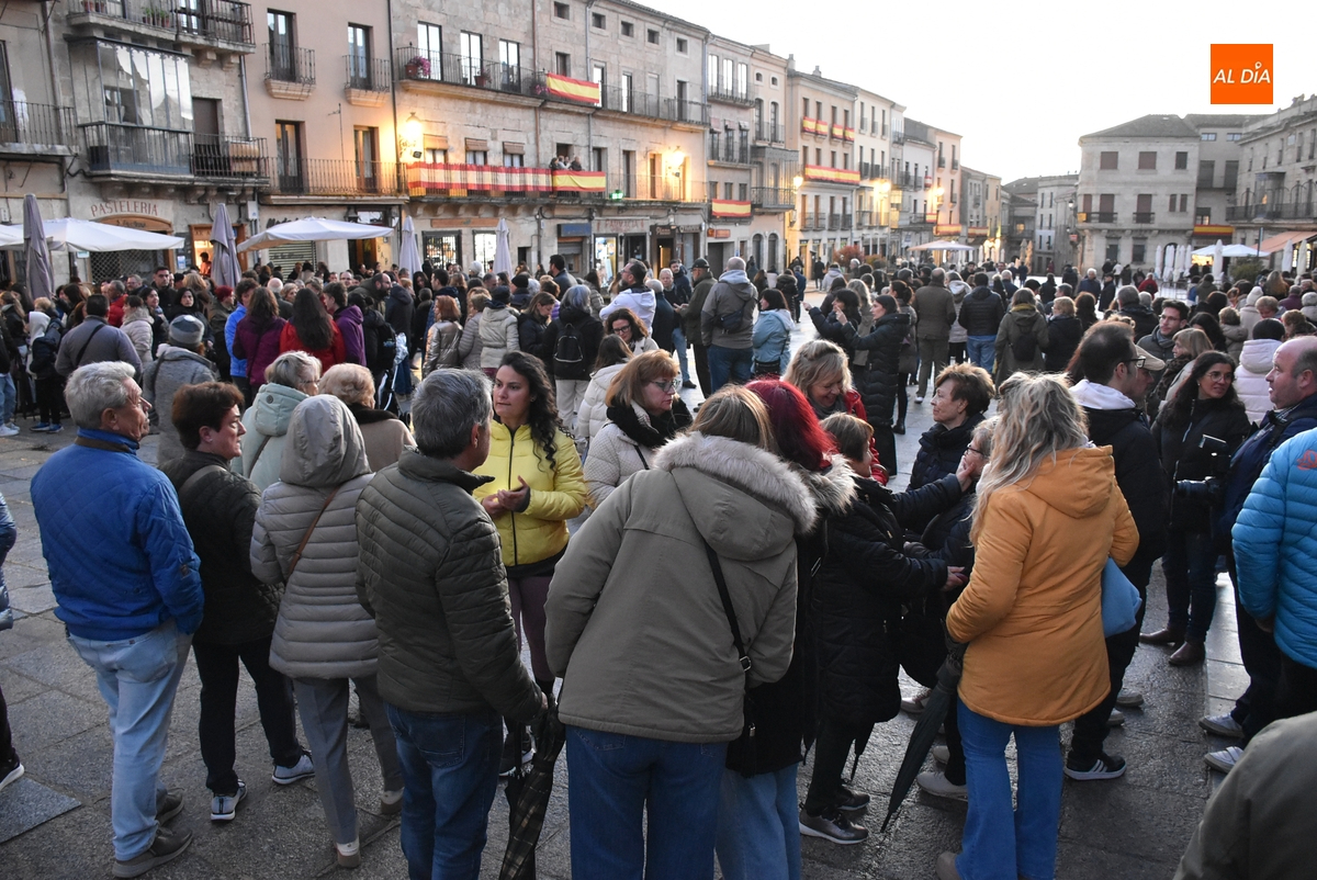 La Virgen avanzó unos metros para alcanzar por primera vez la Plaza Mayor, cuya parte superior recorrió para meterse por la calle San Juan. Antes de ello, hizo una parada para disfrutar de una pieza interpretada en los soportales de la Casa Consistorial por la Coral Mirobrigense Dámaso Ledesma, dirigida por Manuel José Gutiérrez.