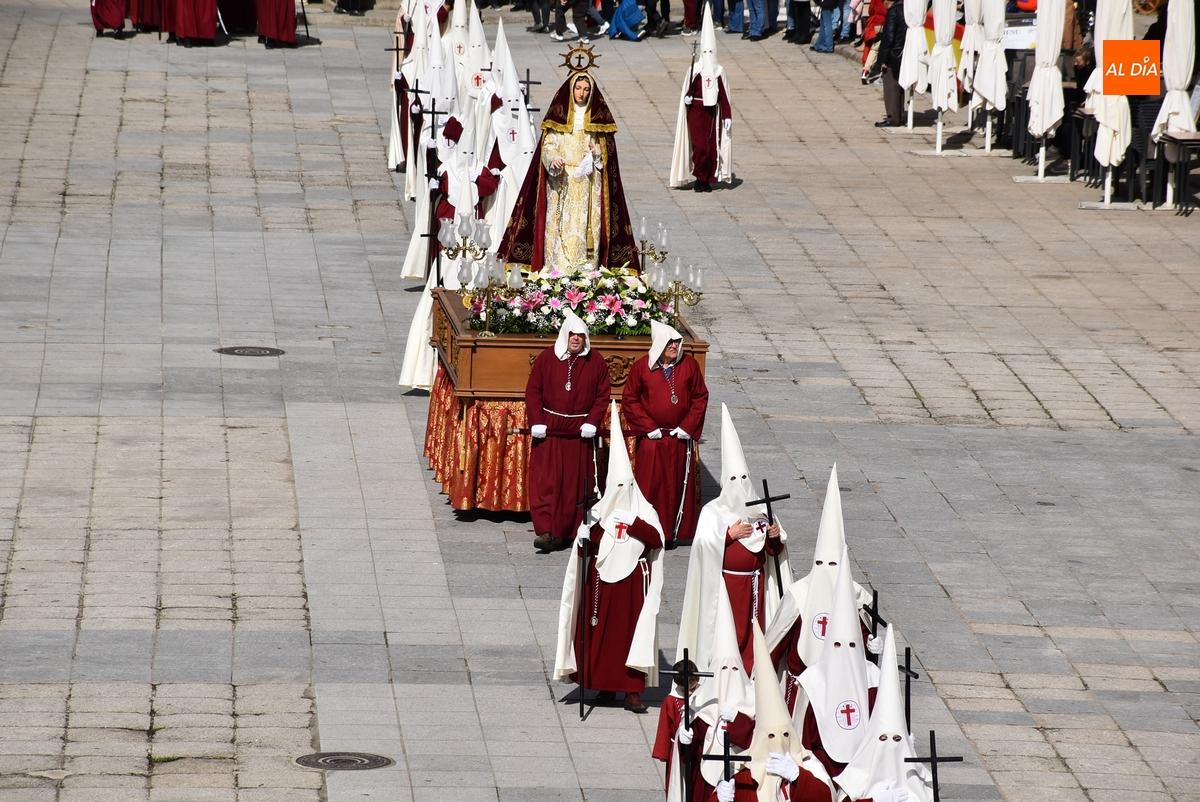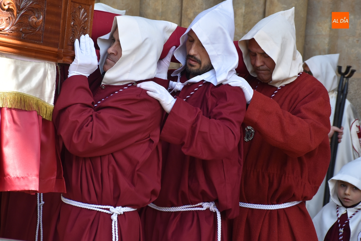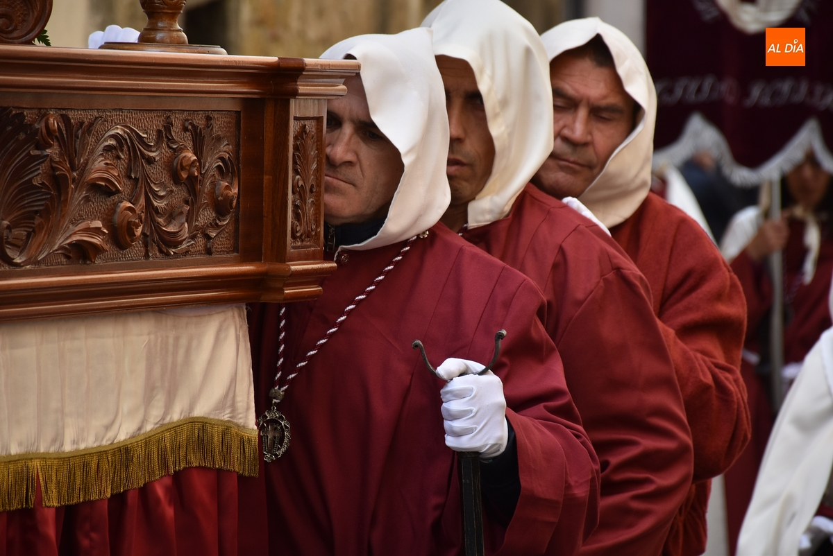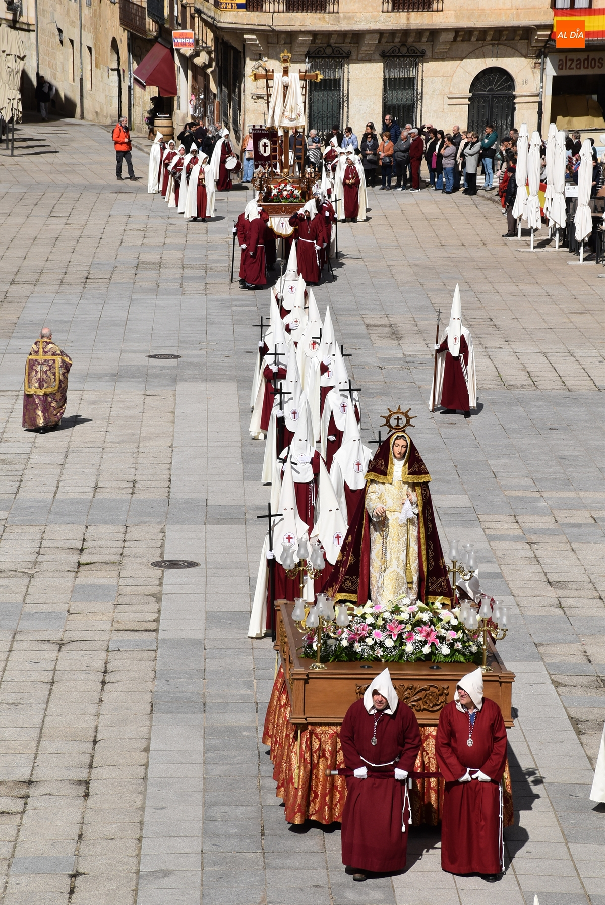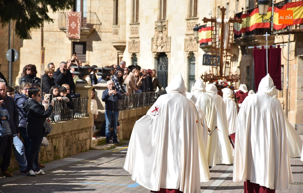 Con los sones de la Banda de Cornetas y Tambores de la propia entidad, la procesión continuó por la Rúa del Sol, Gigantes, Arco, Campo del Pozo, Cristóbal de Castillejo, San Juan, Colegios, Velayos, Sánchez Arjona, Plaza Mayor, Julián Sánchez y Cardenal Pacheco, para entrar de nuevo en la Catedral, de nuevo con bastante seguimiento de público.
