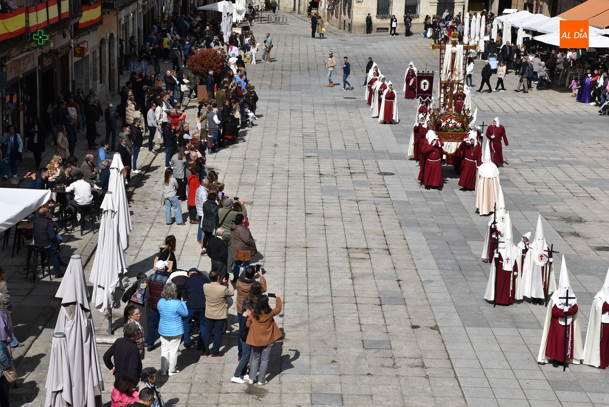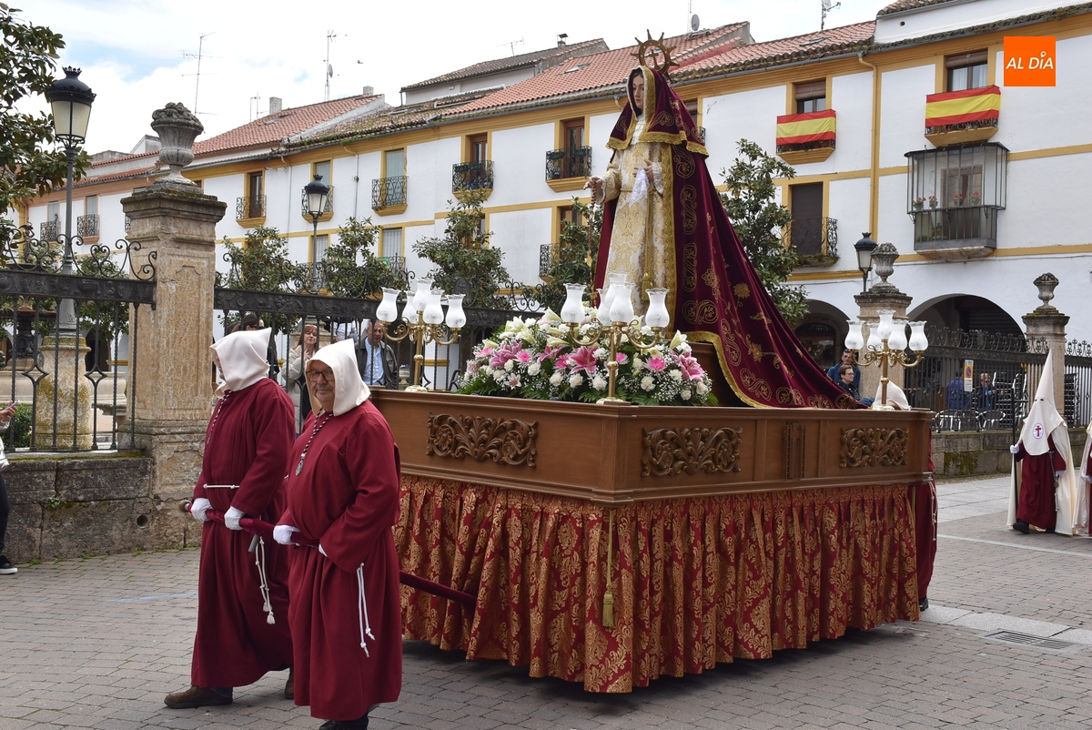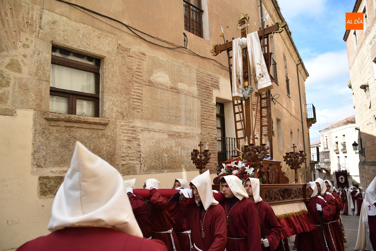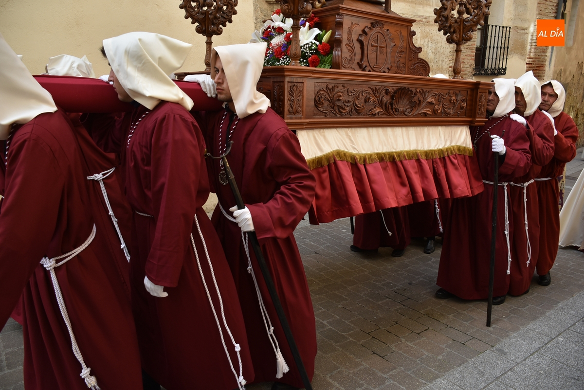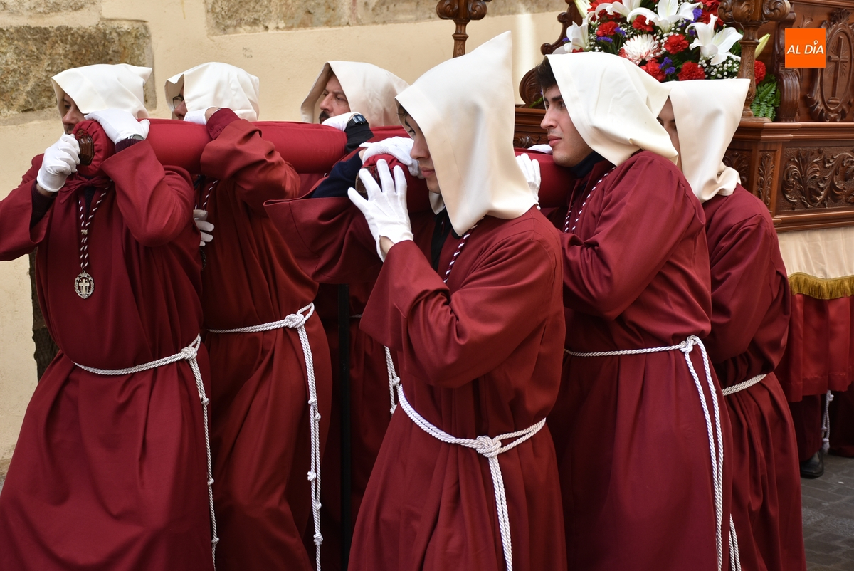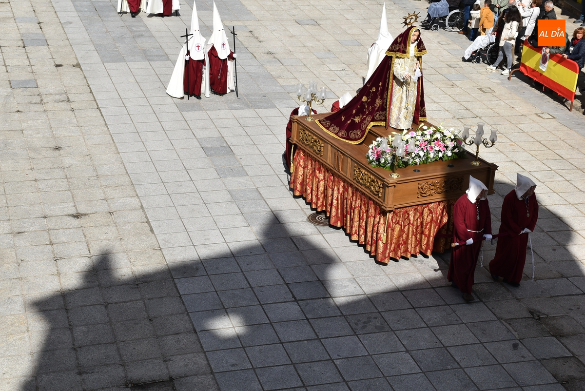 Con los sones de la Banda de Cornetas y Tambores de la propia entidad, la procesión continuó por la Rúa del Sol, Gigantes, Arco, Campo del Pozo, Cristóbal de Castillejo, San Juan, Colegios, Velayos, Sánchez Arjona, Plaza Mayor, Julián Sánchez y Cardenal Pacheco, para entrar de nuevo en la Catedral, de nuevo con bastante seguimiento de público.