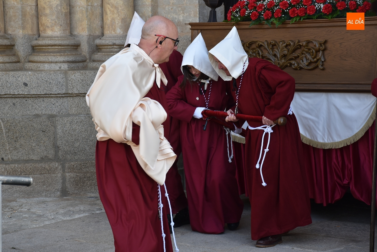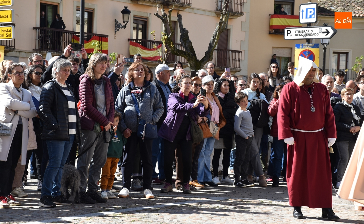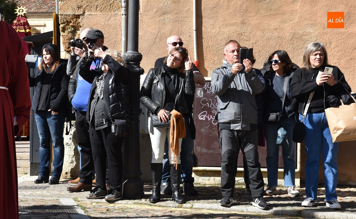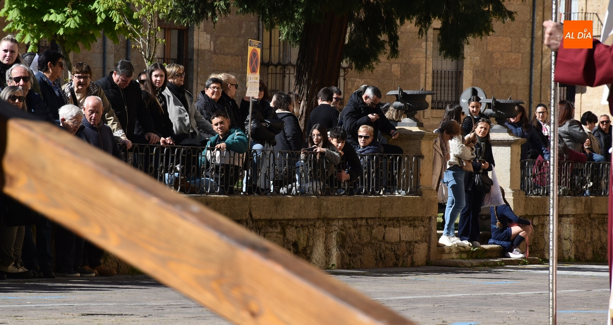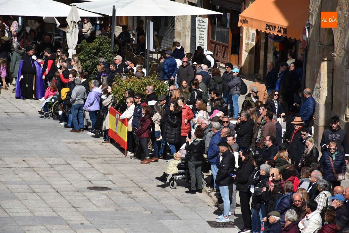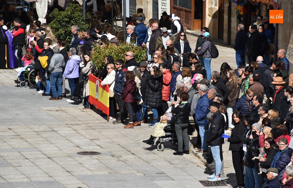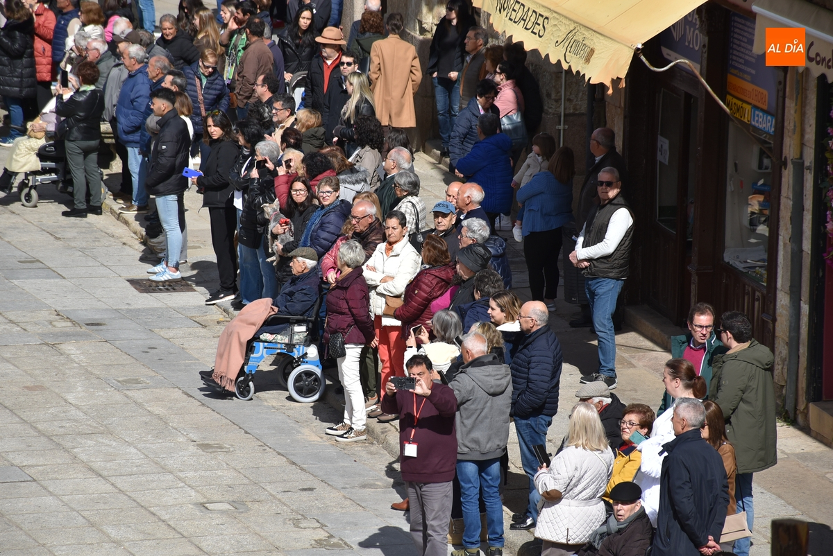 En esta ocasión, durante toda la mañana del Jueves Santo lució en Ciudad Rodrigo un sol radiante, junto a una buena temperatura, lo que también favoreció que hubiese bastantes personas desde primera hora en el recorrido (lo que no siempre ha ocurrido en este desfile), para empezar para presenciar la salida de la Catedral, que se retrasó ligeramente respecto al horario previsto (las 11.00 horas), hasta que concluyó el rezo de Laudes en la Seo.