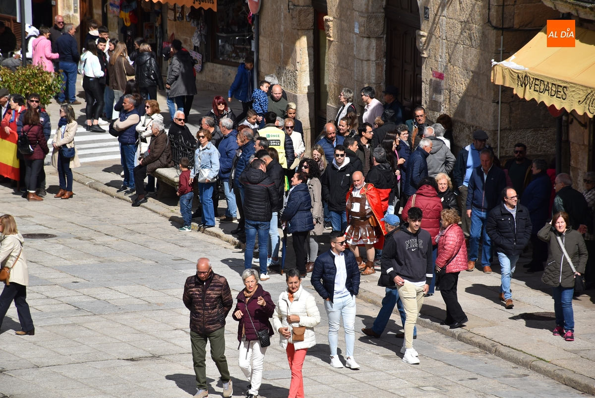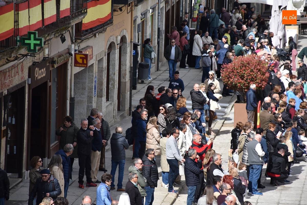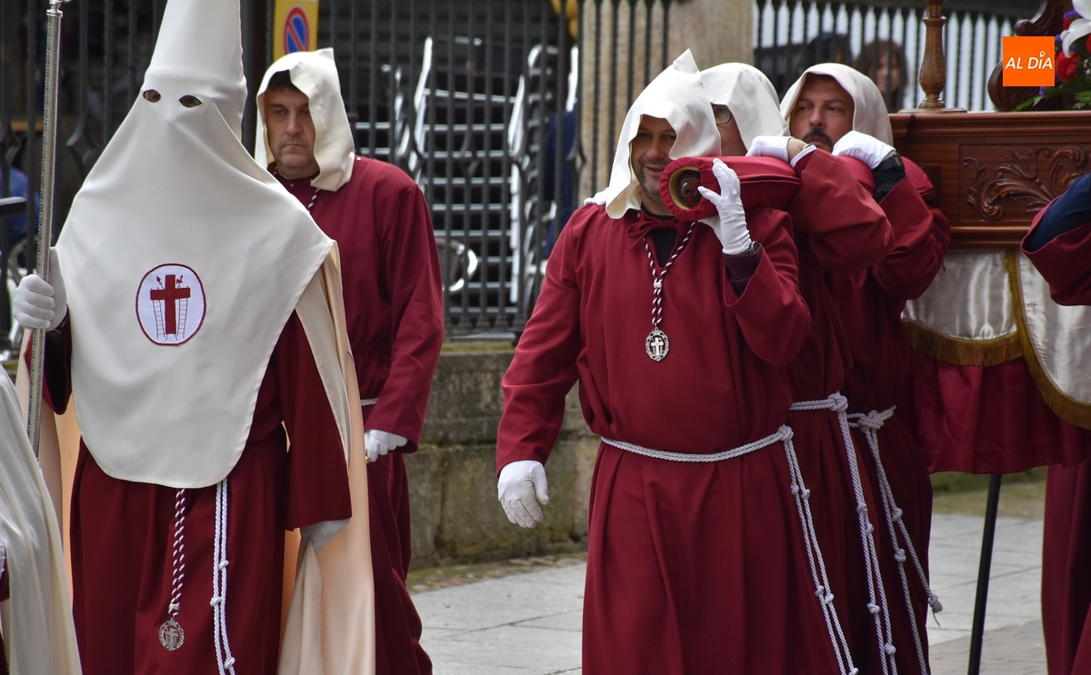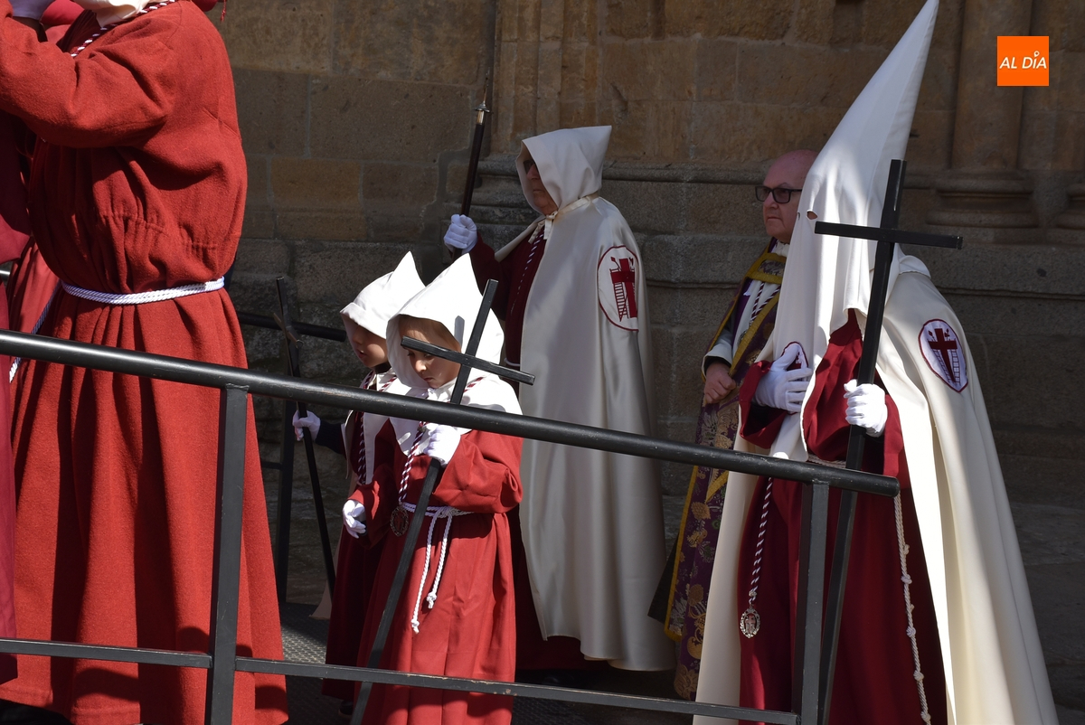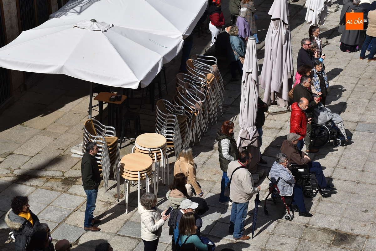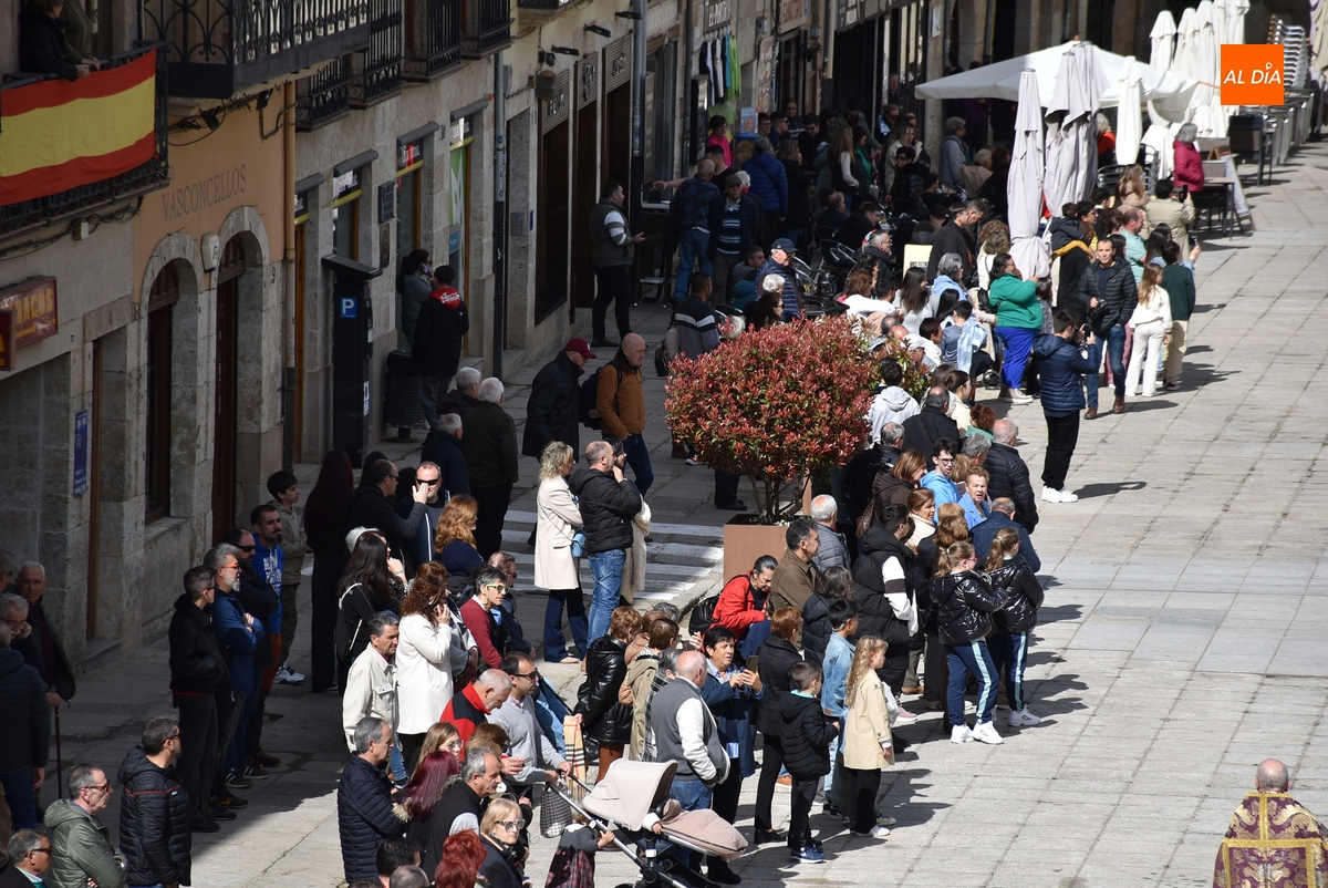 En esta ocasión, durante toda la mañana del Jueves Santo lució en Ciudad Rodrigo un sol radiante, junto a una buena temperatura, lo que también favoreció que hubiese bastantes personas desde primera hora en el recorrido (lo que no siempre ha ocurrido en este desfile), para empezar para presenciar la salida de la Catedral, que se retrasó ligeramente respecto al horario previsto (las 11.00 horas), hasta que concluyó el rezo de Laudes en la Seo.