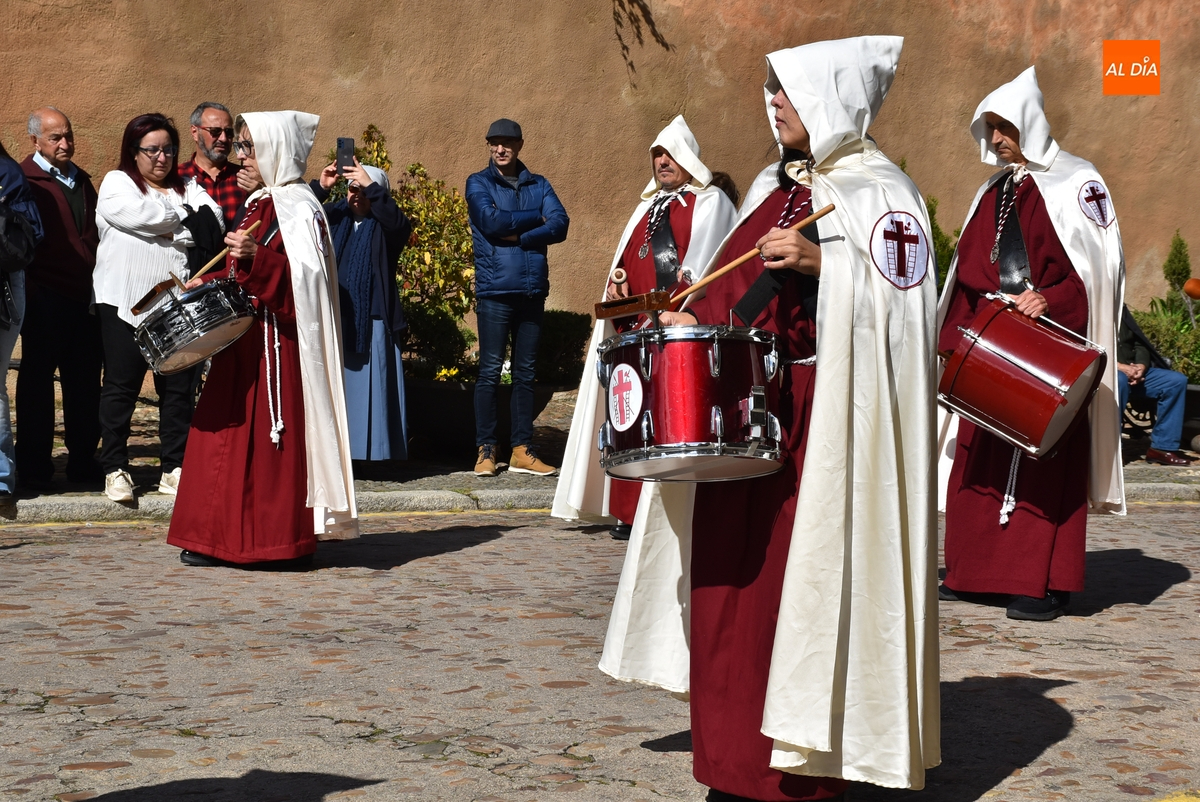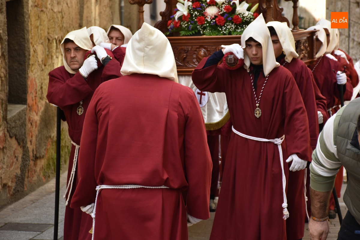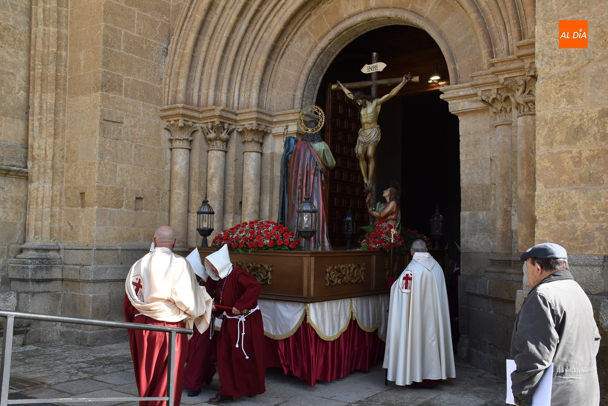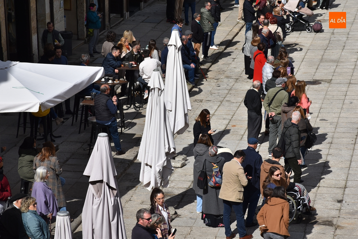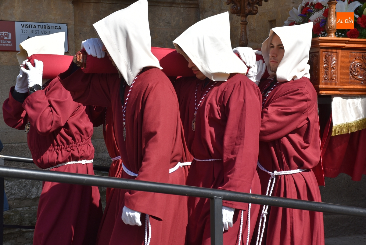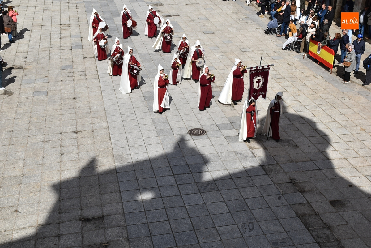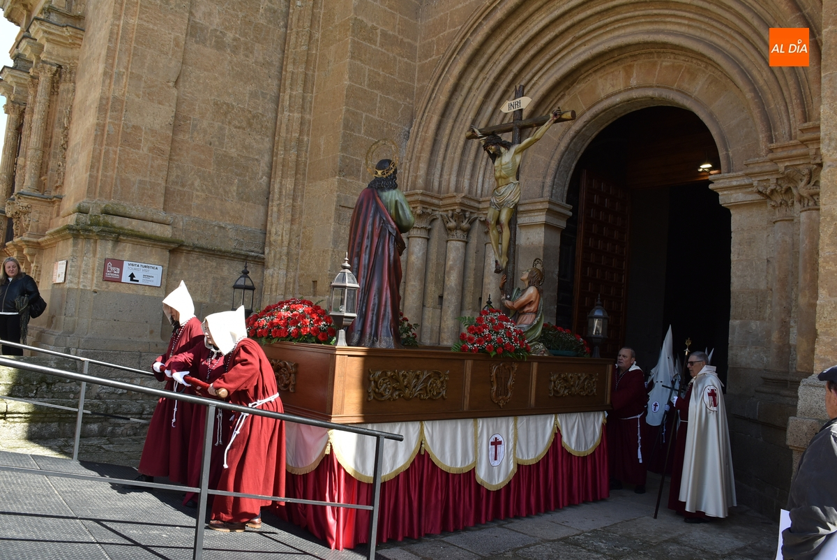 En esta ocasión, durante toda la mañana del Jueves Santo lució en Ciudad Rodrigo un sol radiante, junto a una buena temperatura, lo que también favoreció que hubiese bastantes personas desde primera hora en el recorrido (lo que no siempre ha ocurrido en este desfile), para empezar para presenciar la salida de la Catedral, que se retrasó ligeramente respecto al horario previsto (las 11.00 horas), hasta que concluyó el rezo de Laudes en la Seo.