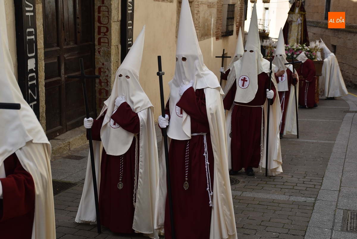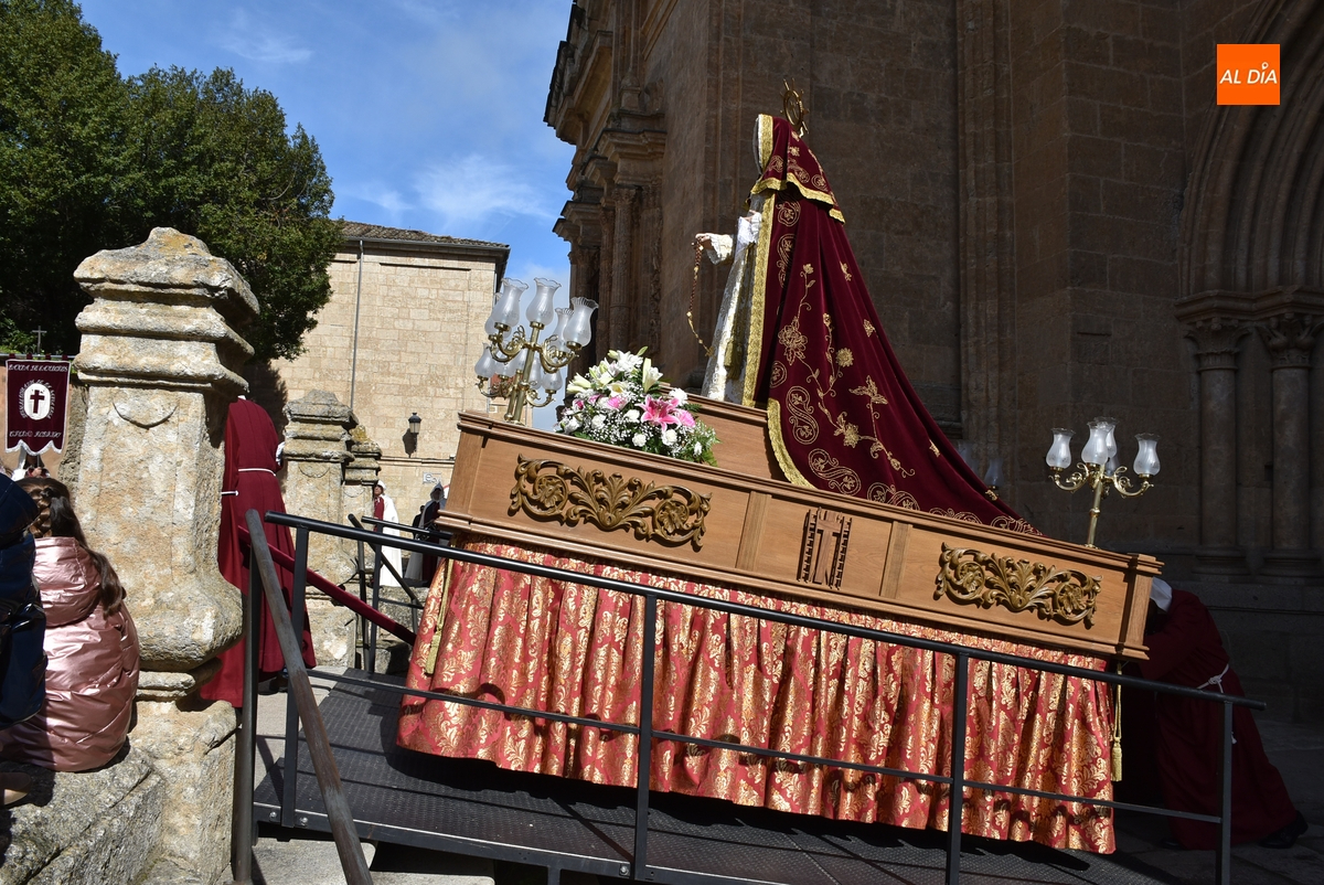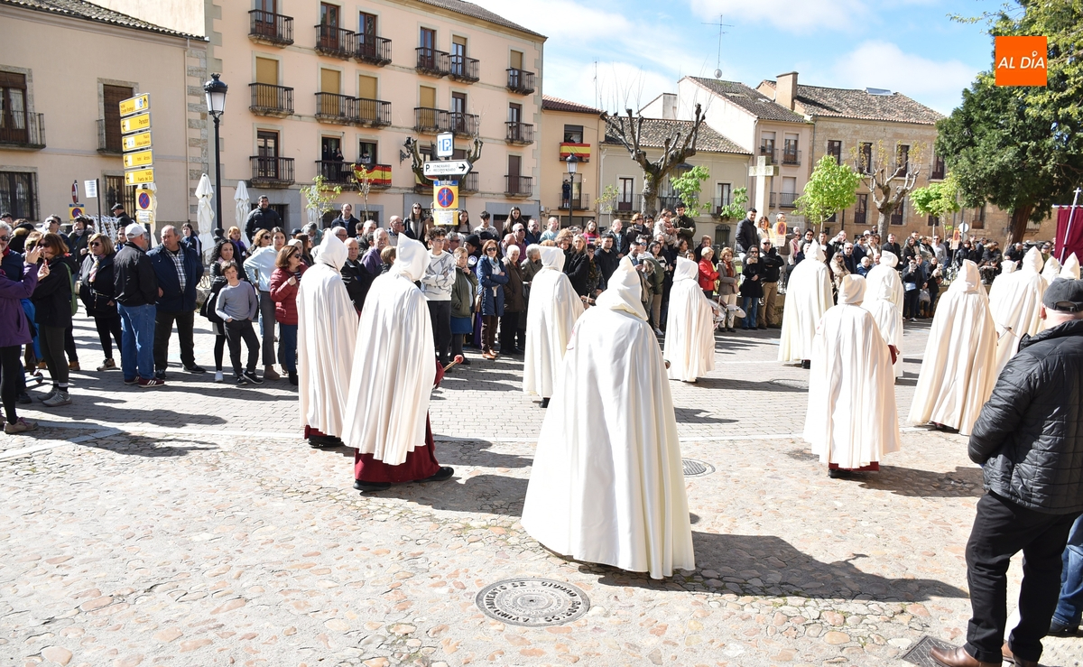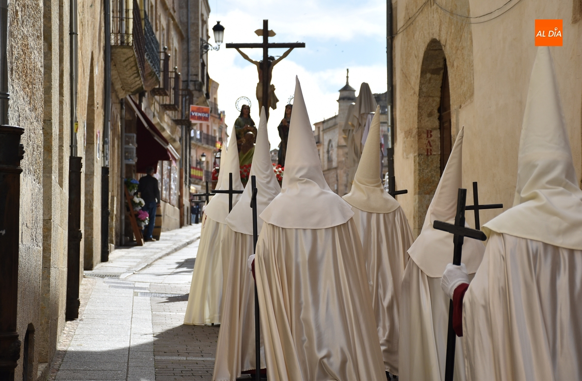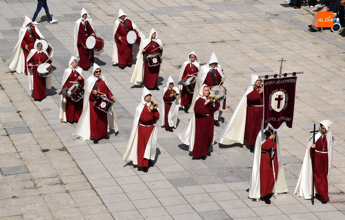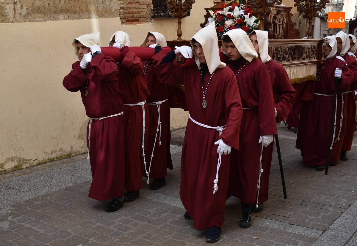 En esta ocasión, durante toda la mañana del Jueves Santo lució en Ciudad Rodrigo un sol radiante, junto a una buena temperatura, lo que también favoreció que hubiese bastantes personas desde primera hora en el recorrido (lo que no siempre ha ocurrido en este desfile), para empezar para presenciar la salida de la Catedral, que se retrasó ligeramente respecto al horario previsto (las 11.00 horas), hasta que concluyó el rezo de Laudes en la Seo.