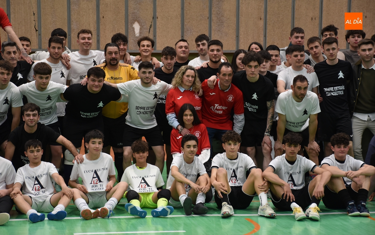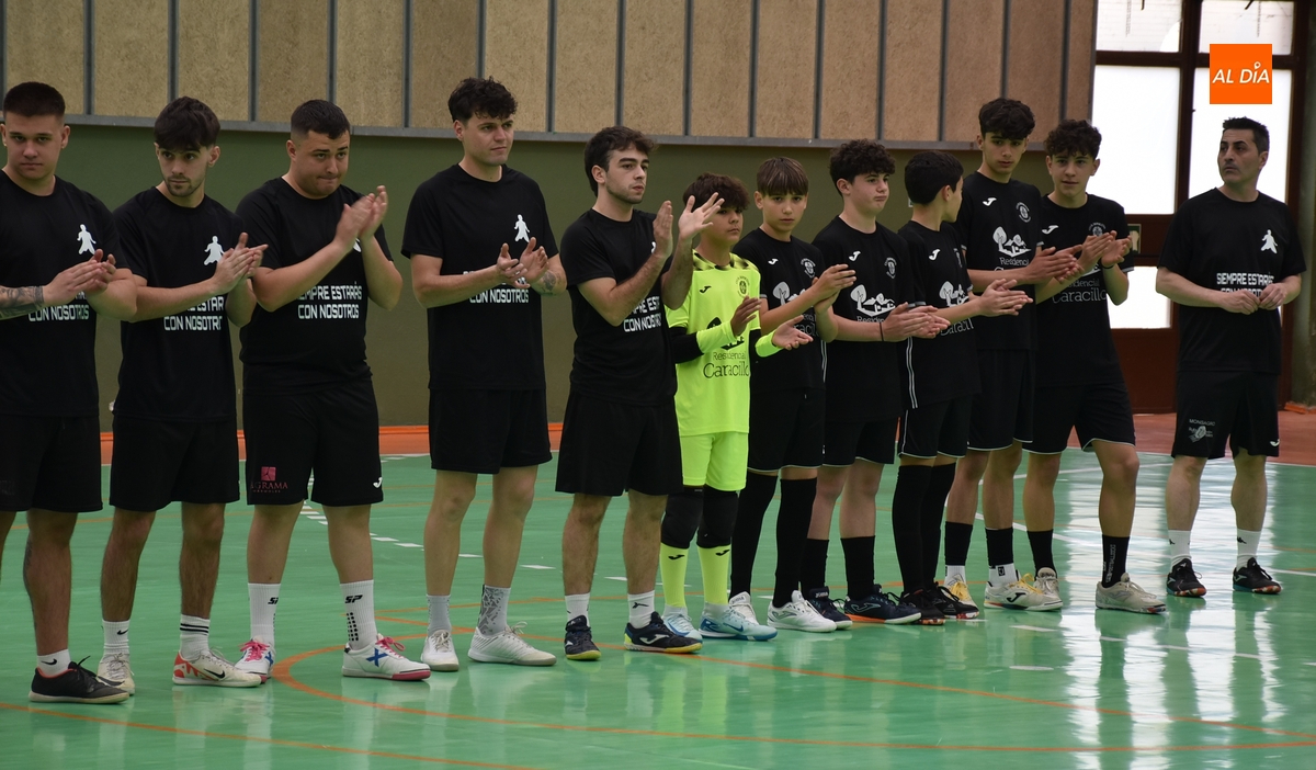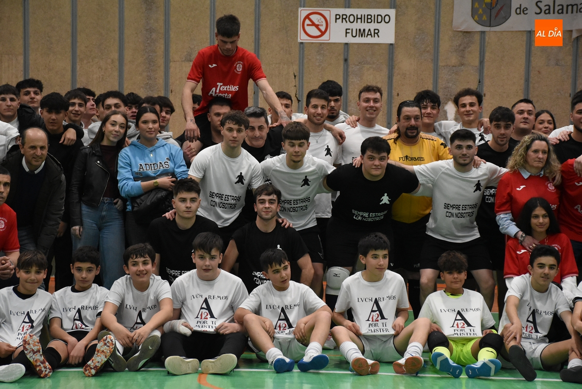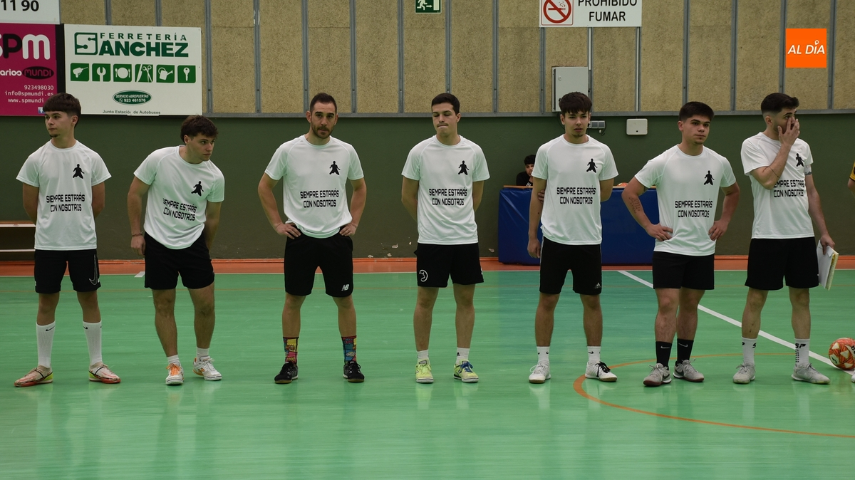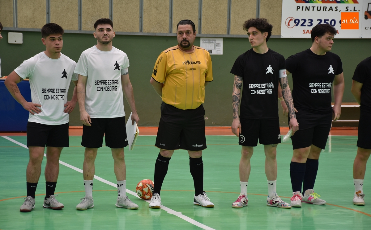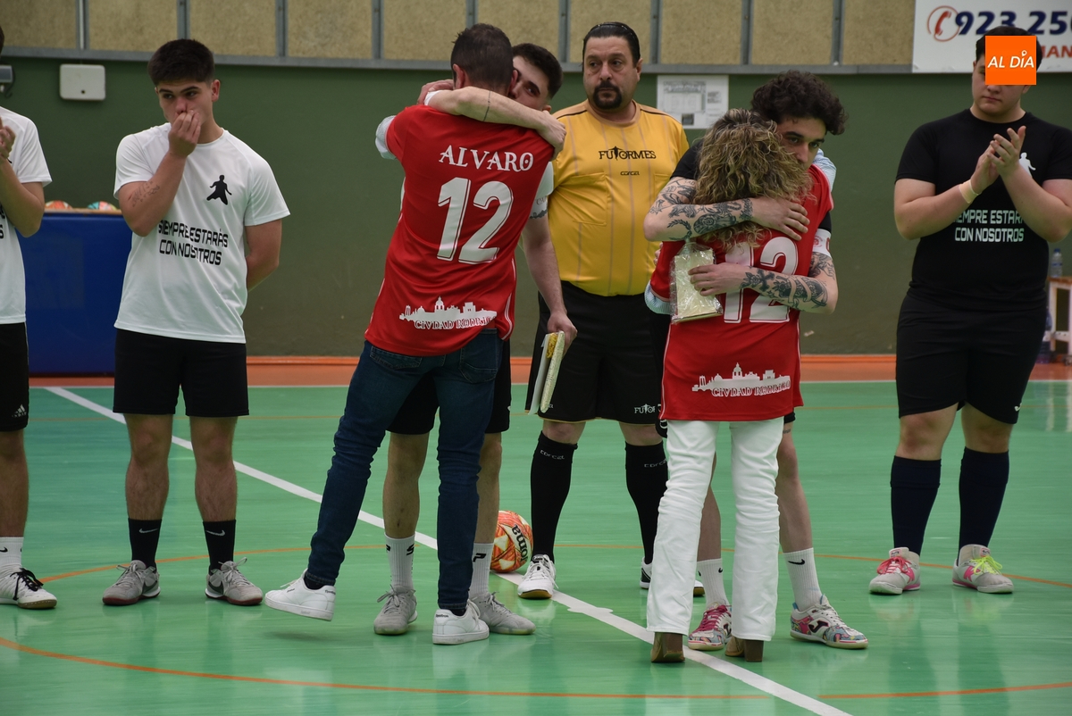 Los dos equipos lucieron unas camisetas con el nombre de Álvaro y su número favorito, el 12, como dorsal, mientras que en la parte delantera aparecía la leyenda ‘Siempre estarás con nosotros’ junto a una silueta del propio Álvaro Pérez Ortega celebrando un gol durante su amplia trayectoria como jugador de fútbol sala, principalmente en la cantera del III Columnas, y en estos últimos años como Senior en ese Club y en el Miróbriga Futsal.