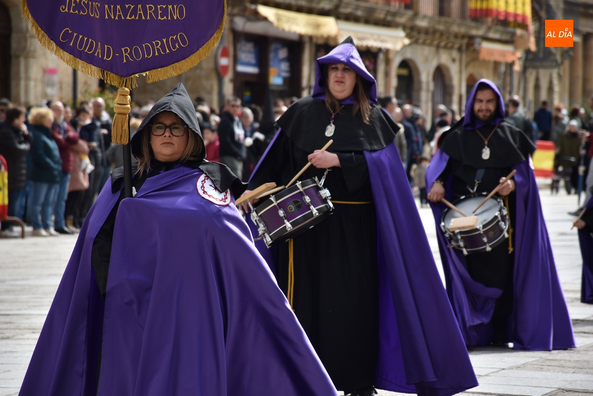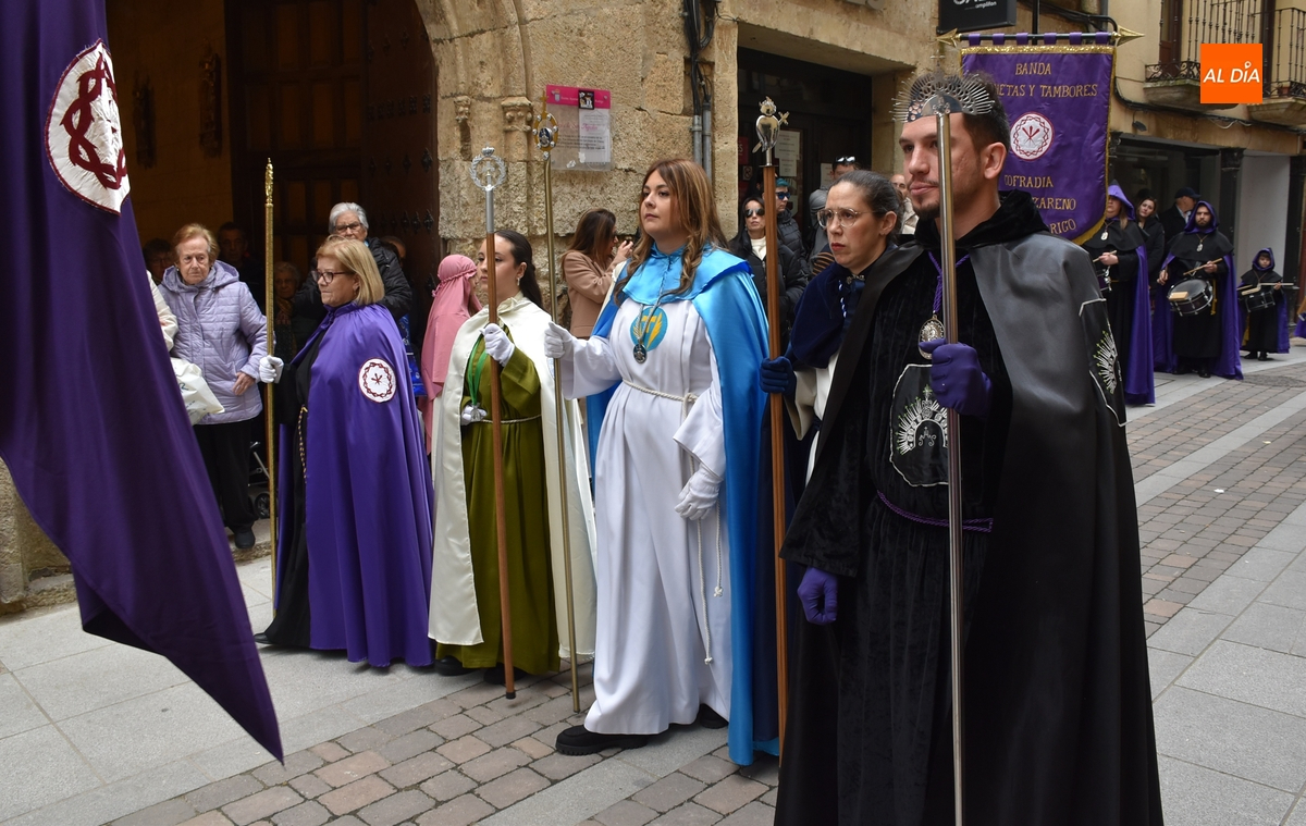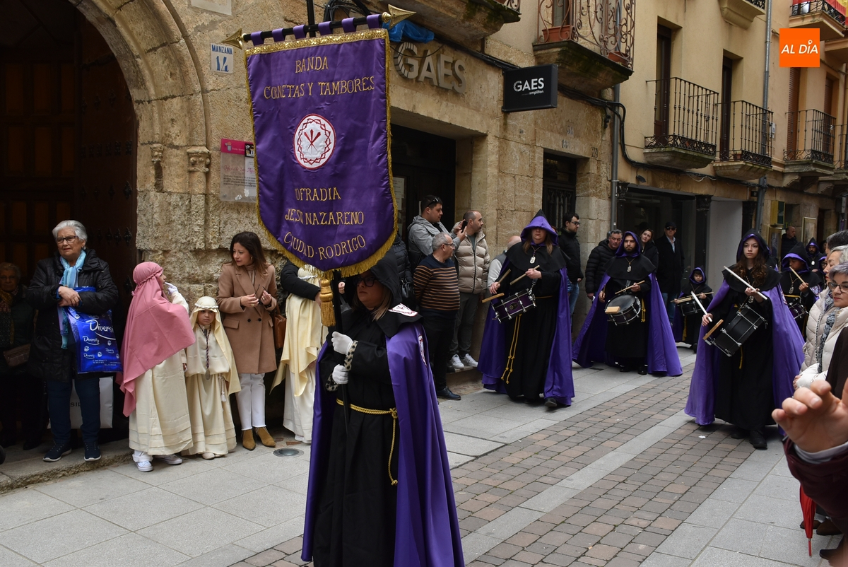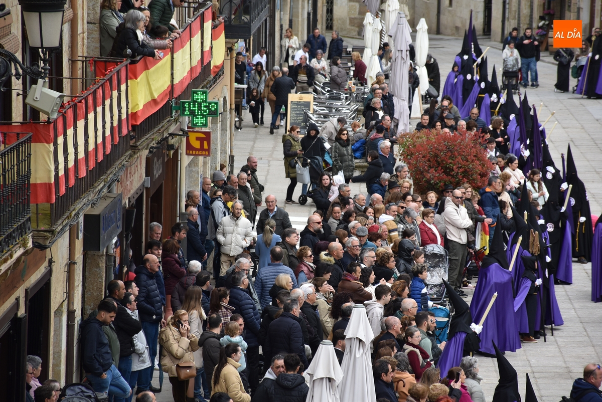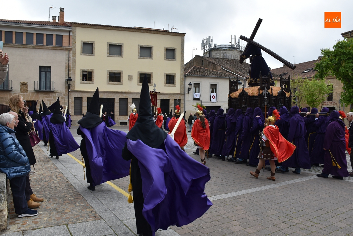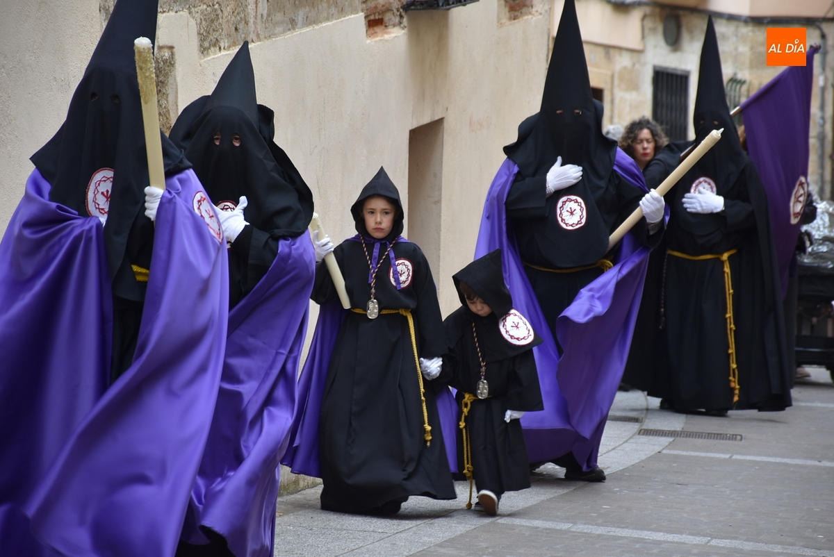 La jornada del Viernes Santo promete ser en su conjunto bastante complicada en el apartado meteorológico (como ya se pudo comprobar en el segundo tramo de la mañana), pero al menos Ciudad Rodrigo pudo disfrutar de la primera procesión del día, el histórico Encuentro a cargo de la Cofradía de Jesús Nazareno, que acabó realizando un cambio de trayecto para estar menos tiempo en la calle ante la amenaza de lluvia (que acabó cayendo).
