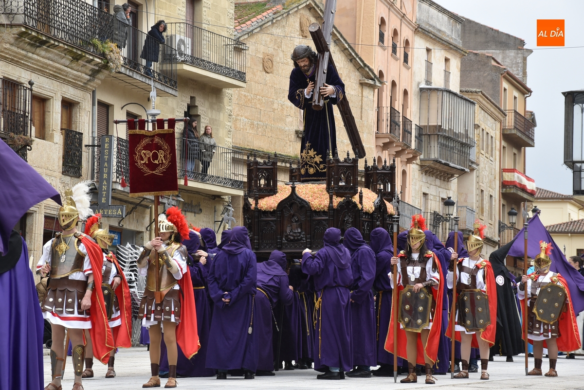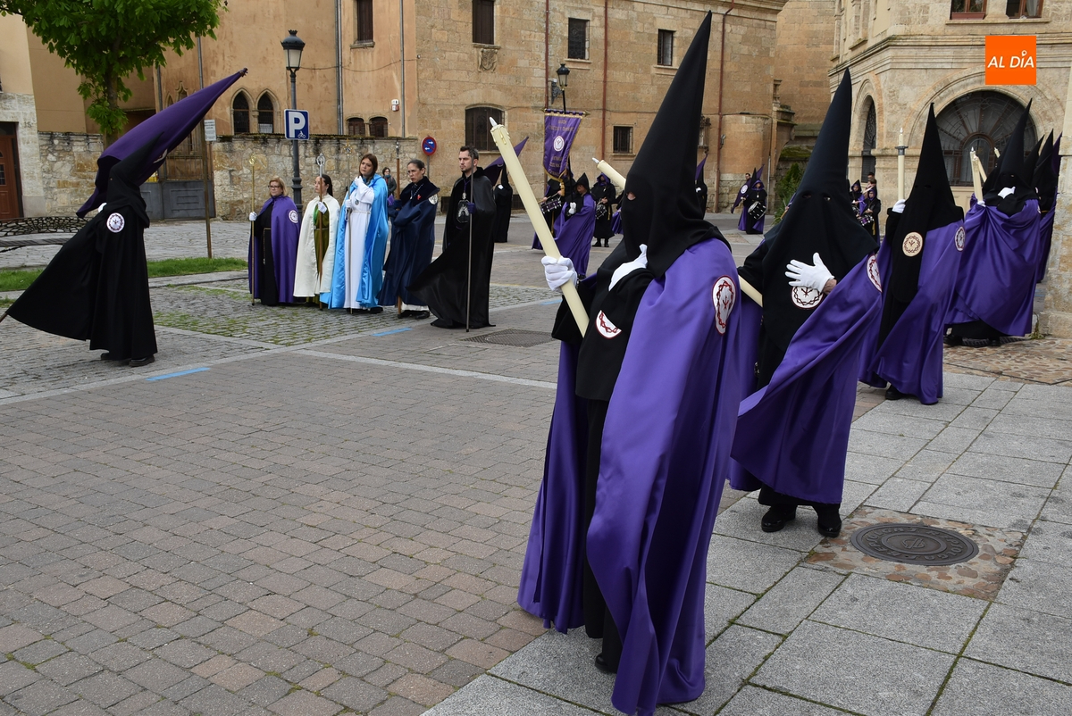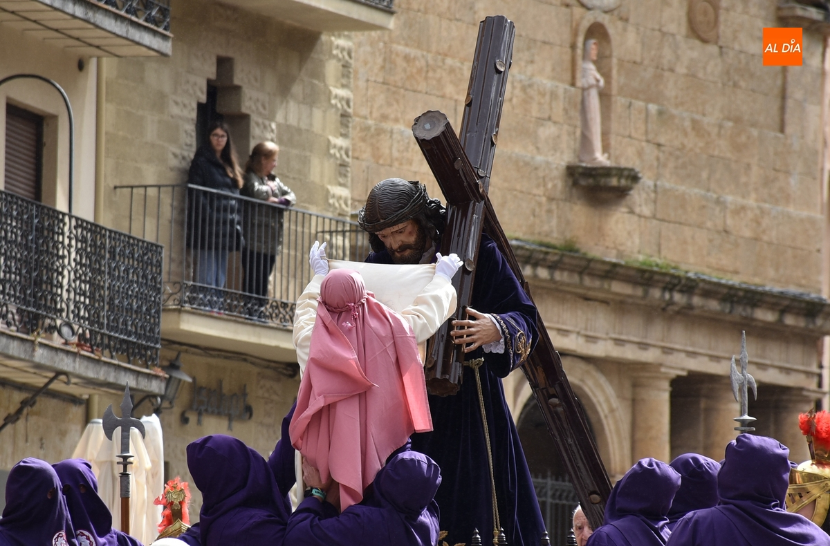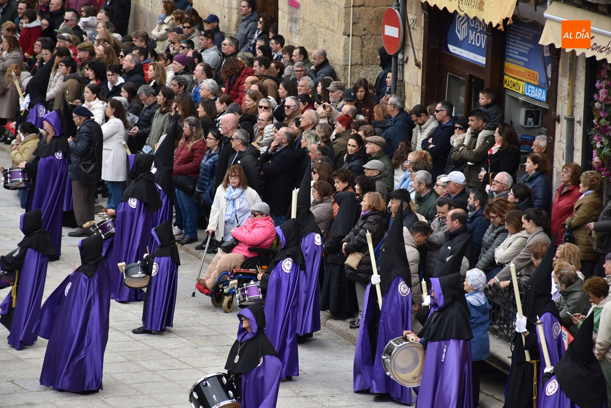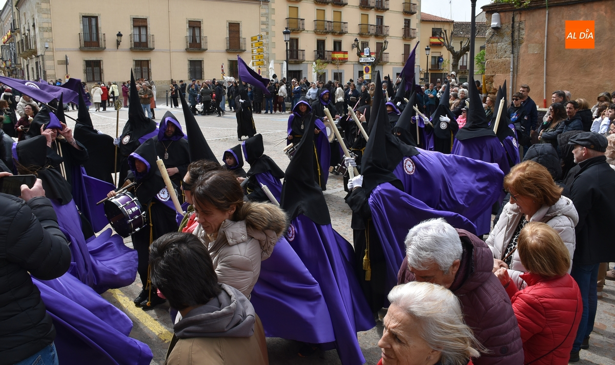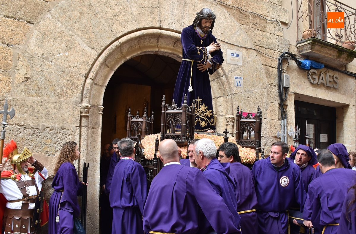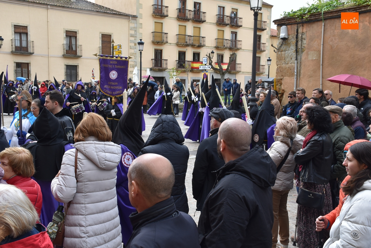 La jornada del Viernes Santo promete ser en su conjunto bastante complicada en el apartado meteorológico (como ya se pudo comprobar en el segundo tramo de la mañana), pero al menos Ciudad Rodrigo pudo disfrutar de la primera procesión del día, el histórico Encuentro a cargo de la Cofradía de Jesús Nazareno, que acabó realizando un cambio de trayecto para estar menos tiempo en la calle ante la amenaza de lluvia (que acabó cayendo).