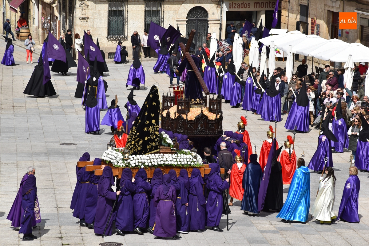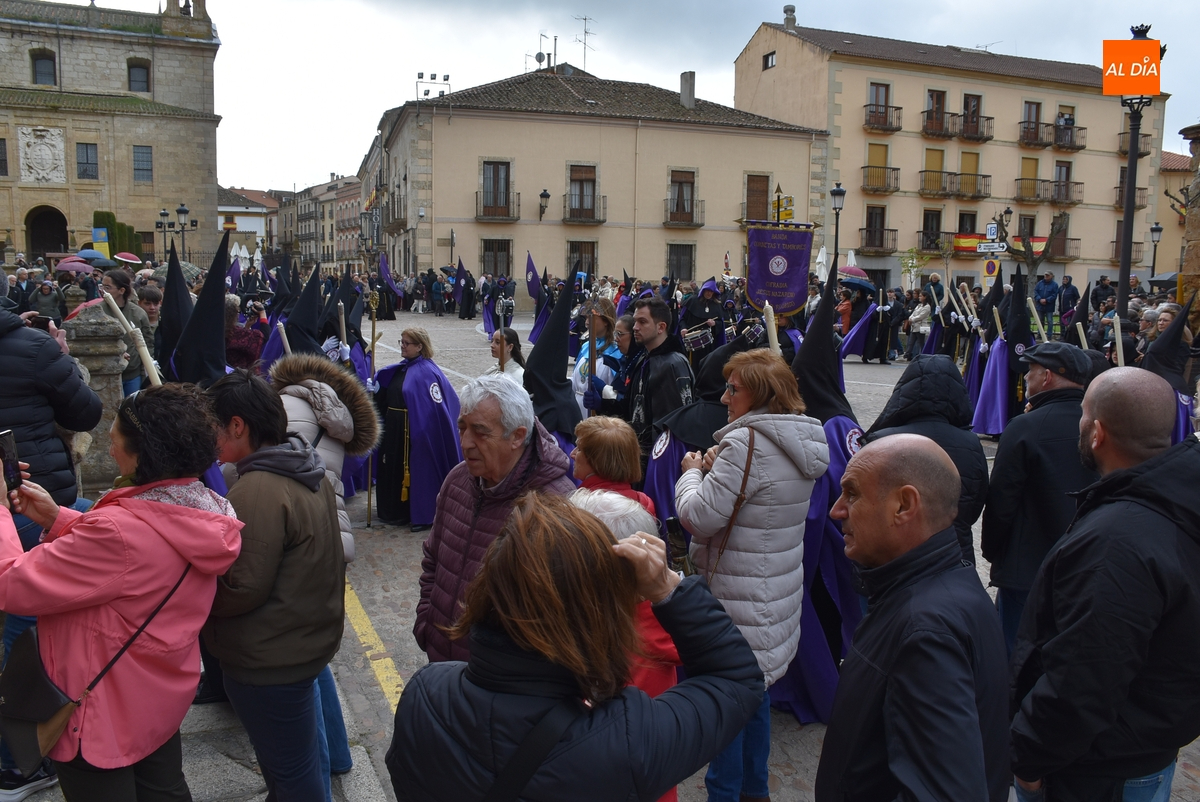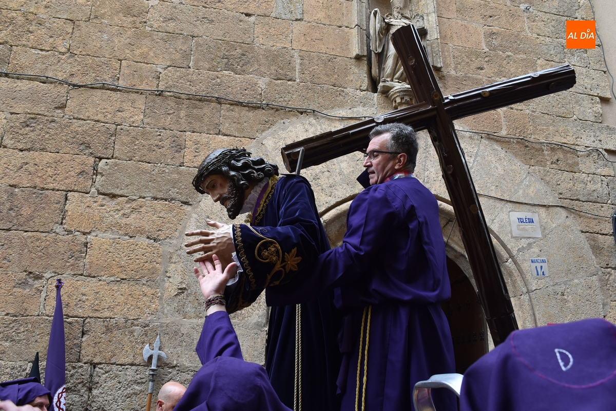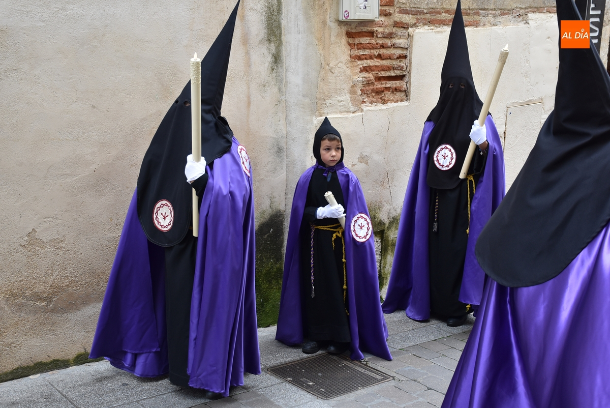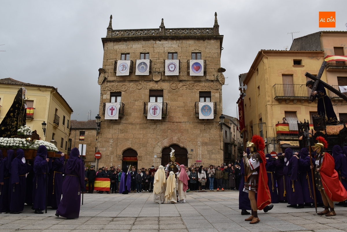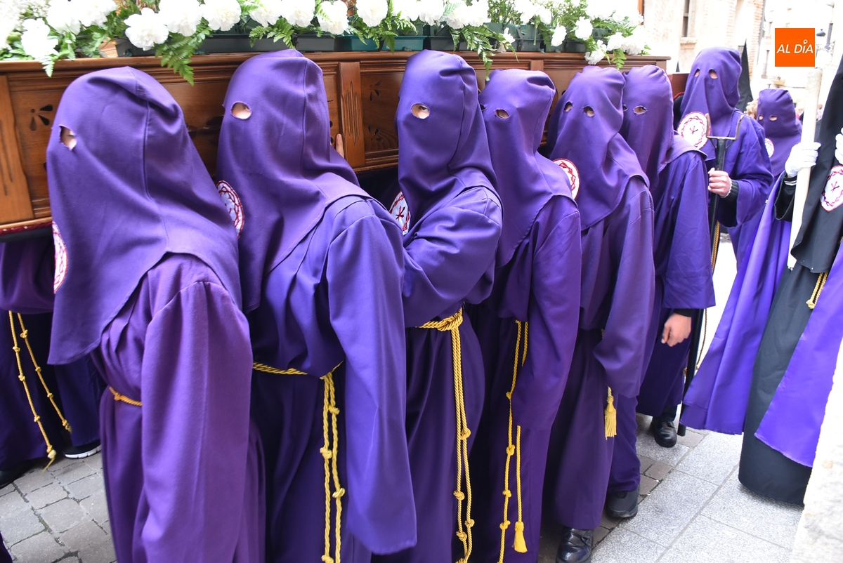 La jornada del Viernes Santo promete ser en su conjunto bastante complicada en el apartado meteorológico (como ya se pudo comprobar en el segundo tramo de la mañana), pero al menos Ciudad Rodrigo pudo disfrutar de la primera procesión del día, el histórico Encuentro a cargo de la Cofradía de Jesús Nazareno, que acabó realizando un cambio de trayecto para estar menos tiempo en la calle ante la amenaza de lluvia (que acabó cayendo).