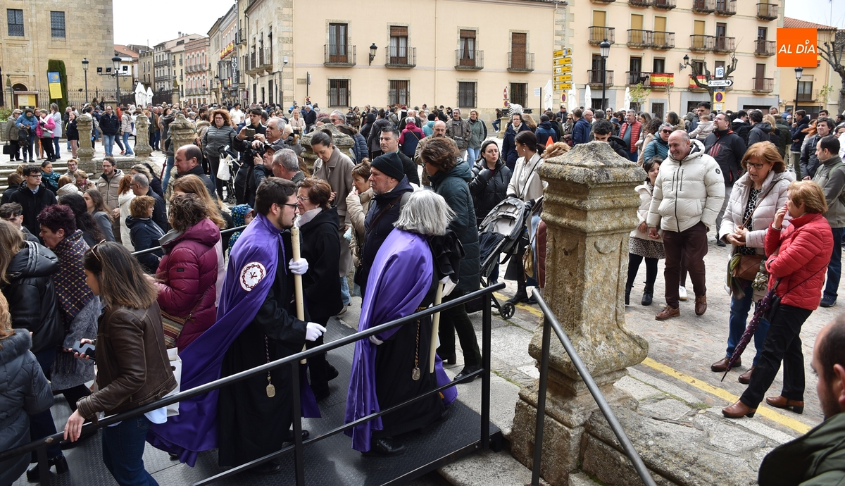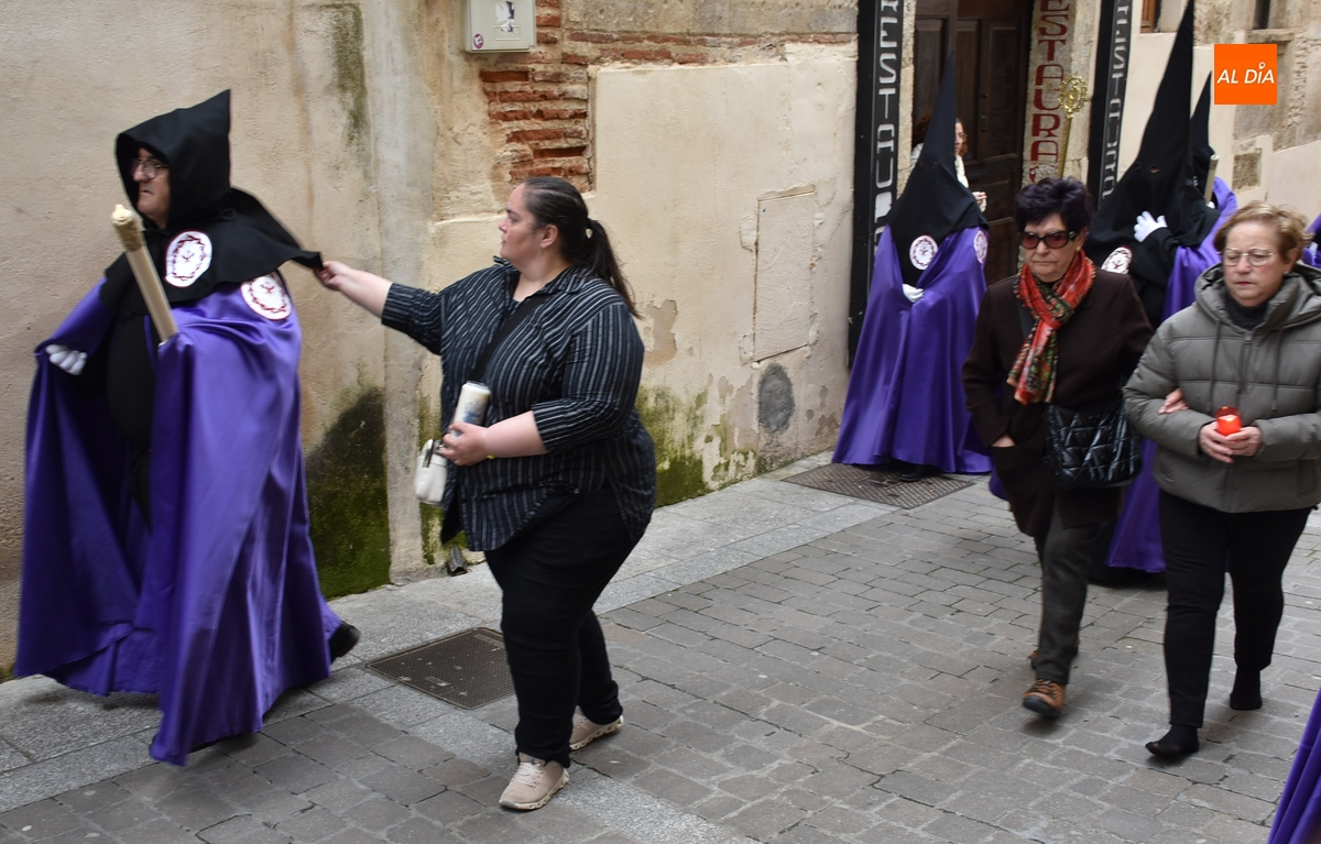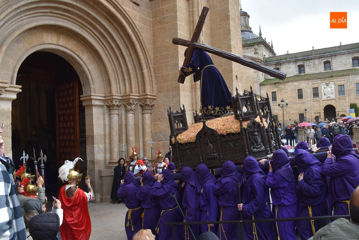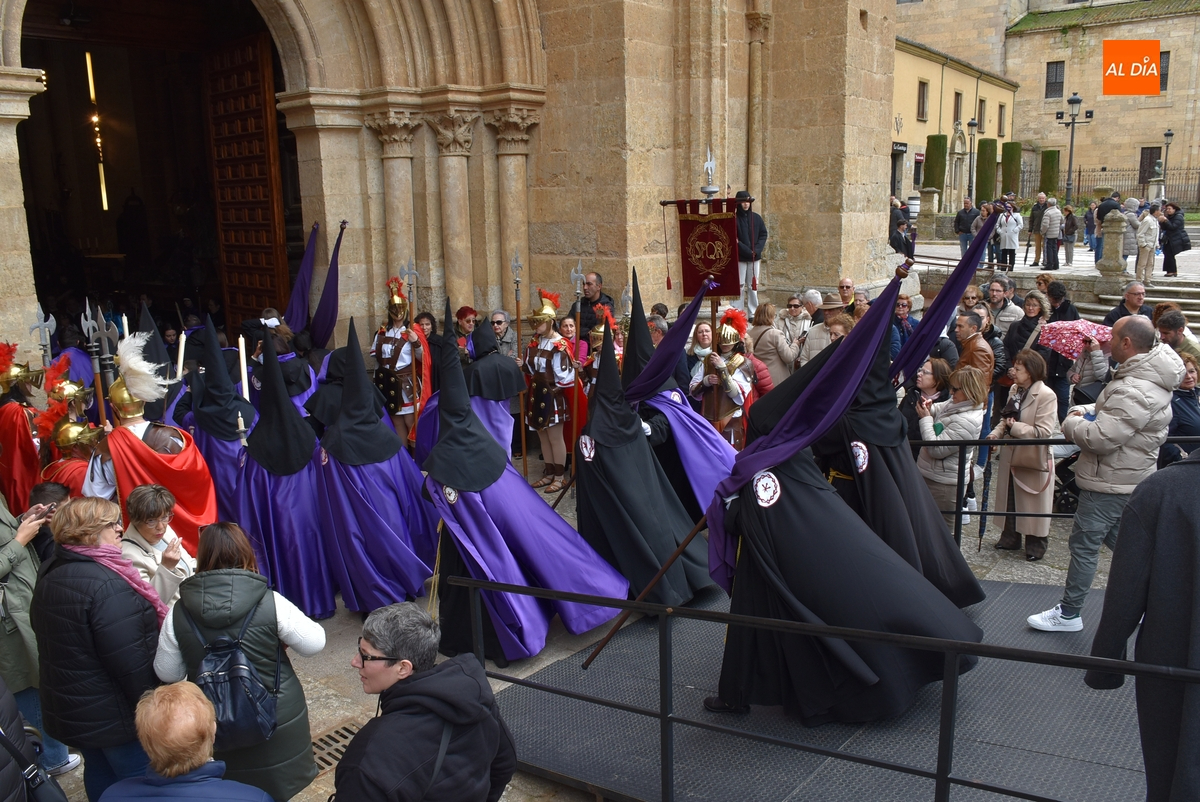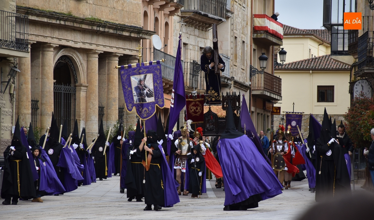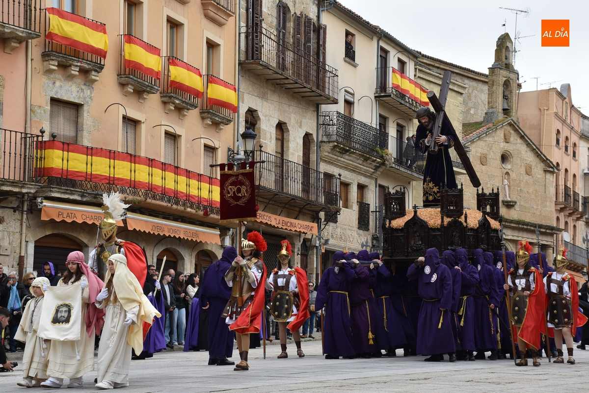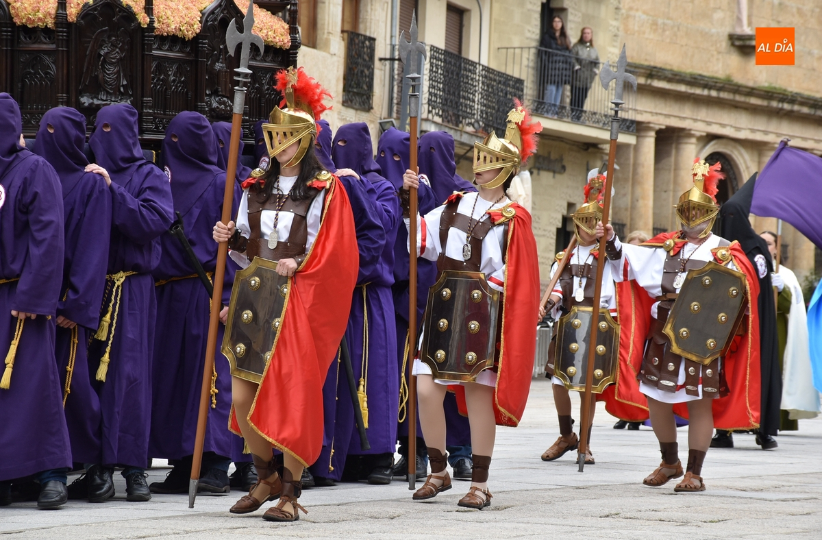 La jornada del Viernes Santo promete ser en su conjunto bastante complicada en el apartado meteorológico (como ya se pudo comprobar en el segundo tramo de la mañana), pero al menos Ciudad Rodrigo pudo disfrutar de la primera procesión del día, el histórico Encuentro a cargo de la Cofradía de Jesús Nazareno, que acabó realizando un cambio de trayecto para estar menos tiempo en la calle ante la amenaza de lluvia (que acabó cayendo).