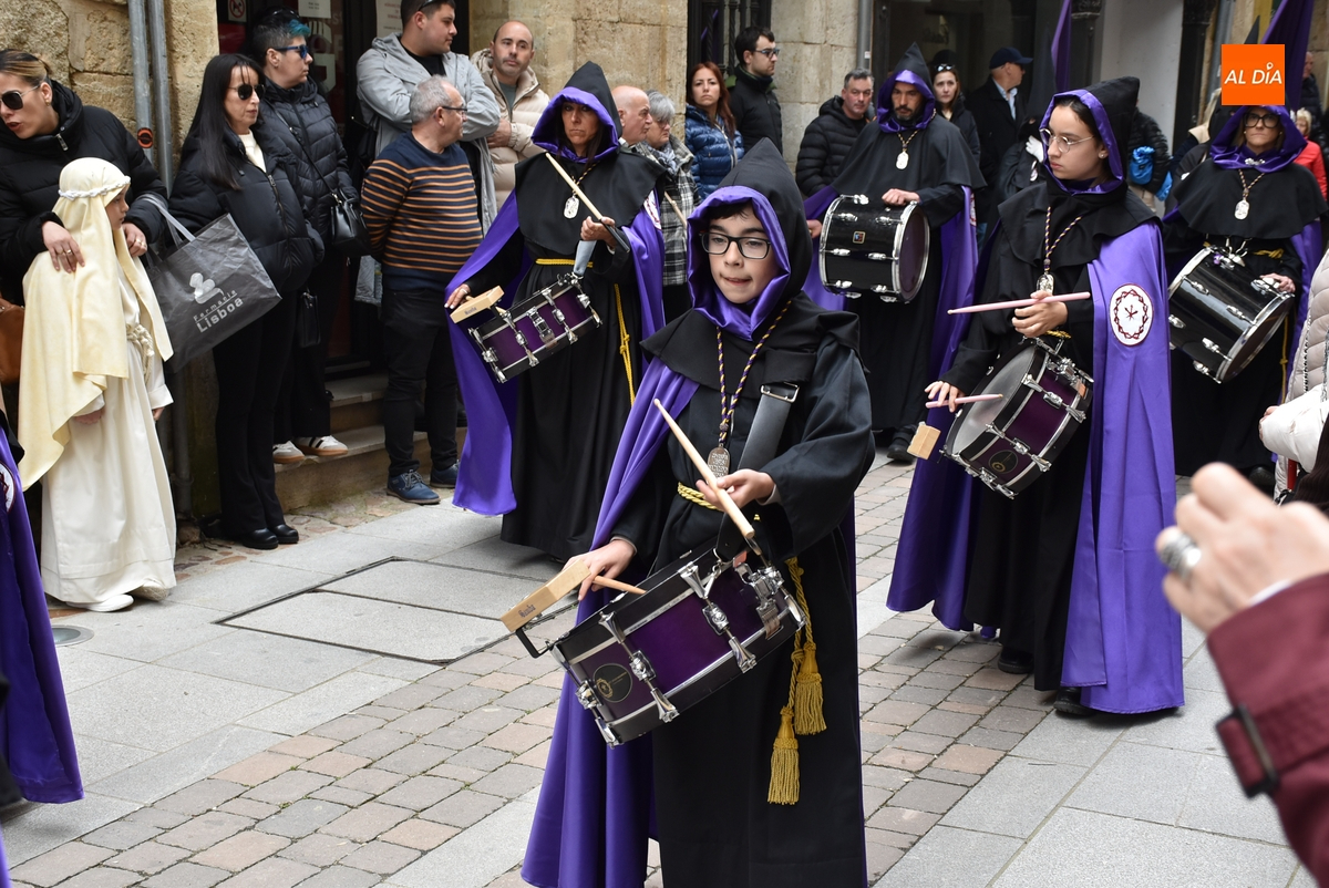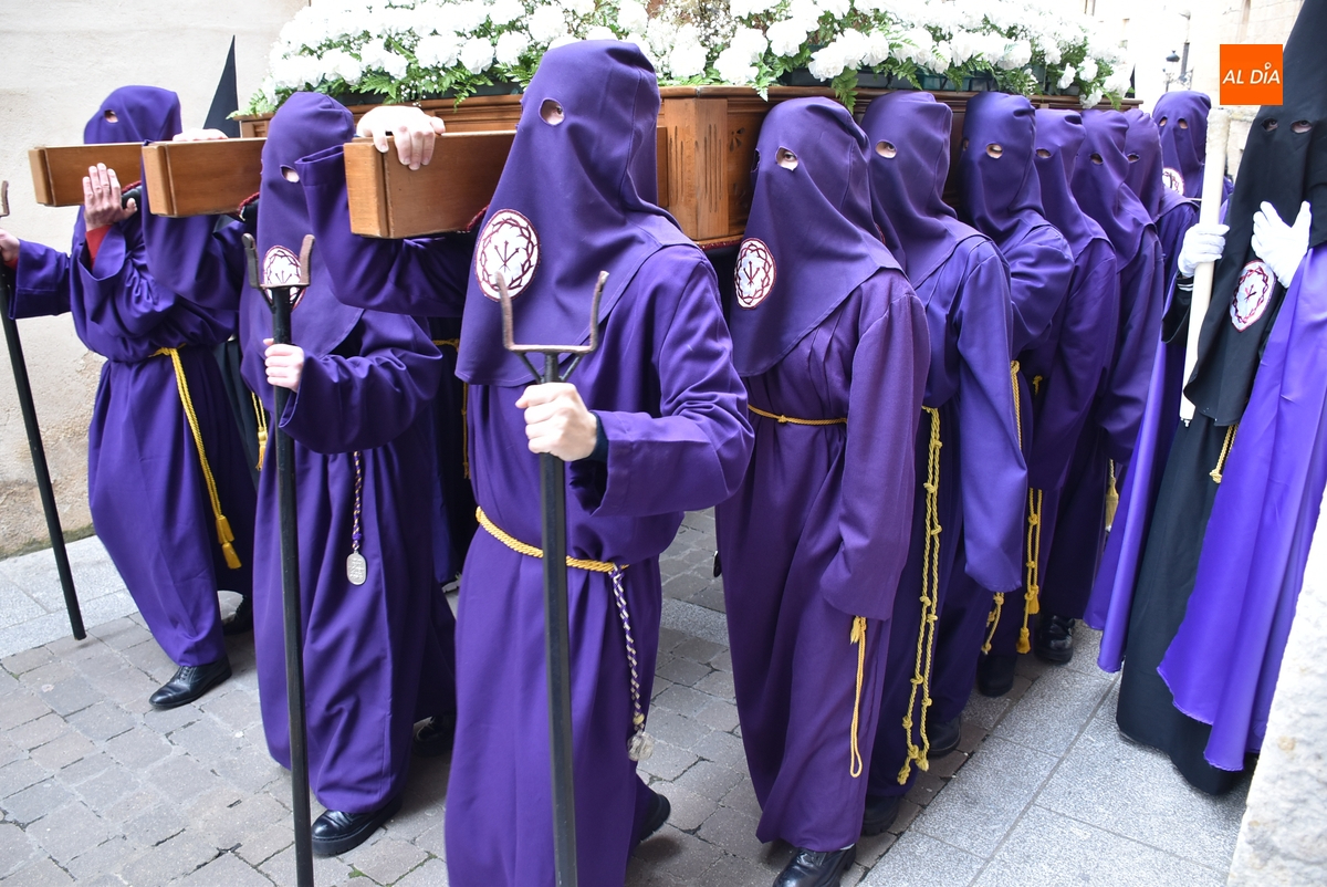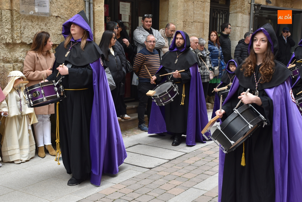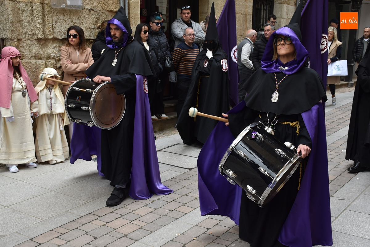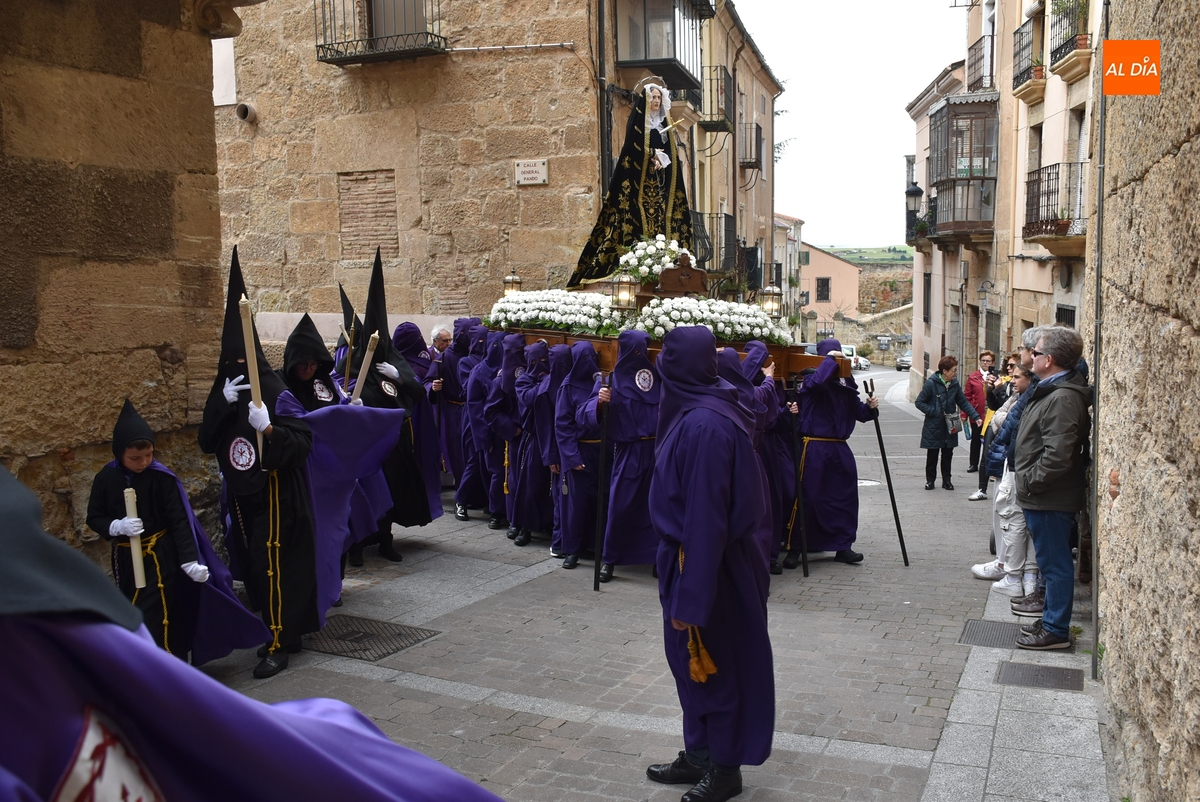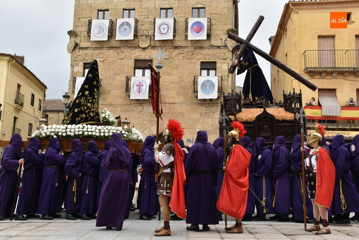 La jornada del Viernes Santo promete ser en su conjunto bastante complicada en el apartado meteorológico (como ya se pudo comprobar en el segundo tramo de la mañana), pero al menos Ciudad Rodrigo pudo disfrutar de la primera procesión del día, el histórico Encuentro a cargo de la Cofradía de Jesús Nazareno, que acabó realizando un cambio de trayecto para estar menos tiempo en la calle ante la amenaza de lluvia (que acabó cayendo).