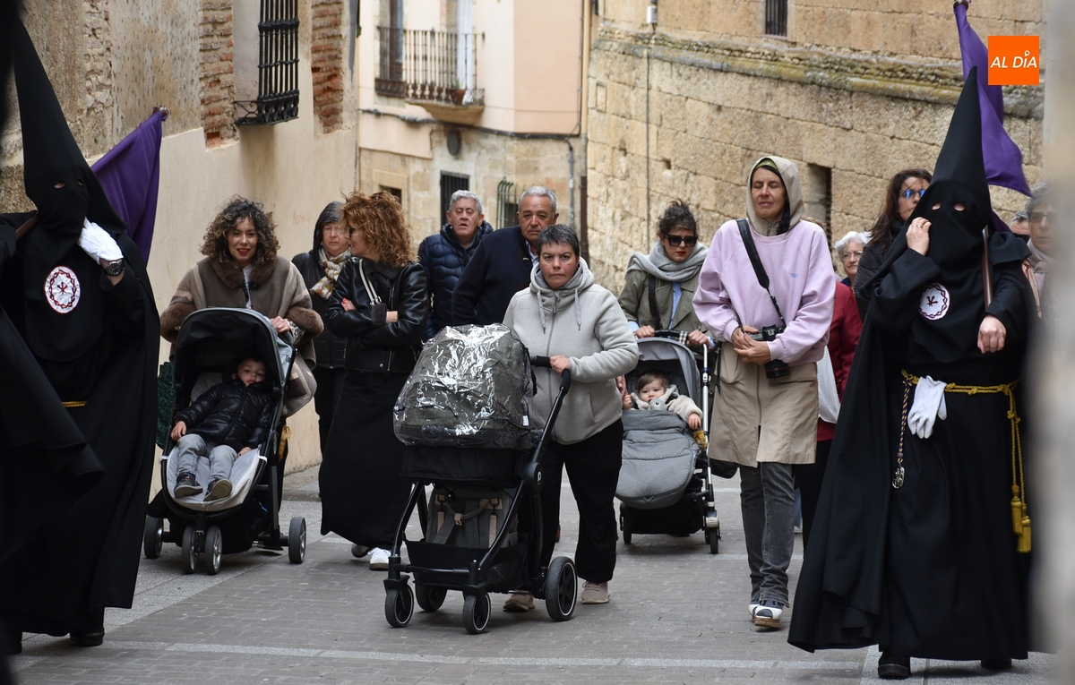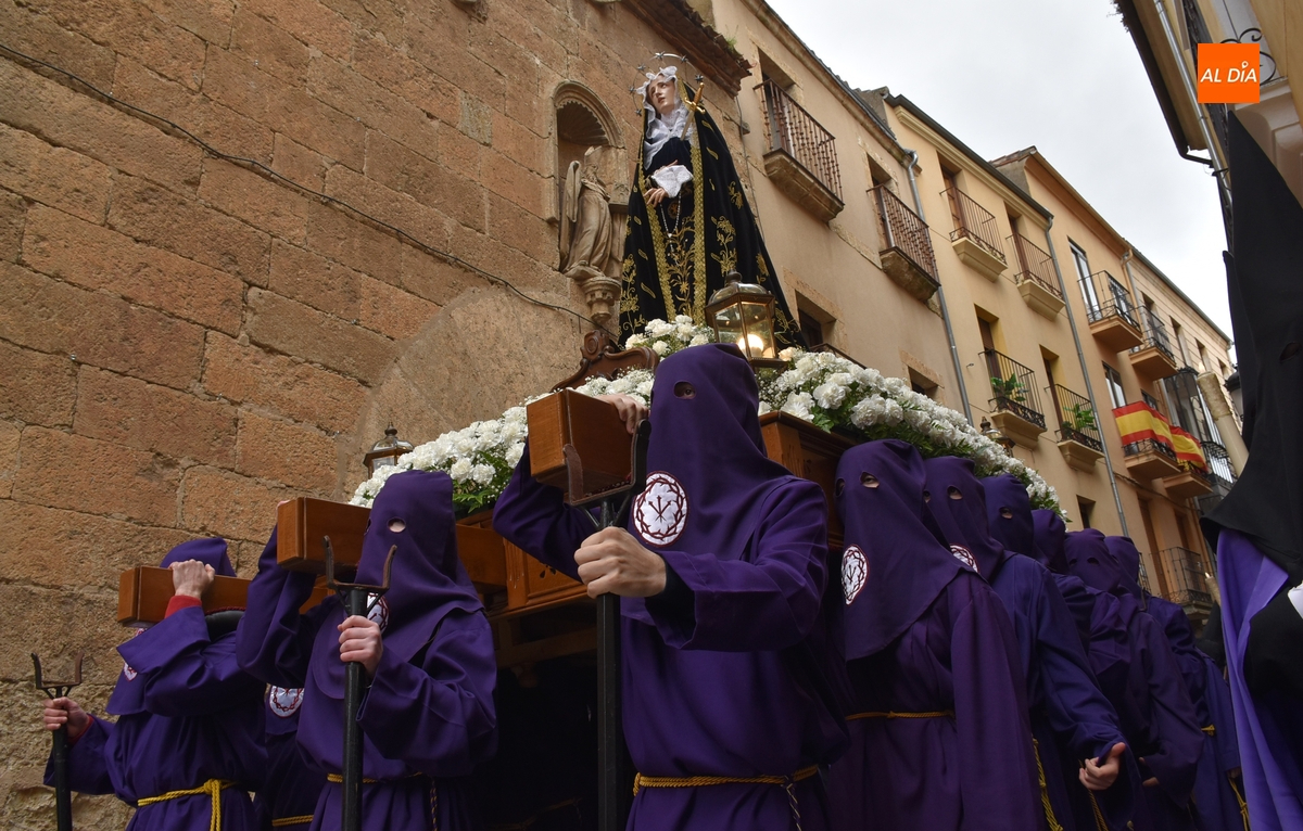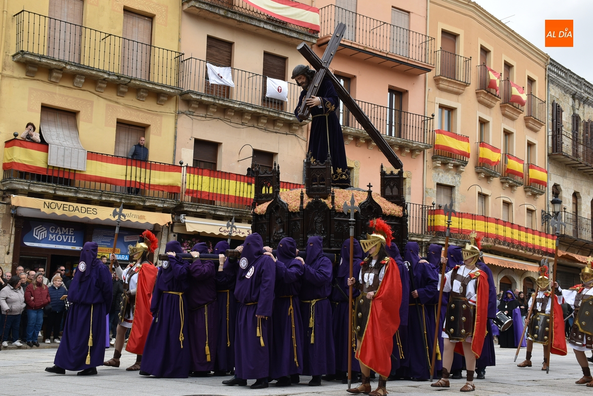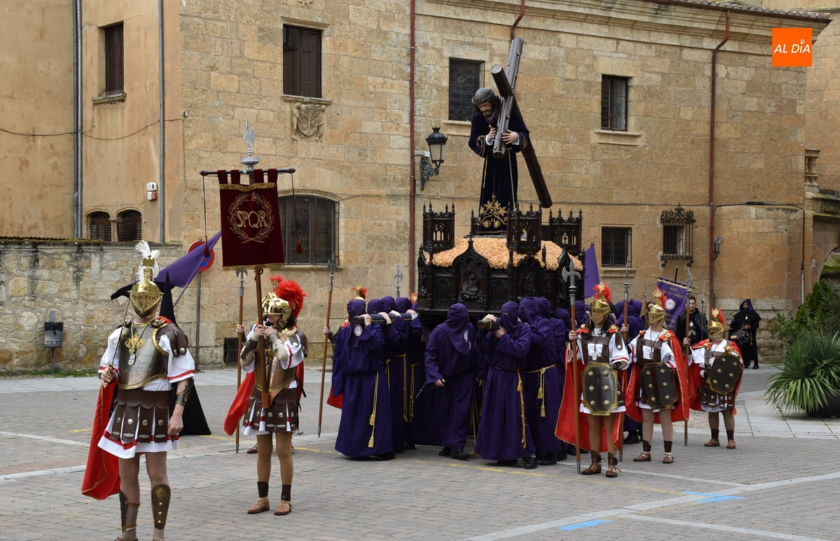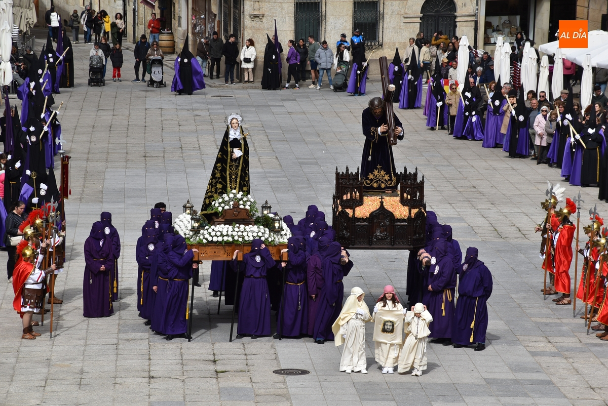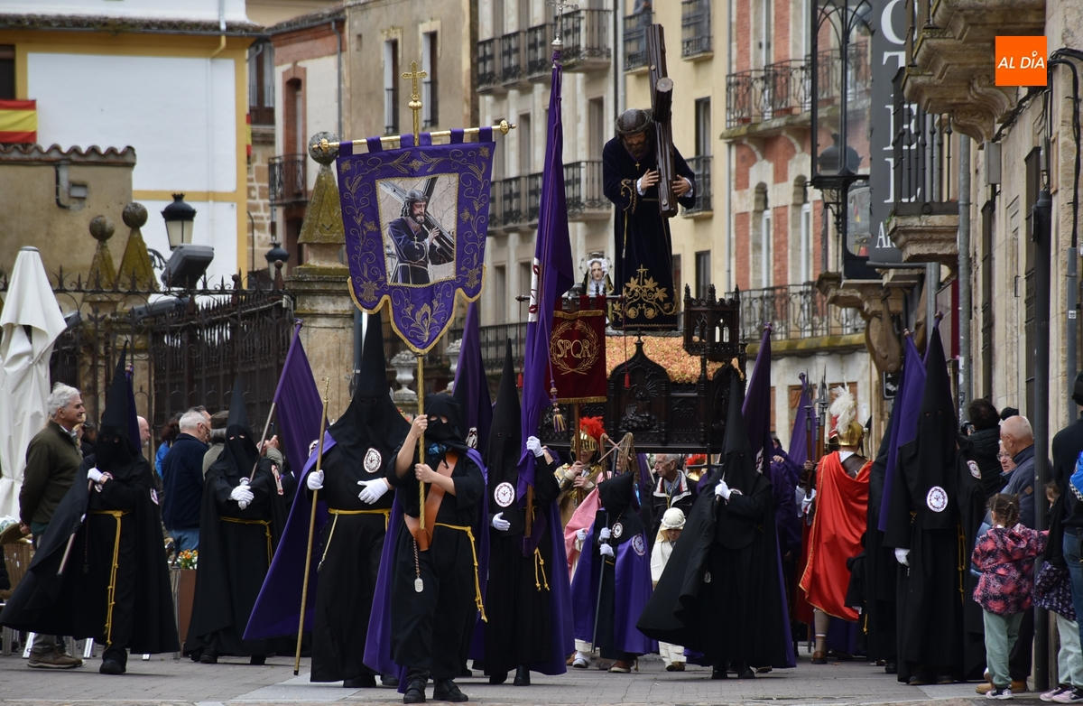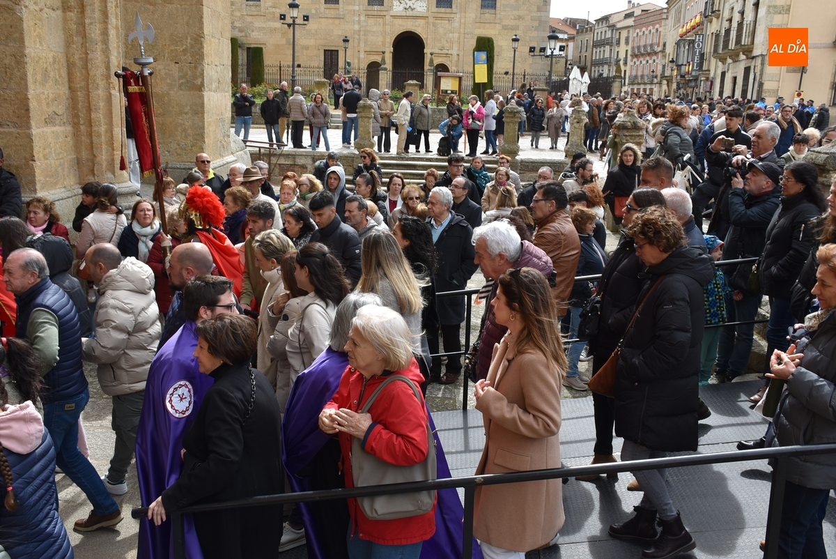 La jornada del Viernes Santo promete ser en su conjunto bastante complicada en el apartado meteorológico (como ya se pudo comprobar en el segundo tramo de la mañana), pero al menos Ciudad Rodrigo pudo disfrutar de la primera procesión del día, el histórico Encuentro a cargo de la Cofradía de Jesús Nazareno, que acabó realizando un cambio de trayecto para estar menos tiempo en la calle ante la amenaza de lluvia (que acabó cayendo).