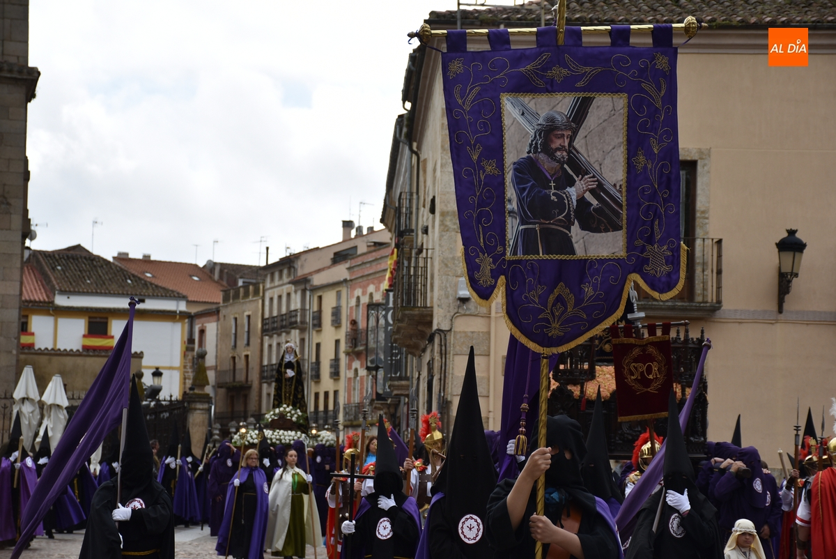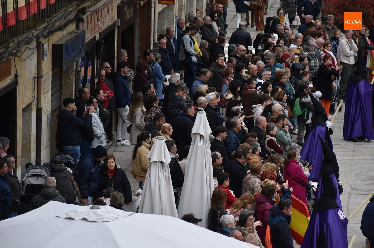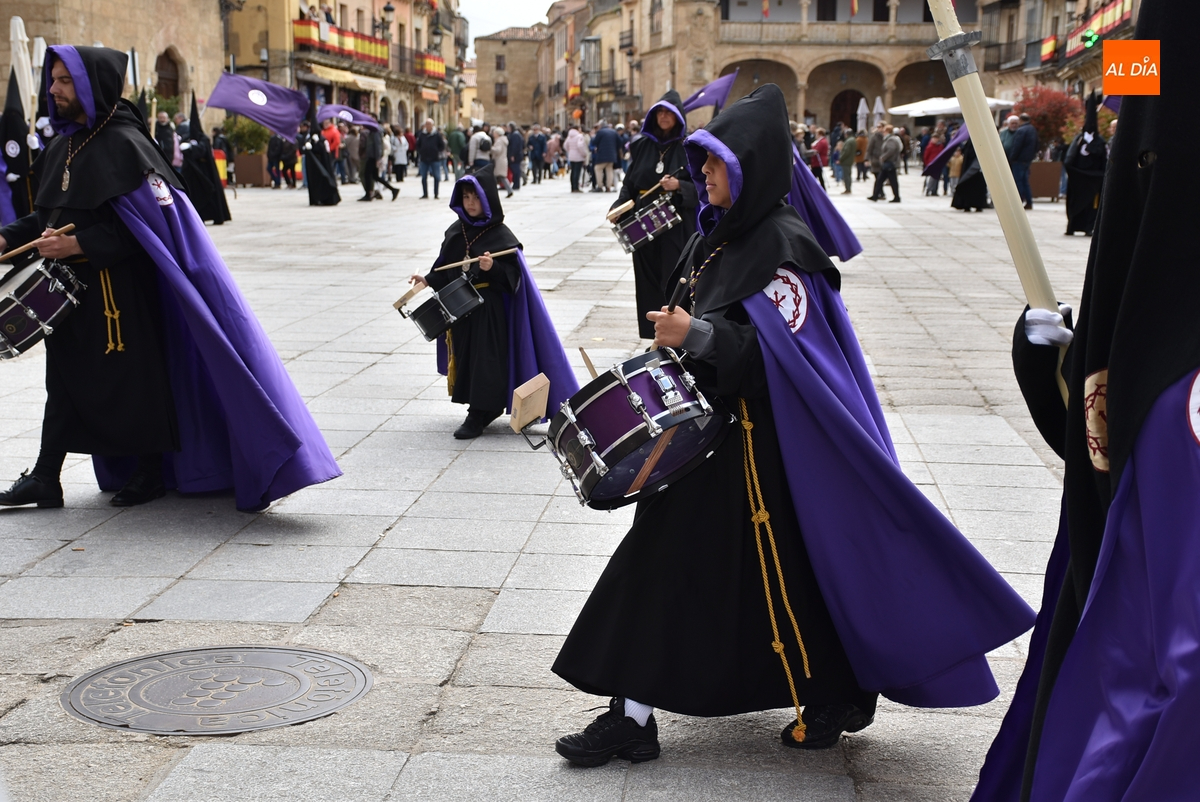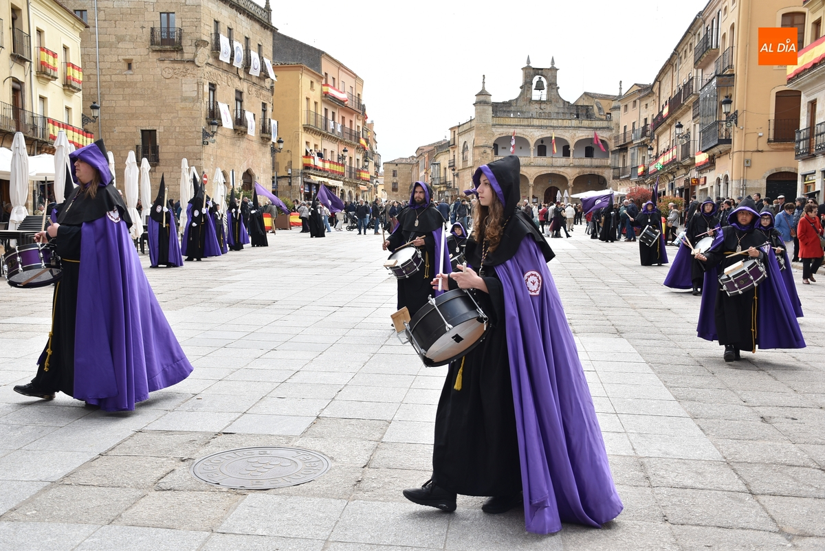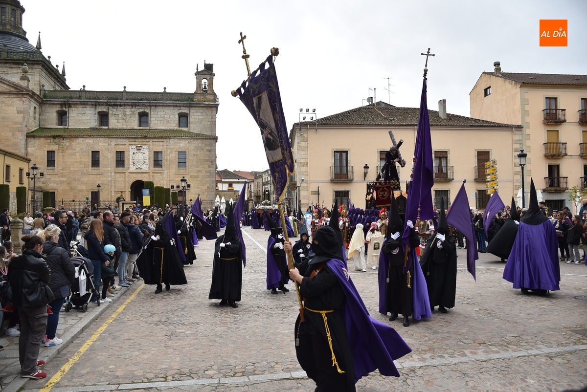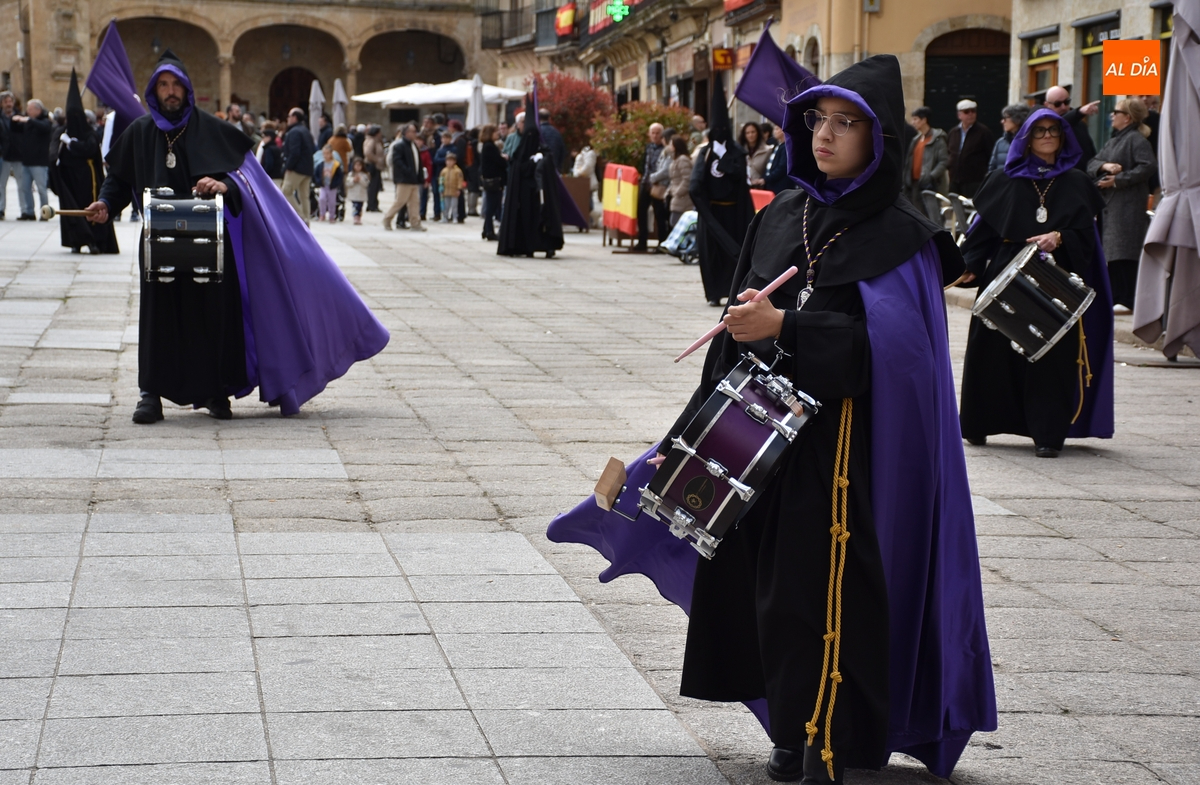 La jornada del Viernes Santo promete ser en su conjunto bastante complicada en el apartado meteorológico (como ya se pudo comprobar en el segundo tramo de la mañana), pero al menos Ciudad Rodrigo pudo disfrutar de la primera procesión del día, el histórico Encuentro a cargo de la Cofradía de Jesús Nazareno, que acabó realizando un cambio de trayecto para estar menos tiempo en la calle ante la amenaza de lluvia (que acabó cayendo).