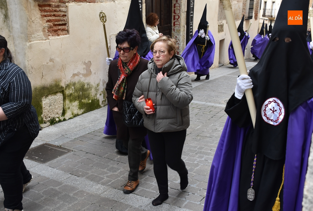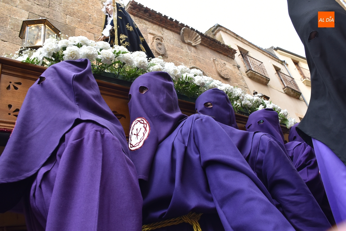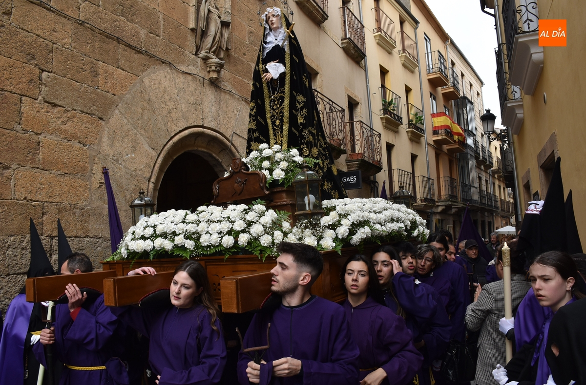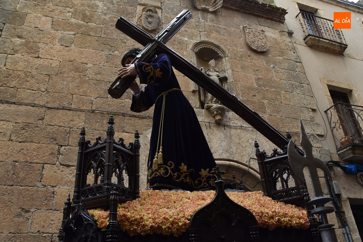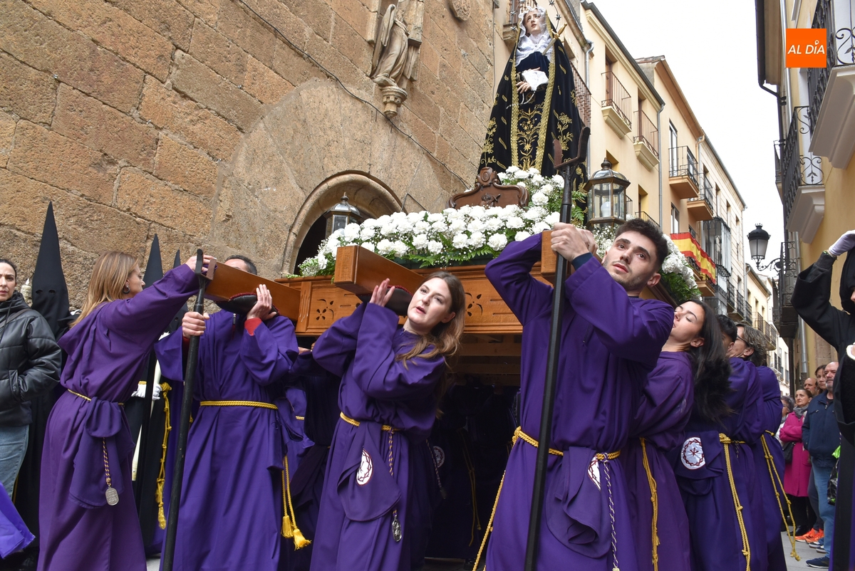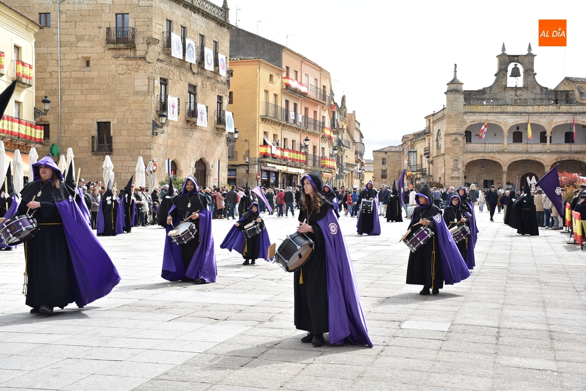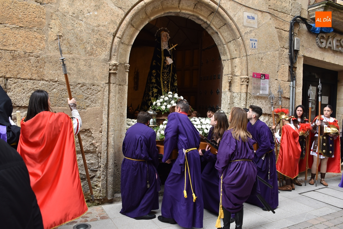 La jornada del Viernes Santo promete ser en su conjunto bastante complicada en el apartado meteorológico (como ya se pudo comprobar en el segundo tramo de la mañana), pero al menos Ciudad Rodrigo pudo disfrutar de la primera procesión del día, el histórico Encuentro a cargo de la Cofradía de Jesús Nazareno, que acabó realizando un cambio de trayecto para estar menos tiempo en la calle ante la amenaza de lluvia (que acabó cayendo).