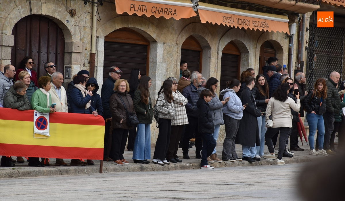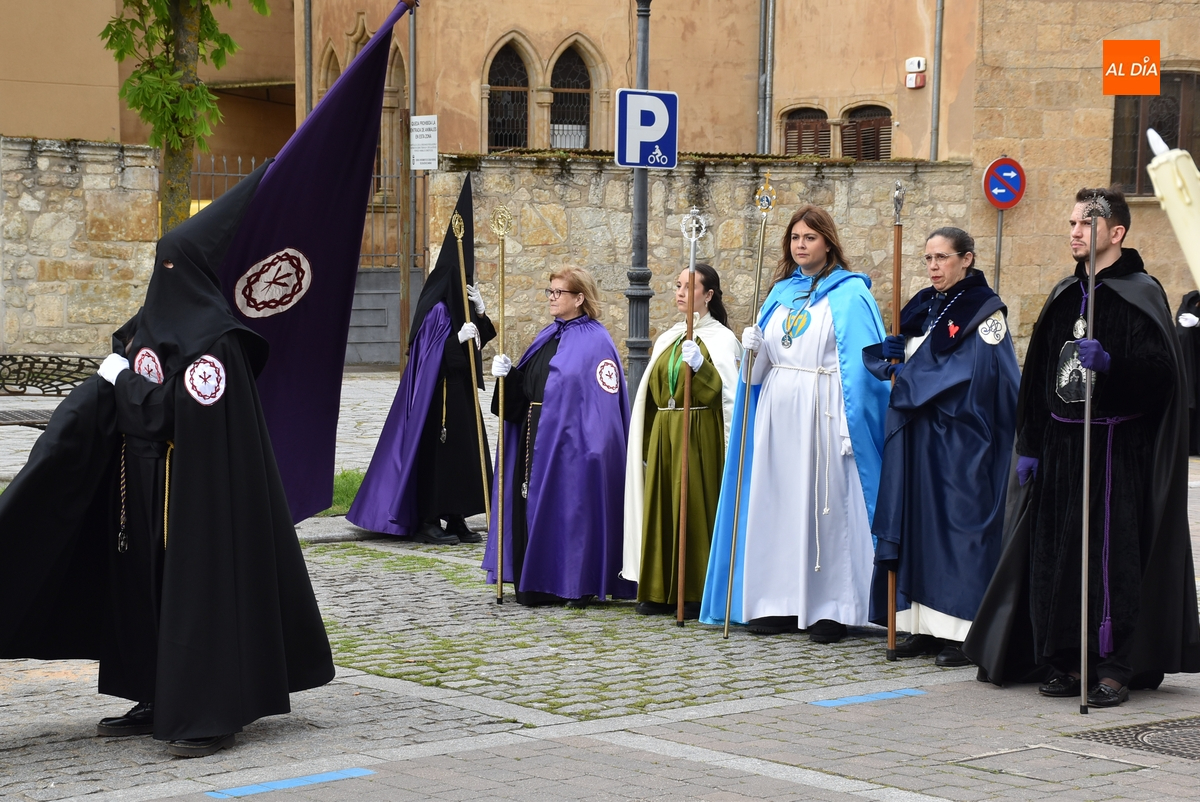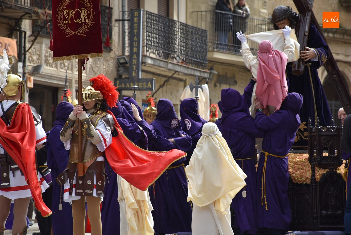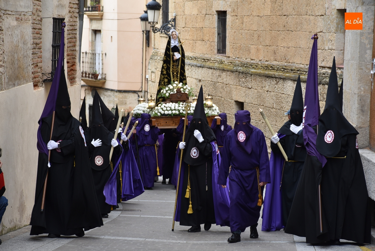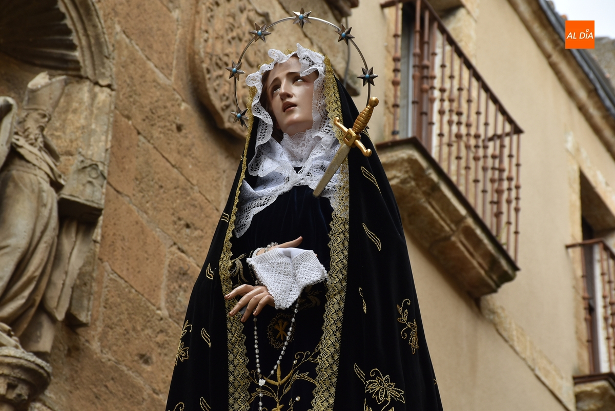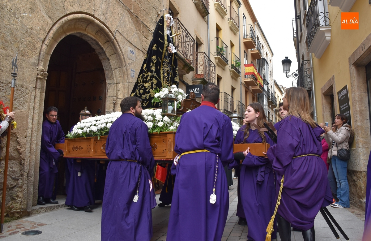La jornada del Viernes Santo promete ser en su conjunto bastante complicada en el apartado meteorológico (como ya se pudo comprobar en el segundo tramo de la mañana), pero al menos Ciudad Rodrigo pudo disfrutar de la primera procesión del día, el histórico Encuentro a cargo de la Cofradía de Jesús Nazareno, que acabó realizando un cambio de trayecto para estar menos tiempo en la calle ante la amenaza de lluvia (que acabó cayendo).
