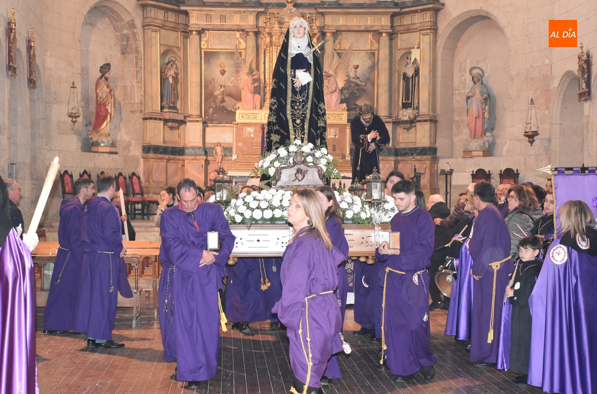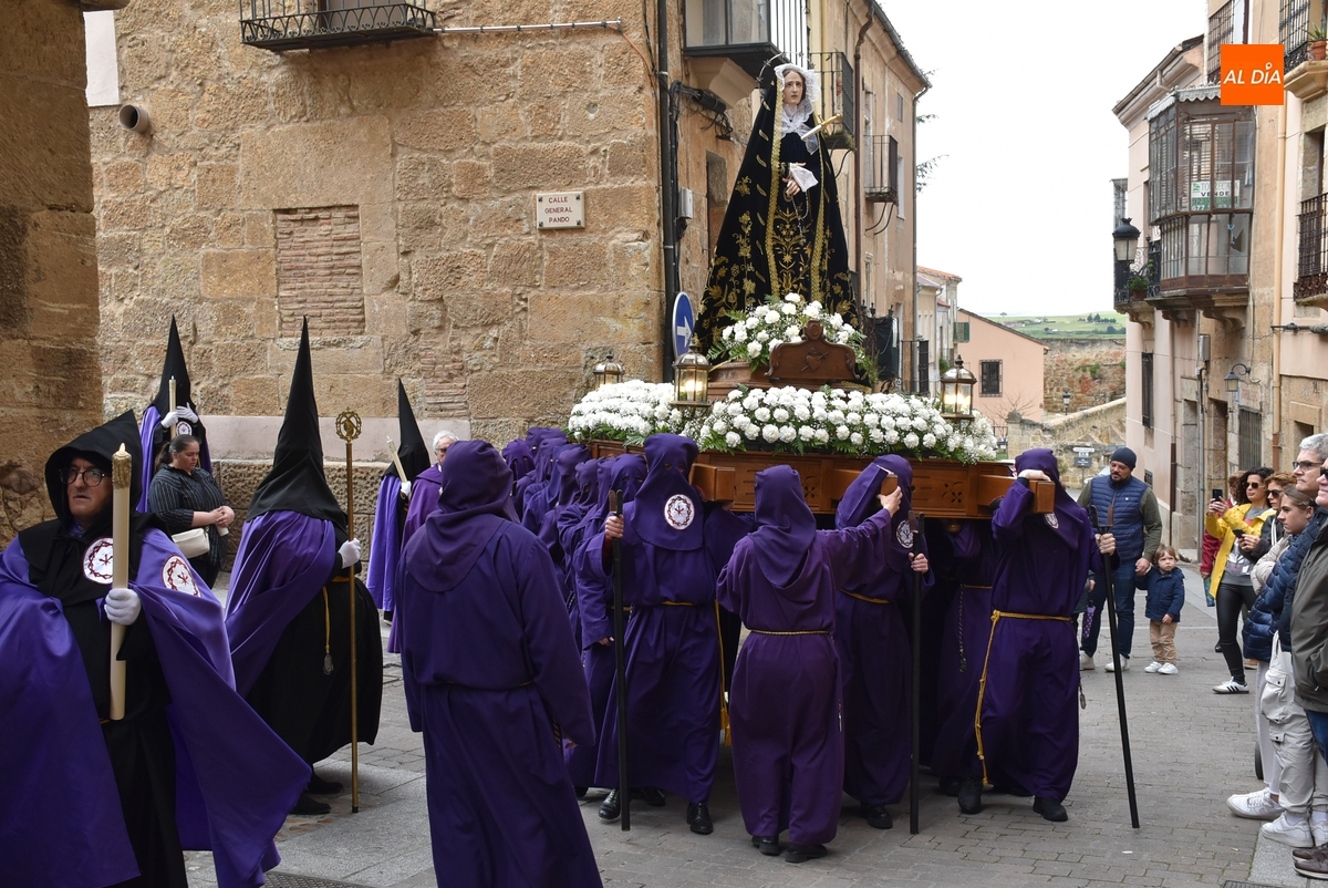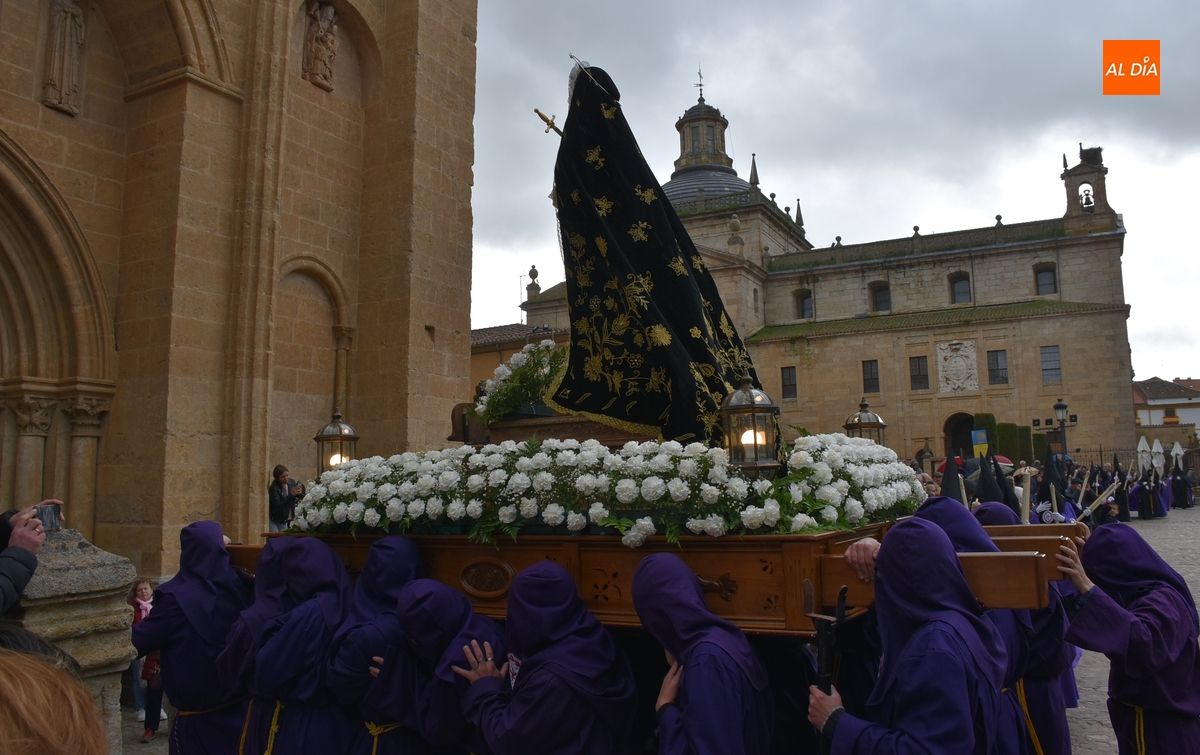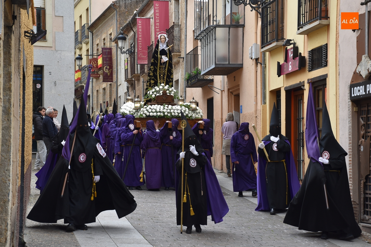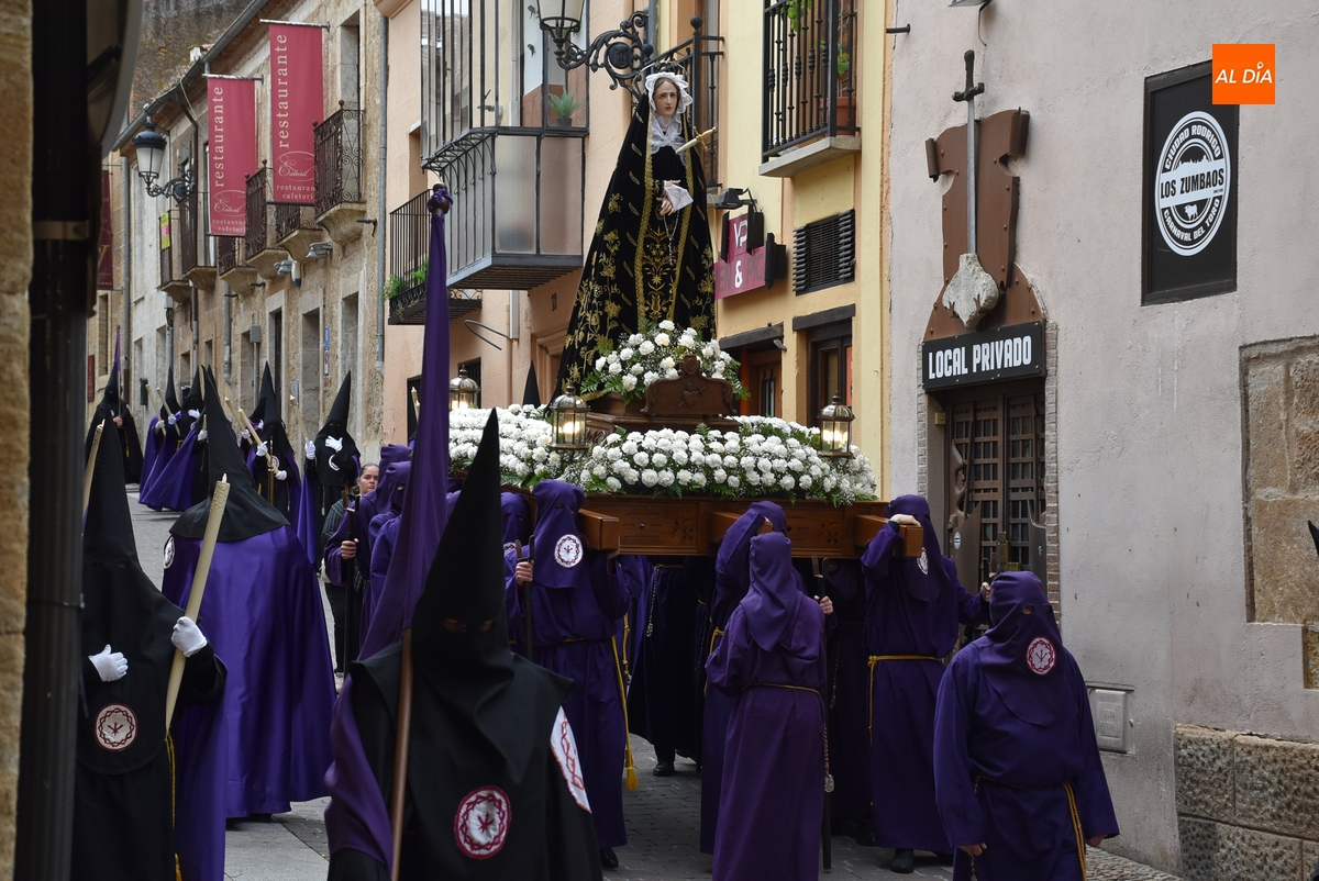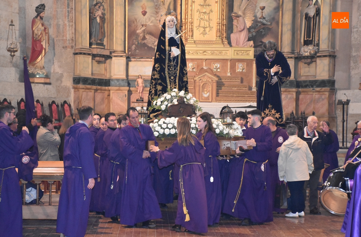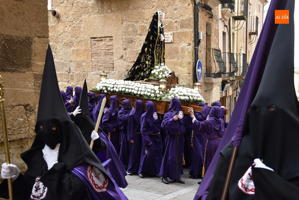La jornada del Viernes Santo promete ser en su conjunto bastante complicada en el apartado meteorológico (como ya se pudo comprobar en el segundo tramo de la mañana), pero al menos Ciudad Rodrigo pudo disfrutar de la primera procesión del día, el histórico Encuentro a cargo de la Cofradía de Jesús Nazareno, que acabó realizando un cambio de trayecto para estar menos tiempo en la calle ante la amenaza de lluvia (que acabó cayendo).