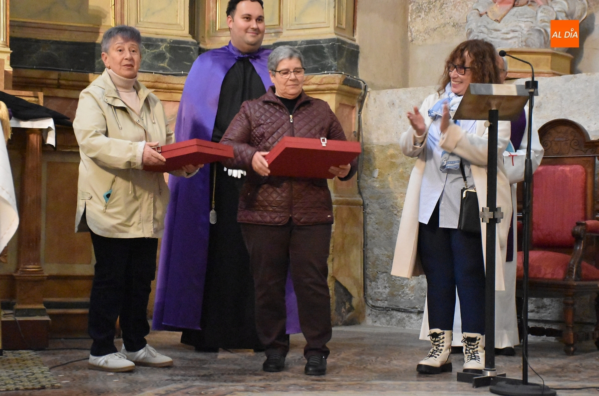 En este 2025, el reconocimiento ha sido doble, a María del Carmen y María Antonia Álvarez, por el trabajo que desarrollan año tras año cobrando los recibos a los cofrades, primero en la sede de la entidad, y posteriormente acudiendo a los domicilios de los que faltan por pagar, incluso con sus vehículos, sin recibir ninguna compensación por ello.