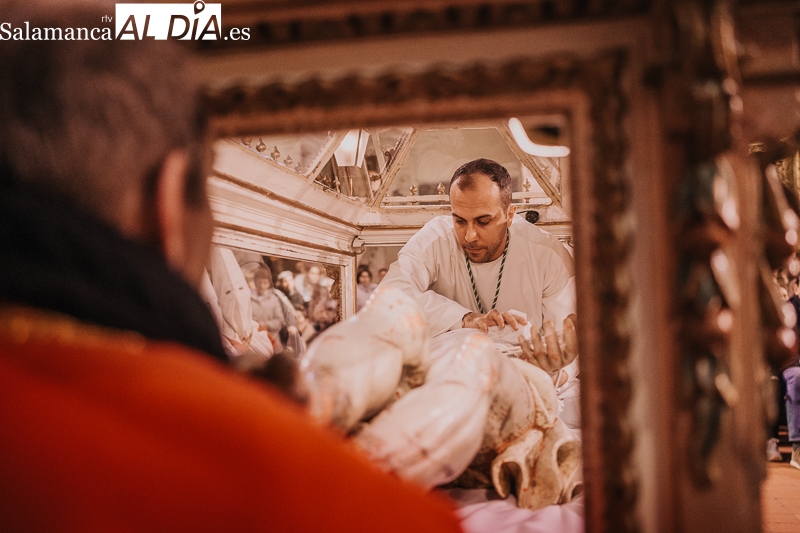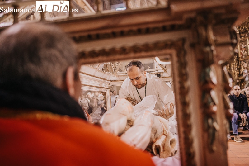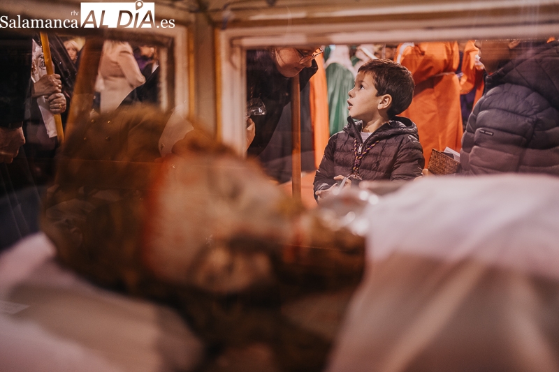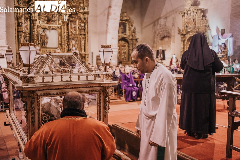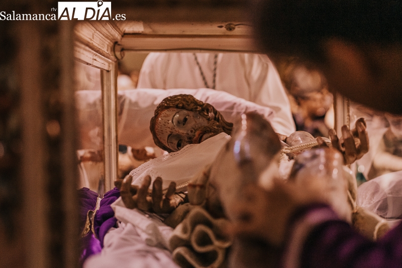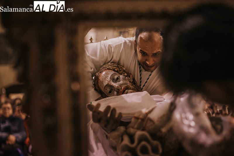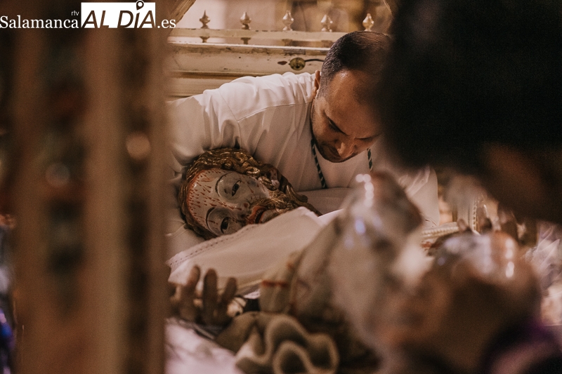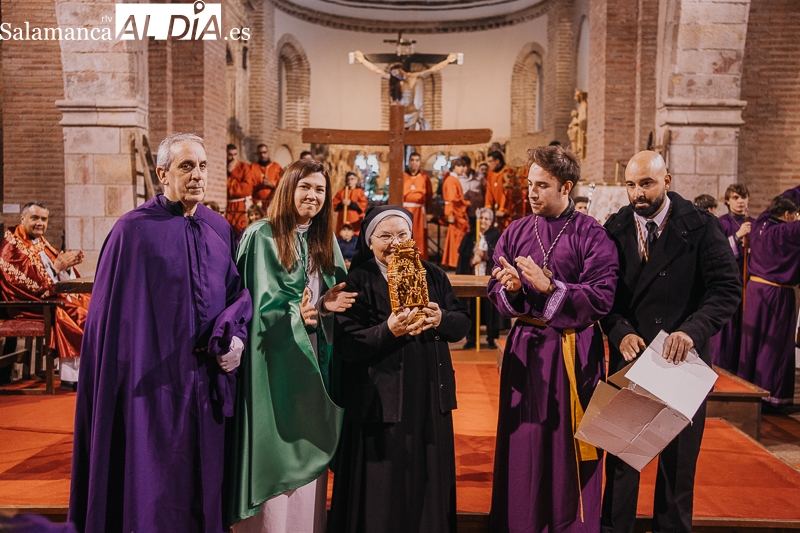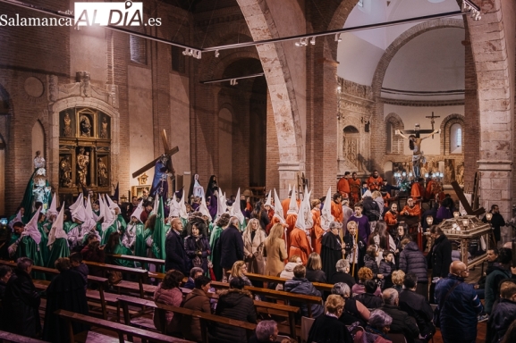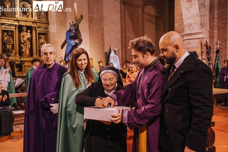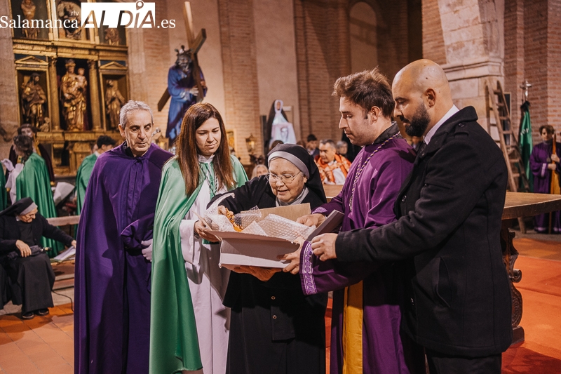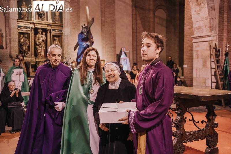 Este Viernes Santo, a las 19:00 horas, se celebró en la iglesia de San Juan la Misa del Descendimiento, en la que las Benedictinas participaron con una emotiva intervención, por la que recibieron un obsequio de todas las cofradías. La lluvia comenzó poco después, y tras una espera hasta las 20:15, se decidió suspender la Procesión del Santo Entierro.