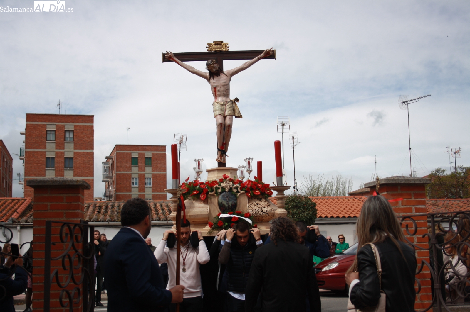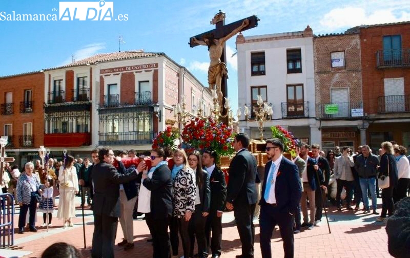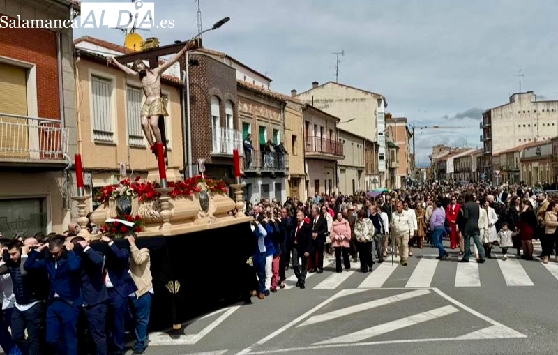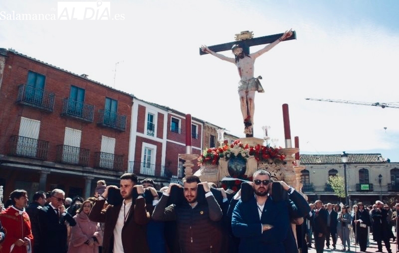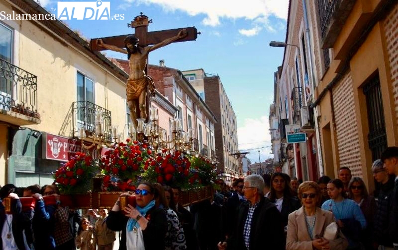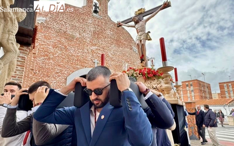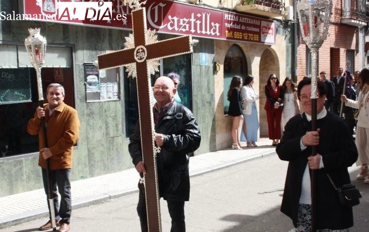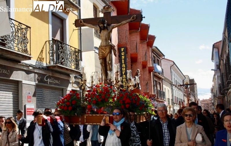 Un desfile que arrancaba a las once y media de la mañana, con el Santo Cristo de la Agonía y el Santo Cristo del Humilladero comenzando su particular peregrinaje desde la Ermita de San Luis, imágenes portadas a hombros y acompañadas por varios cientos de personas.