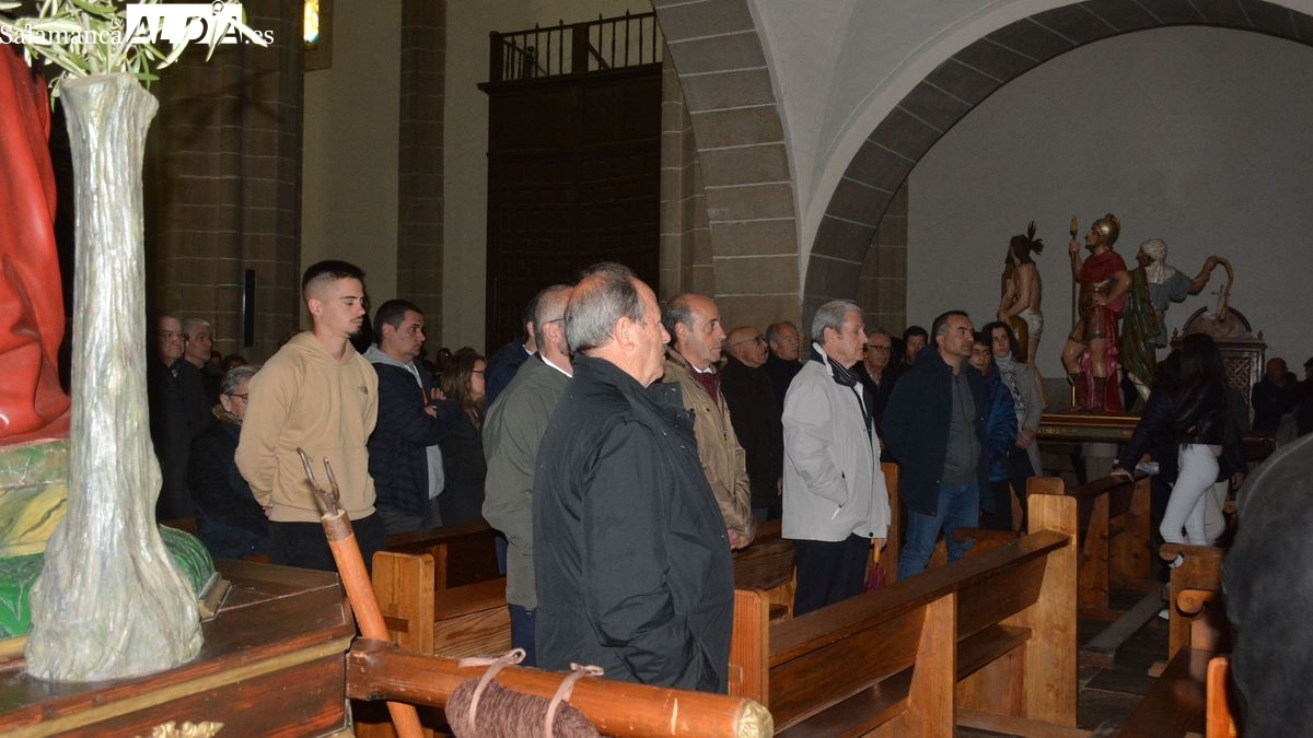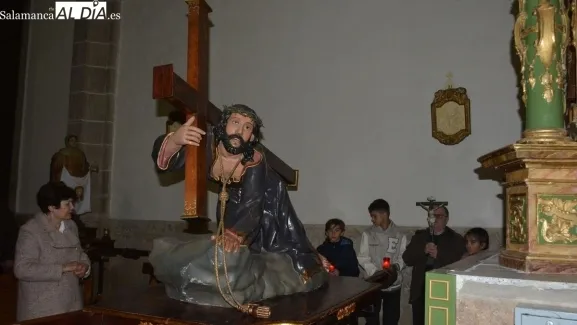 La lluvia impide la procesión del Vía Crucis en Lumbrales y la celebración se realiza en el interior de la iglesia