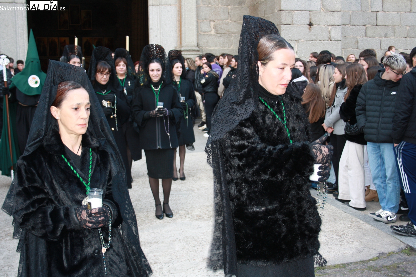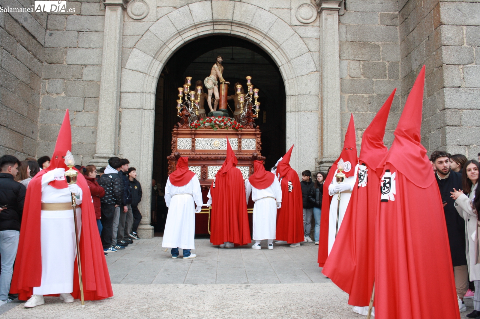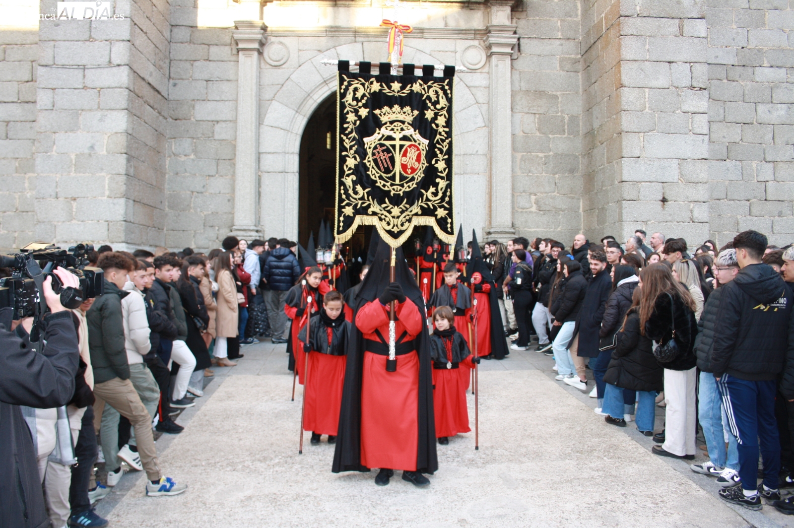 Puntuales sobre el horario fijado comenzaba a salir la comitiva desde la iglesia parroquial, con penitentes de todas las cofradias, arropando a las imágenes de Jesús Medinaceli, Nuestra Señora de la Esperanza y Jesús Flagelado, que partían del templo para iniciar sus diferentes caminos por el centro de la ciudad, teniendo como lugar de llegada la Plaza de España.