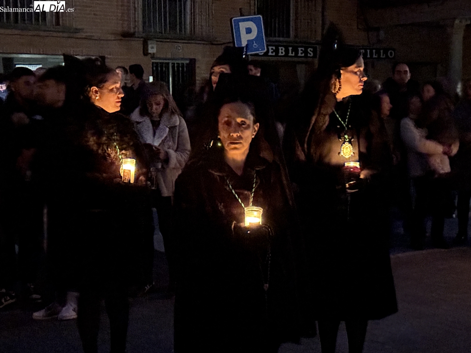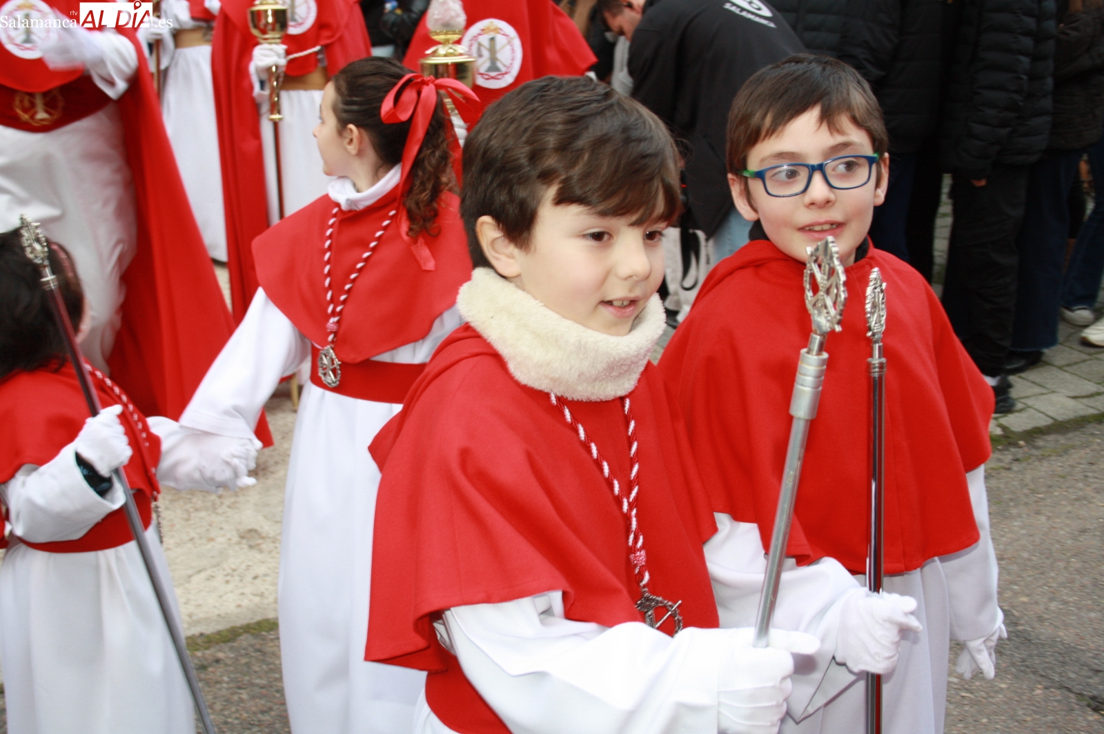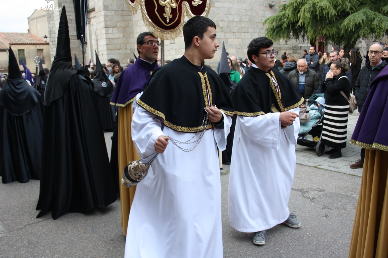 Puntuales sobre el horario fijado comenzaba a salir la comitiva desde la iglesia parroquial, con penitentes de todas las cofradias, arropando a las imágenes de Jesús Medinaceli, Nuestra Señora de la Esperanza y Jesús Flagelado, que partían del templo para iniciar sus diferentes caminos por el centro de la ciudad, teniendo como lugar de llegada la Plaza de España.