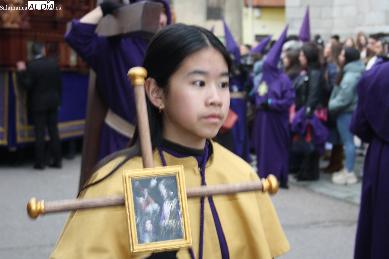 Miles de personas se han echado a las calles de Peñaranda en la tarde de este Jueves Santo para vivir un año más la tradicional y autóctona Procesión del Encuentro, desfile único en el que han participado las ocho cofradías peñarandinas.