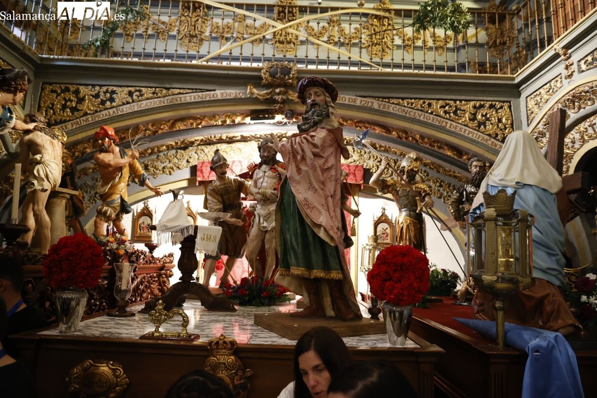 El elevado riesgo de lluvia ha obligado a la junta de gobierno de la Vera Cruz a suspender la salida procesional; fieles y visitantes han podido contemplar las imágenes en el interior de la Capilla