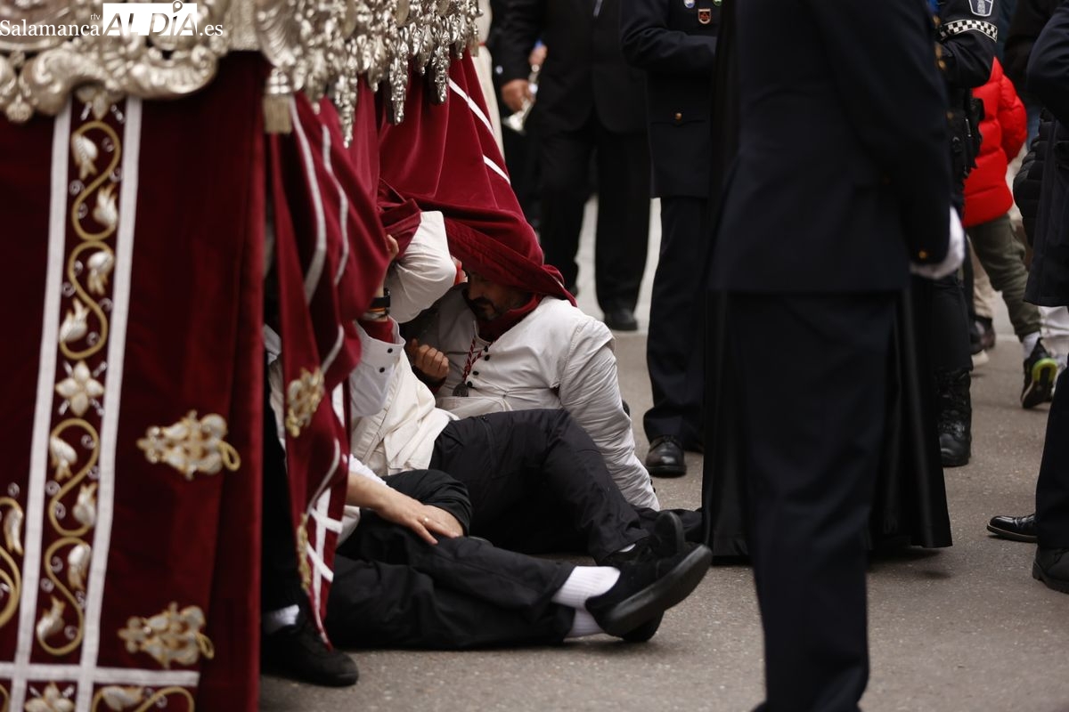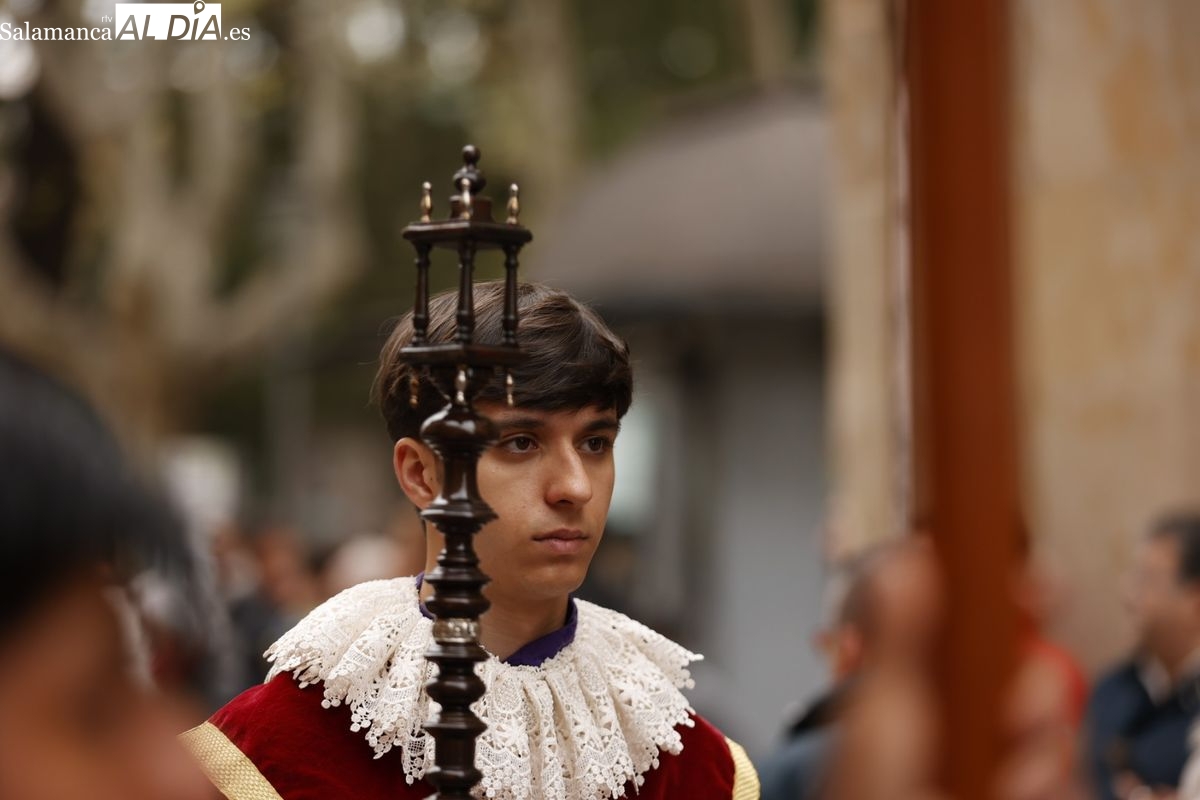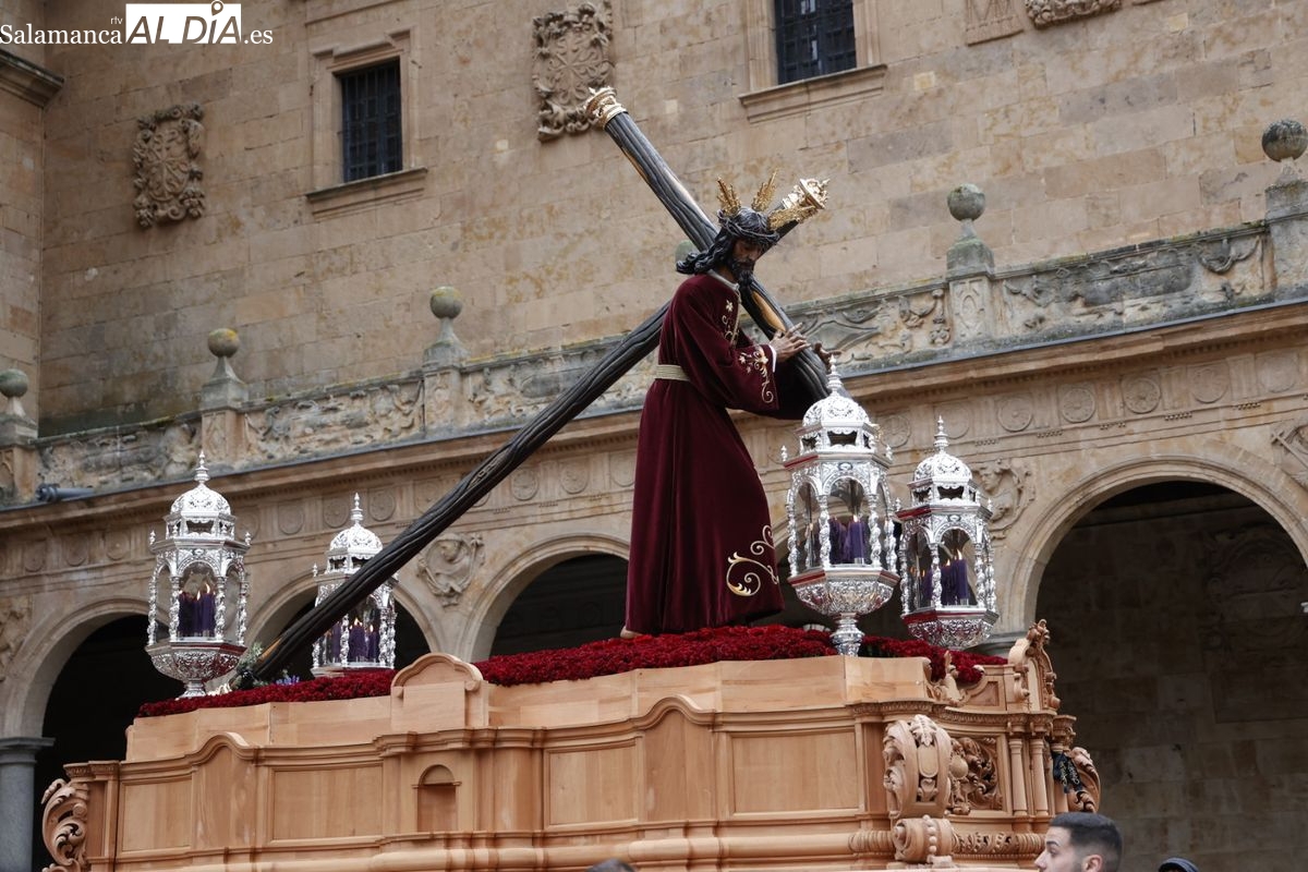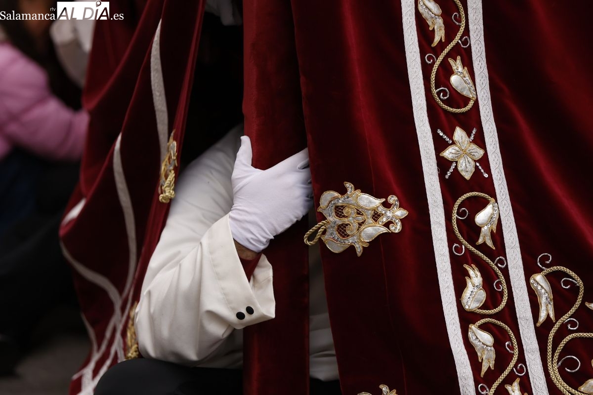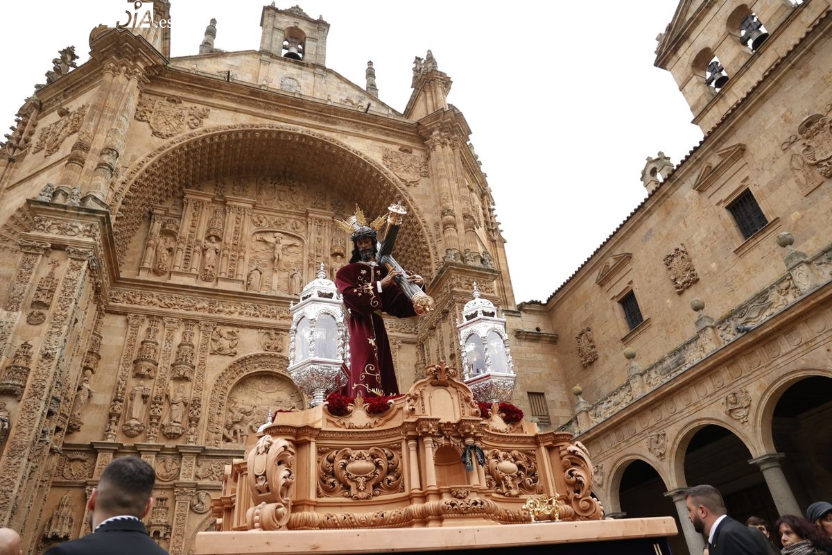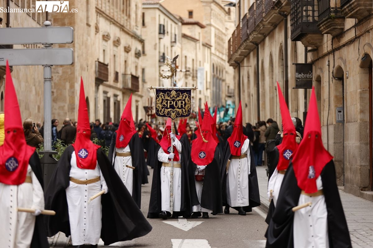 El Santísimo Cristo de la Buena Muerte, Nuestro Padre Jesús de la Pasión, Nuestra Señora de los Dolores y Nuestra Señora de la Esperanza han regresado esta mañana a su templo, el Convento de San Esteban, tras un recorrido solemne de seis horas por el casco histórico salmantino: Plaza del Concilio de Trento, Calle San Pablo, Calle Palominos, Rúa Mayor, Plaza de Anaya, S.I.B Catedral Nueva (entrada por la puerta de Ramos, salida por la puerta del Obispo), Calle Calderón de la Barca, Calle Libreros, Plaza de San Isidro, Calle de la Compañía, Calle Meléndez, Plaza del Corrillo, Plaza Mayor, Plaza del Poeta Iglesias, Calle San Pablo, Plaza Concilio de Trento y Atrio de San Esteban.