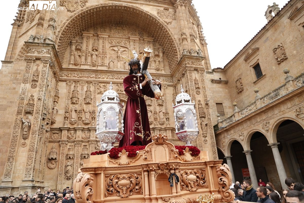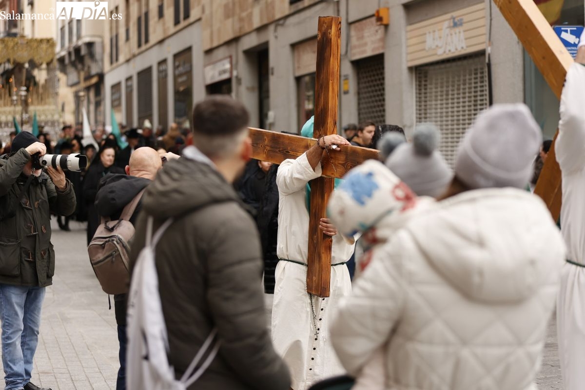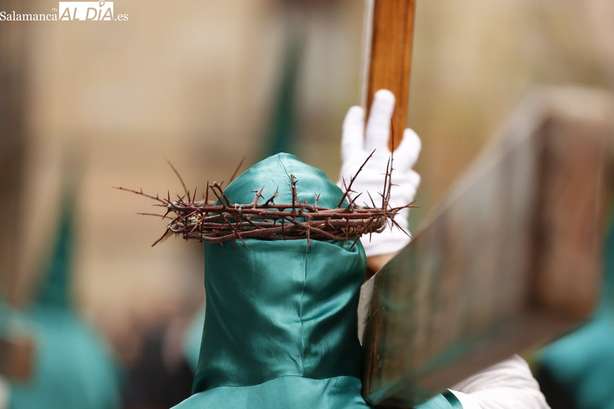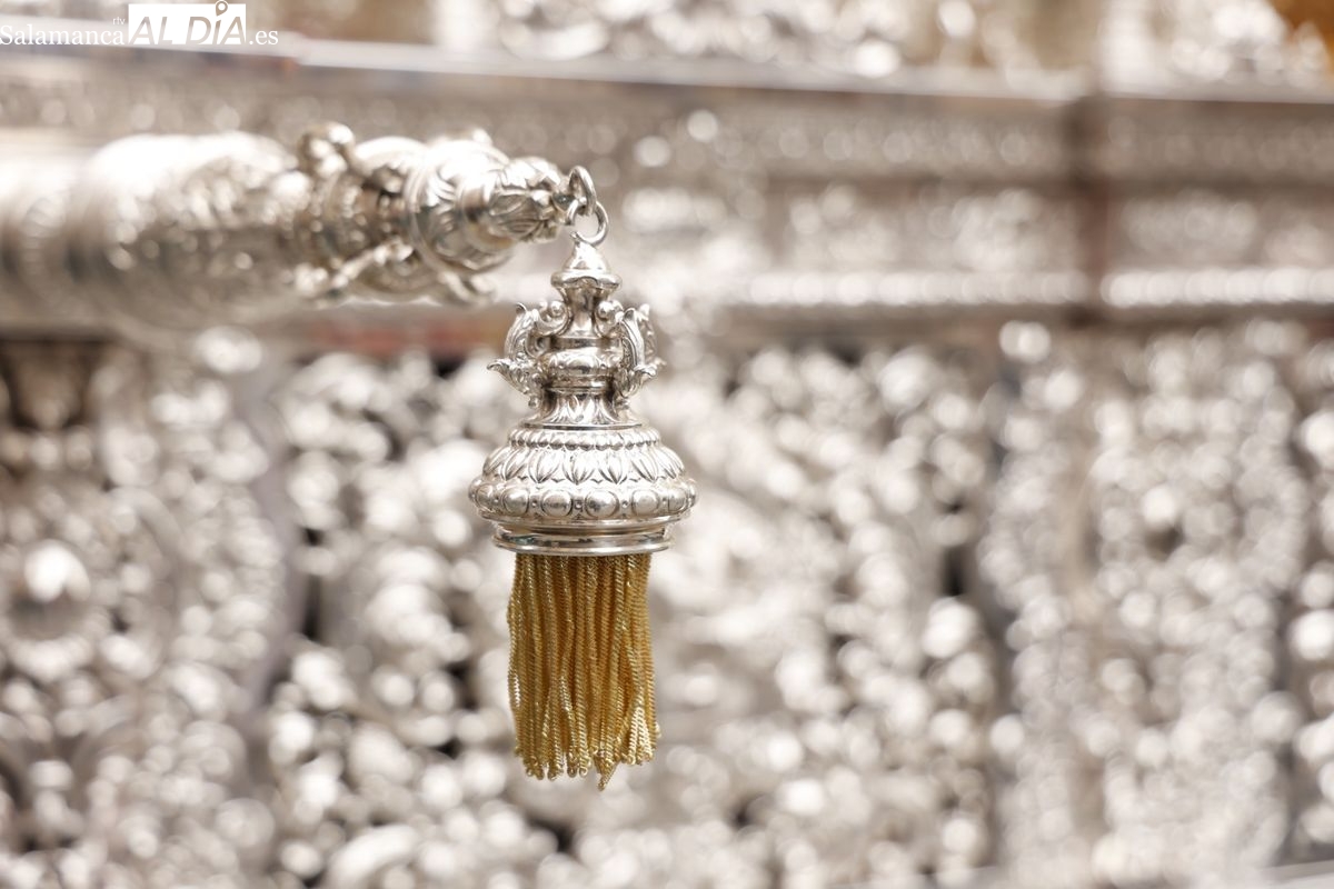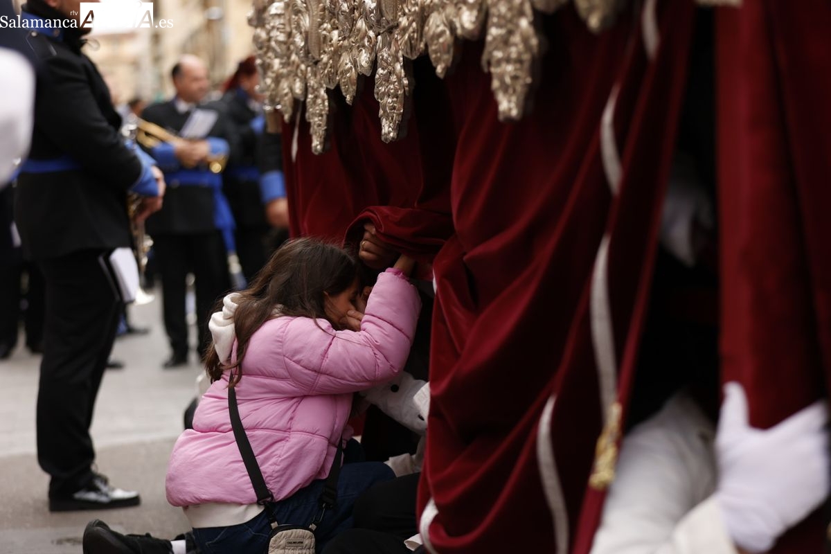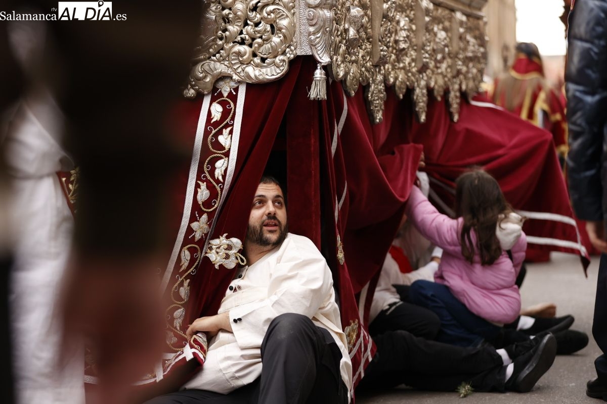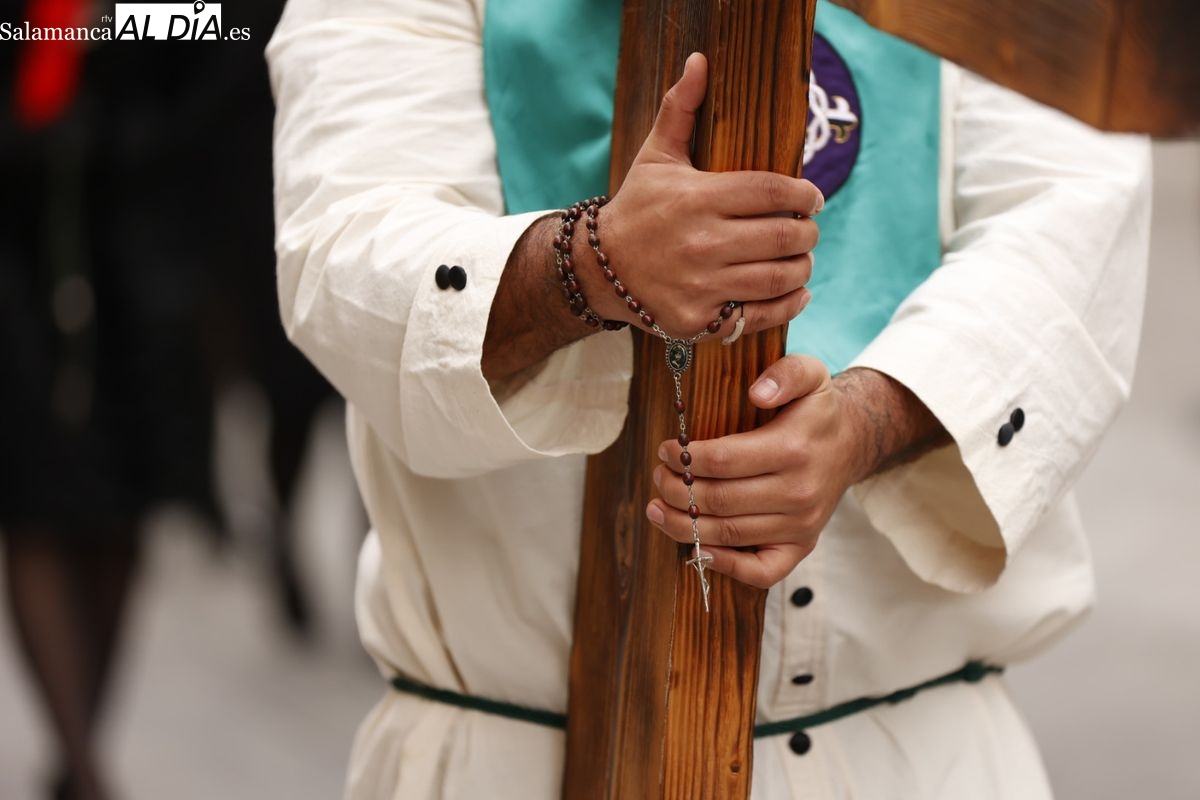 El Santísimo Cristo de la Buena Muerte, Nuestro Padre Jesús de la Pasión, Nuestra Señora de los Dolores y Nuestra Señora de la Esperanza han regresado esta mañana a su templo, el Convento de San Esteban, tras un recorrido solemne de seis horas por el casco histórico salmantino: Plaza del Concilio de Trento, Calle San Pablo, Calle Palominos, Rúa Mayor, Plaza de Anaya, S.I.B Catedral Nueva (entrada por la puerta de Ramos, salida por la puerta del Obispo), Calle Calderón de la Barca, Calle Libreros, Plaza de San Isidro, Calle de la Compañía, Calle Meléndez, Plaza del Corrillo, Plaza Mayor, Plaza del Poeta Iglesias, Calle San Pablo, Plaza Concilio de Trento y Atrio de San Esteban.
