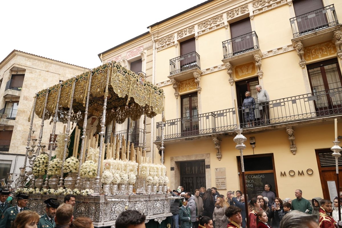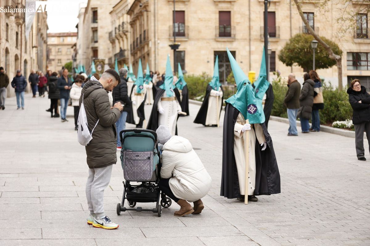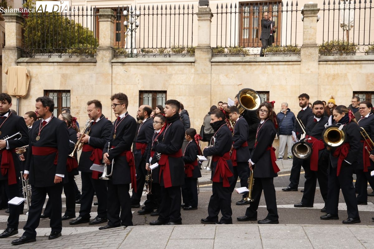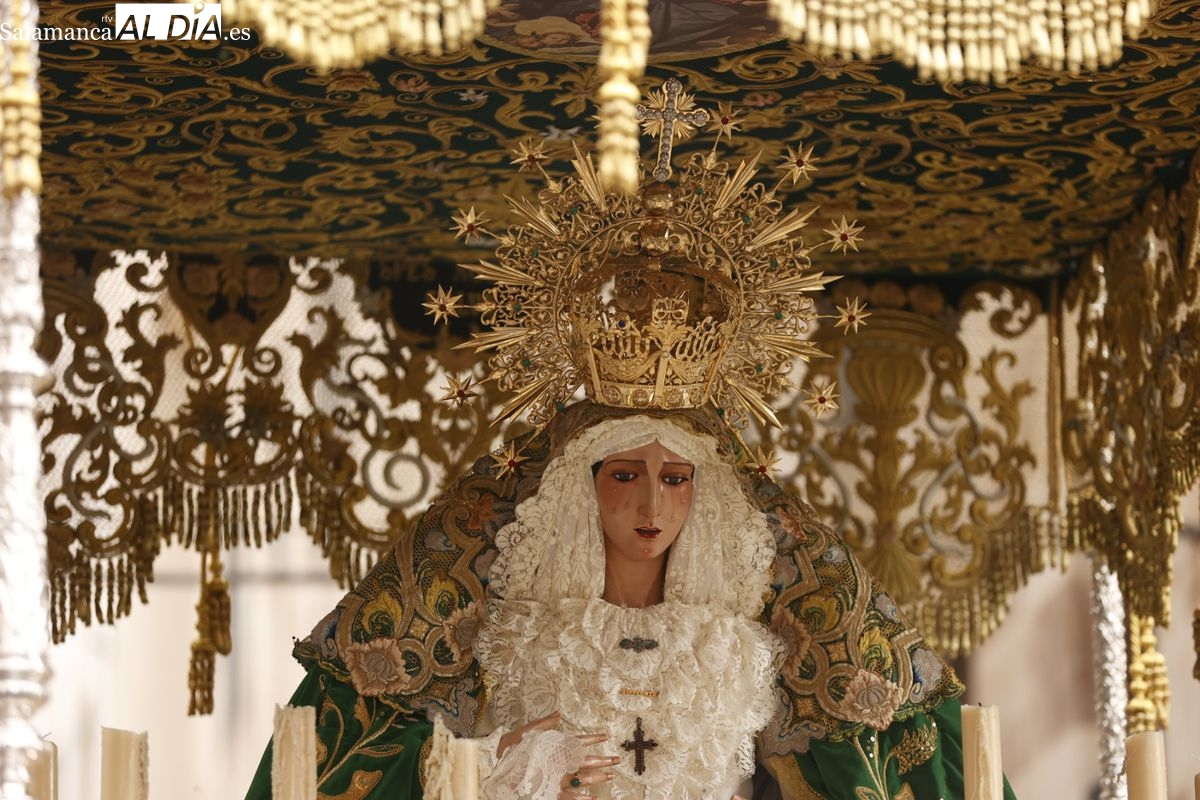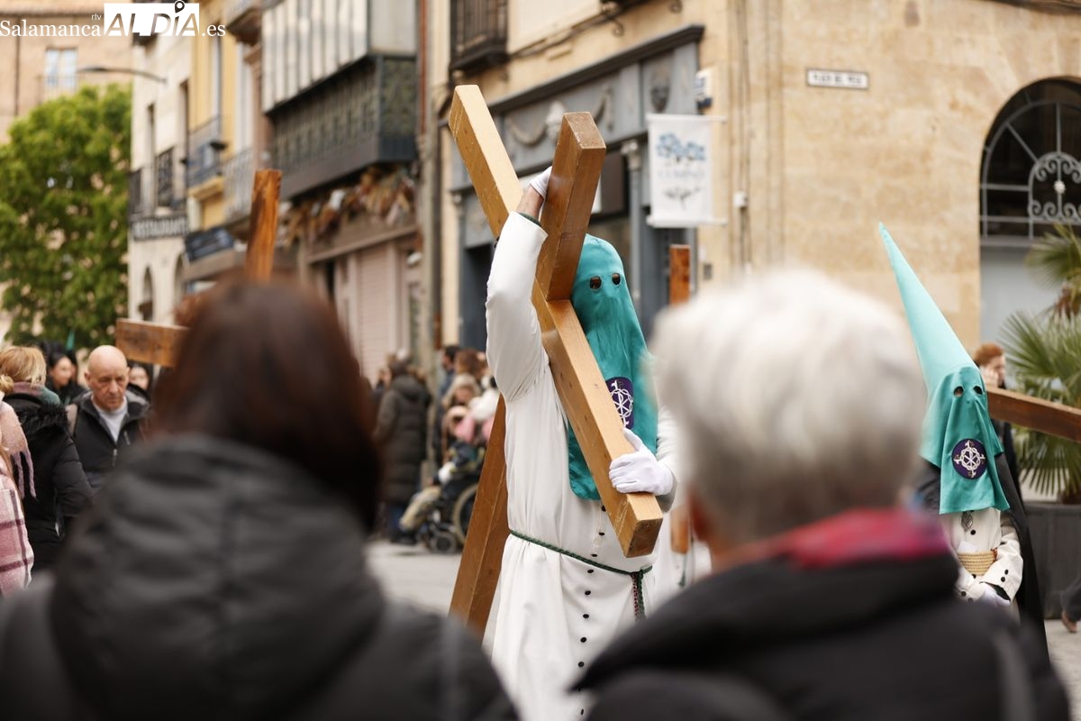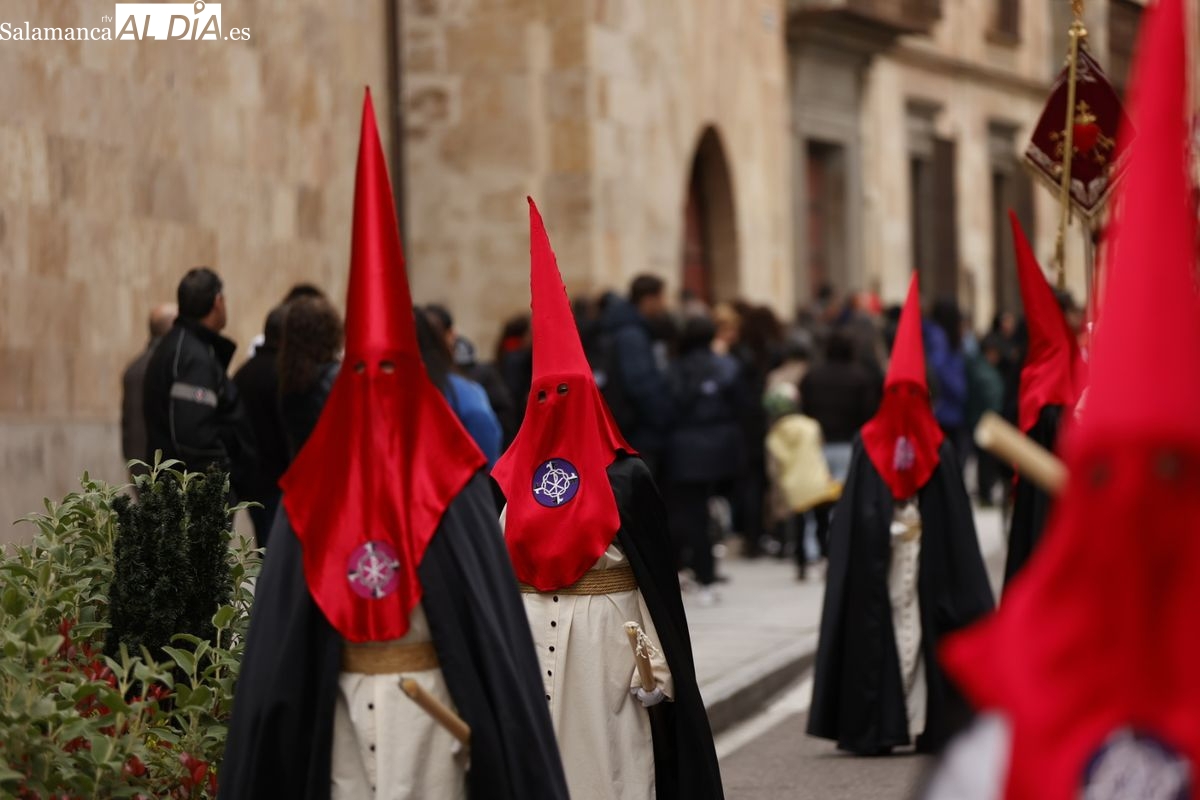 El Santísimo Cristo de la Buena Muerte, Nuestro Padre Jesús de la Pasión, Nuestra Señora de los Dolores y Nuestra Señora de la Esperanza han regresado esta mañana a su templo, el Convento de San Esteban, tras un recorrido solemne de seis horas por el casco histórico salmantino: Plaza del Concilio de Trento, Calle San Pablo, Calle Palominos, Rúa Mayor, Plaza de Anaya, S.I.B Catedral Nueva (entrada por la puerta de Ramos, salida por la puerta del Obispo), Calle Calderón de la Barca, Calle Libreros, Plaza de San Isidro, Calle de la Compañía, Calle Meléndez, Plaza del Corrillo, Plaza Mayor, Plaza del Poeta Iglesias, Calle San Pablo, Plaza Concilio de Trento y Atrio de San Esteban.