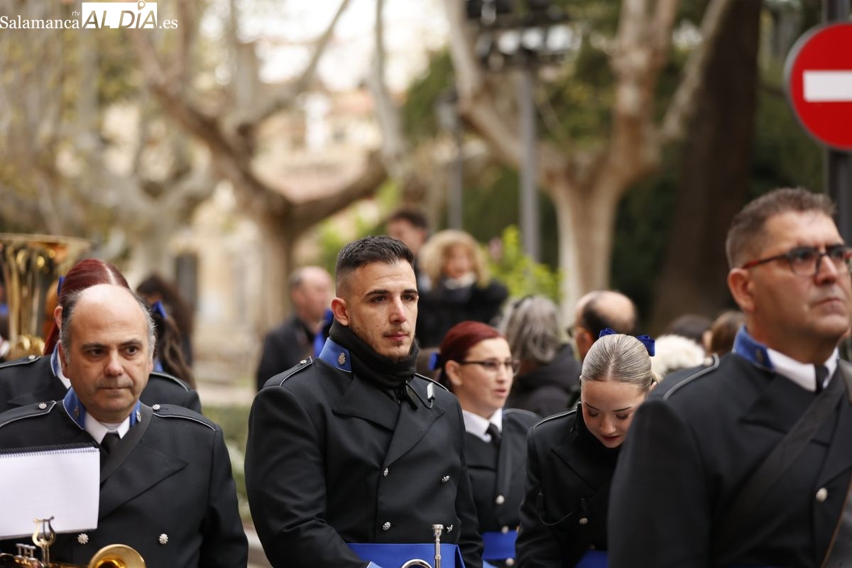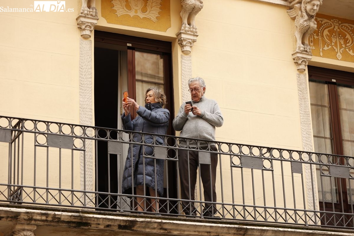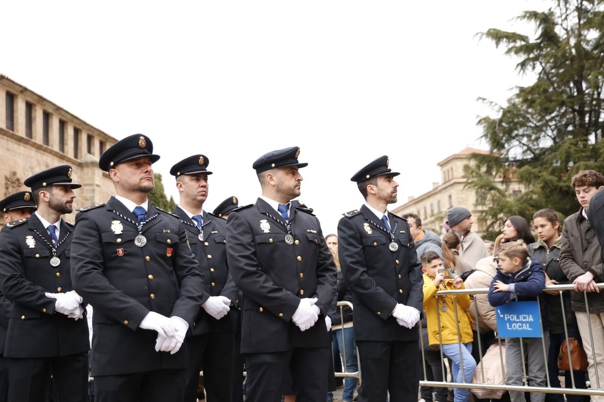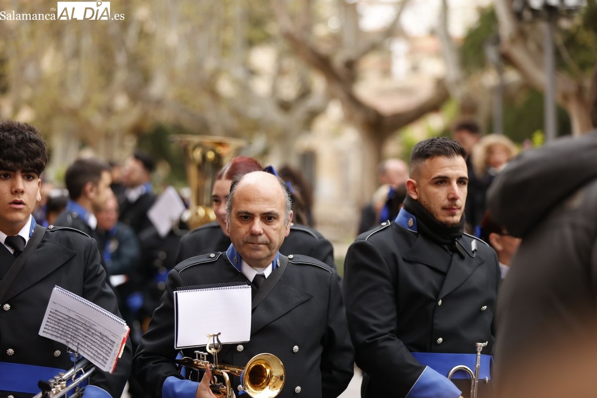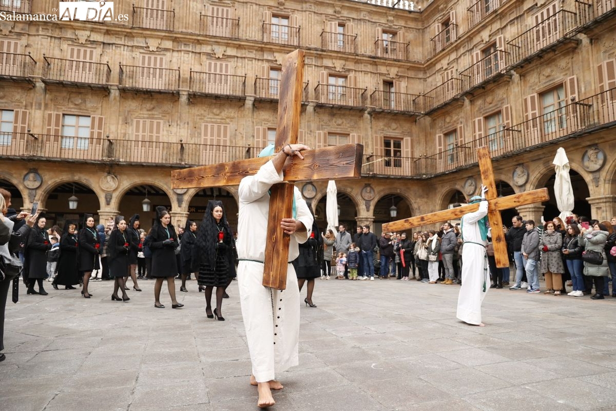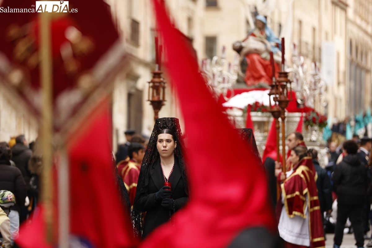 El Santísimo Cristo de la Buena Muerte, Nuestro Padre Jesús de la Pasión, Nuestra Señora de los Dolores y Nuestra Señora de la Esperanza han regresado esta mañana a su templo, el Convento de San Esteban, tras un recorrido solemne de seis horas por el casco histórico salmantino: Plaza del Concilio de Trento, Calle San Pablo, Calle Palominos, Rúa Mayor, Plaza de Anaya, S.I.B Catedral Nueva (entrada por la puerta de Ramos, salida por la puerta del Obispo), Calle Calderón de la Barca, Calle Libreros, Plaza de San Isidro, Calle de la Compañía, Calle Meléndez, Plaza del Corrillo, Plaza Mayor, Plaza del Poeta Iglesias, Calle San Pablo, Plaza Concilio de Trento y Atrio de San Esteban.