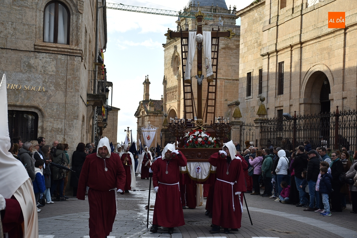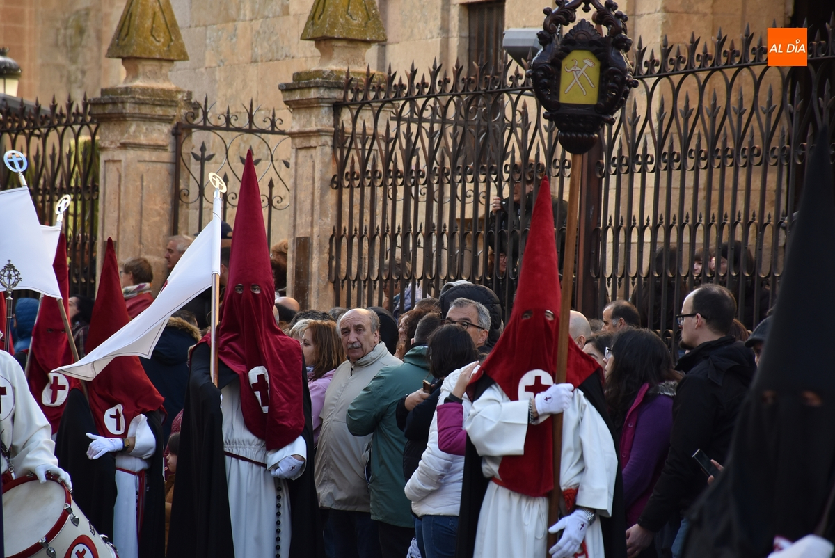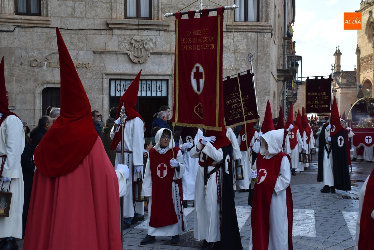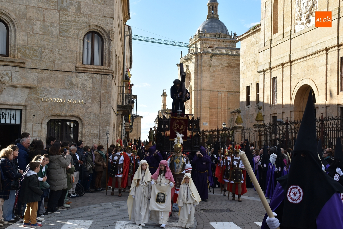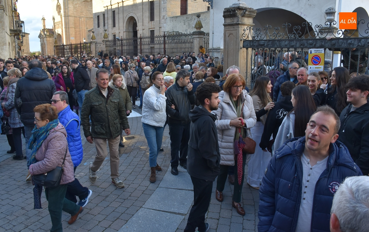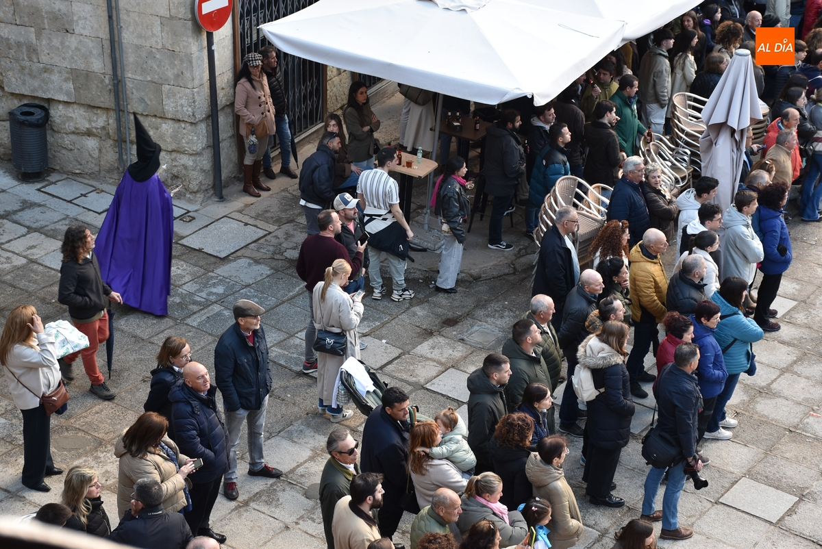 Toda la comitiva hizo conjunta el trayecto por Cardenal Pacheco, Plaza Mayor (que estuvo abarrotadísima), Rúa del Sol, Gigantes, Plaza de San Pedro y Plaza Cristóbal de Castillejo, por donde empezaron los ‘abandonos’, para ir regresando varias de las compañías a sus sedes. Así, El Silencio se quedó en San Pedro-San Isidoro, el Nazareno y parte de La Cruz en San Agustín, y La Borriquilla se desvió para bajar al Arrabal del Puente por la Puerta de Santiago.
