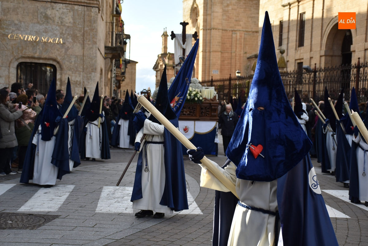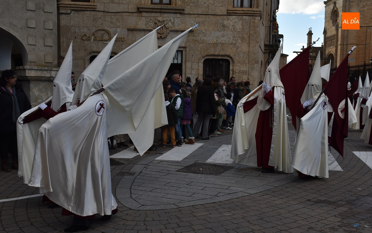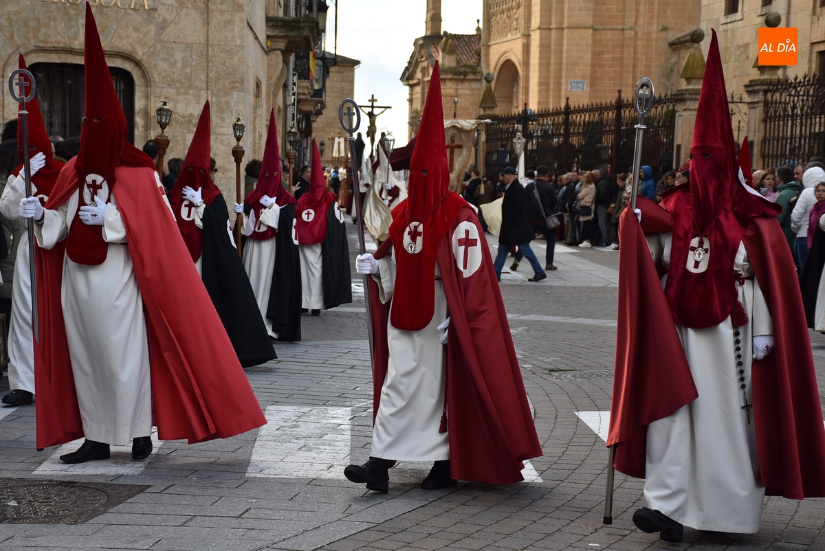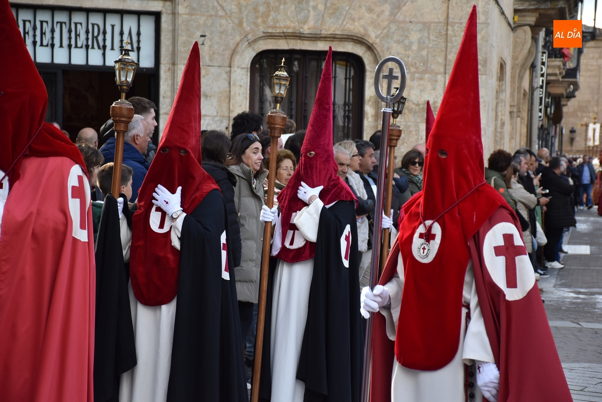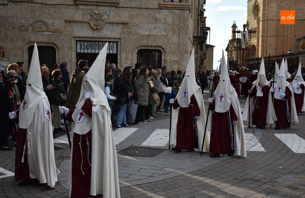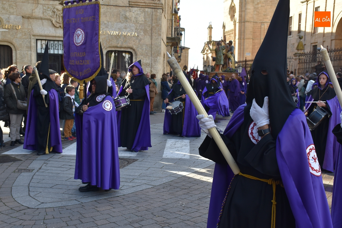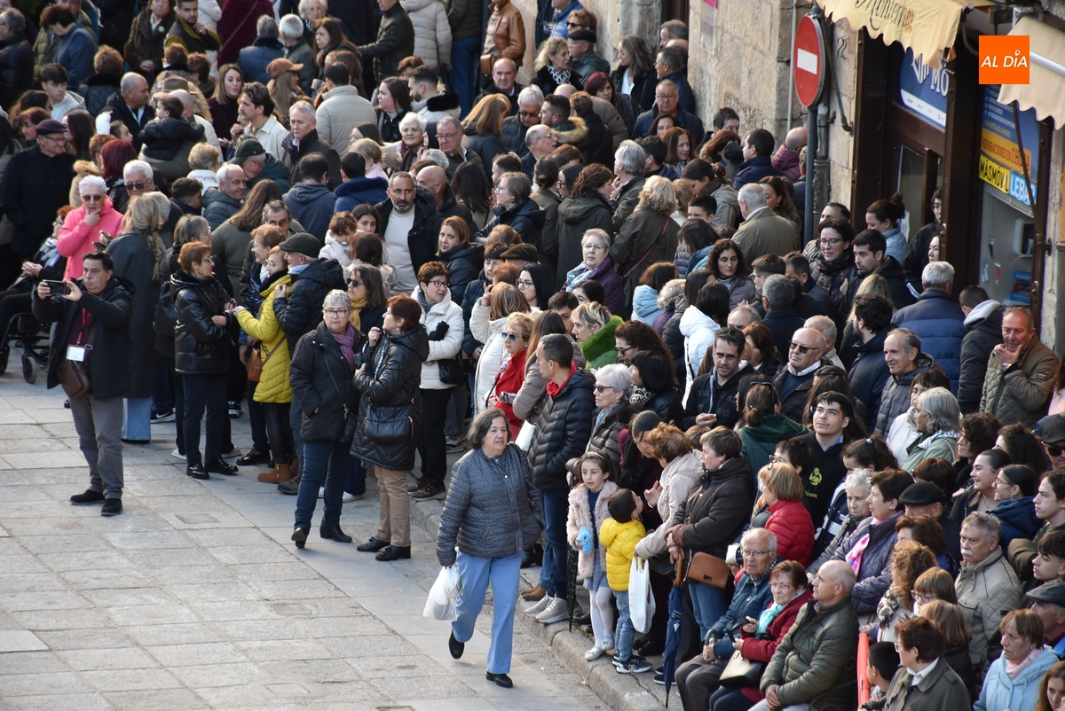 Toda la comitiva hizo conjunta el trayecto por Cardenal Pacheco, Plaza Mayor (que estuvo abarrotadísima), Rúa del Sol, Gigantes, Plaza de San Pedro y Plaza Cristóbal de Castillejo, por donde empezaron los ‘abandonos’, para ir regresando varias de las compañías a sus sedes. Así, El Silencio se quedó en San Pedro-San Isidoro, el Nazareno y parte de La Cruz en San Agustín, y La Borriquilla se desvió para bajar al Arrabal del Puente por la Puerta de Santiago.