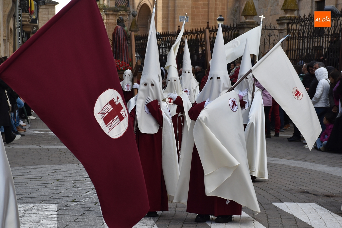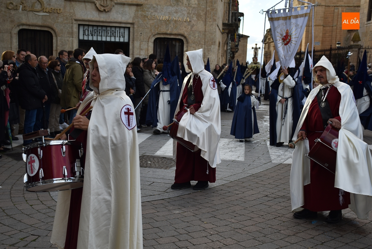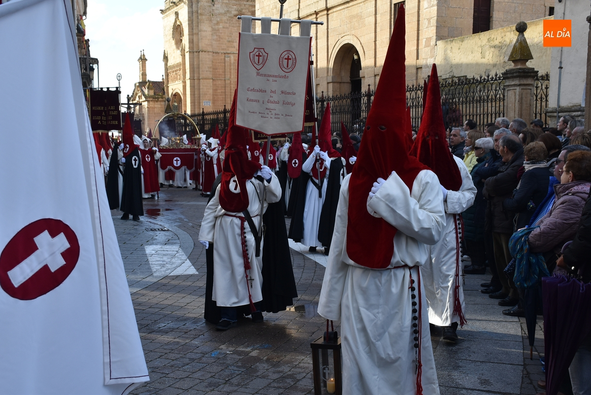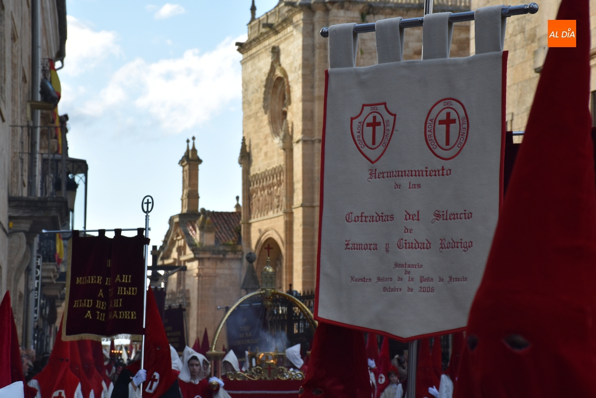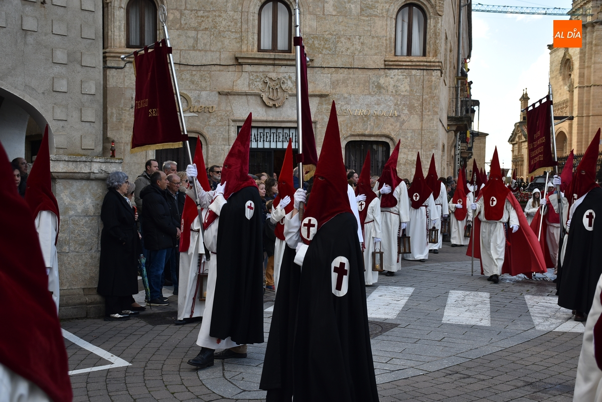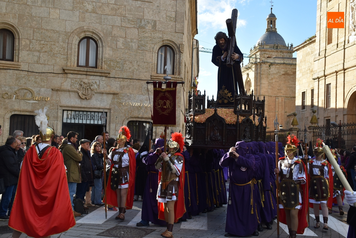 Toda la comitiva hizo conjunta el trayecto por Cardenal Pacheco, Plaza Mayor (que estuvo abarrotadísima), Rúa del Sol, Gigantes, Plaza de San Pedro y Plaza Cristóbal de Castillejo, por donde empezaron los ‘abandonos’, para ir regresando varias de las compañías a sus sedes. Así, El Silencio se quedó en San Pedro-San Isidoro, el Nazareno y parte de La Cruz en San Agustín, y La Borriquilla se desvió para bajar al Arrabal del Puente por la Puerta de Santiago.