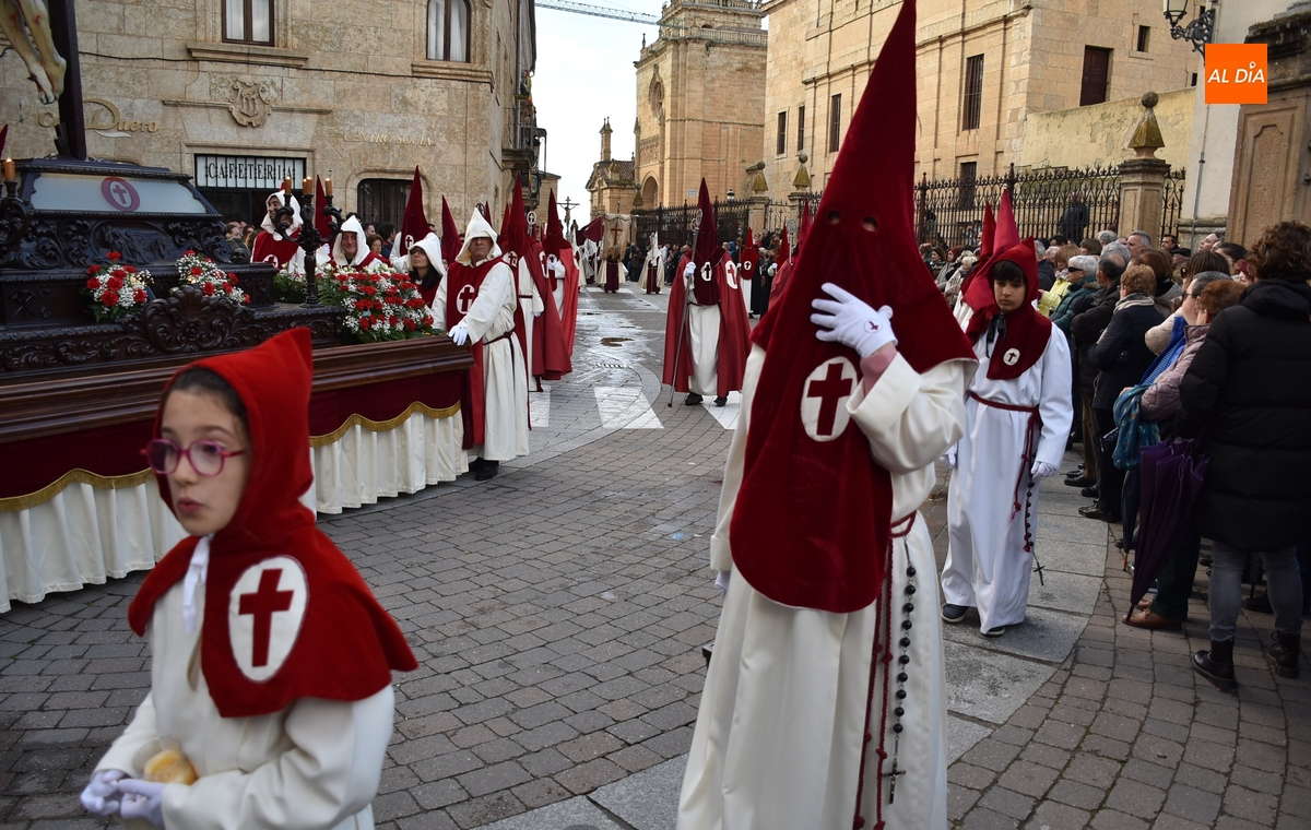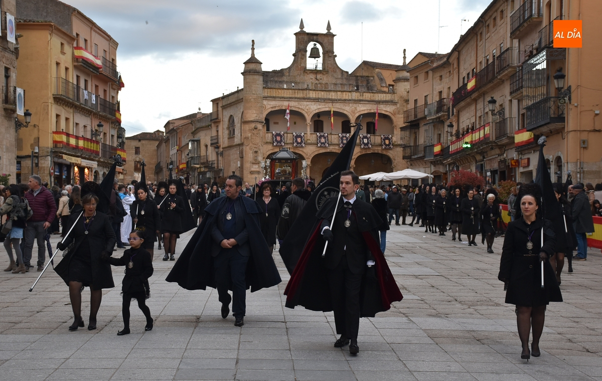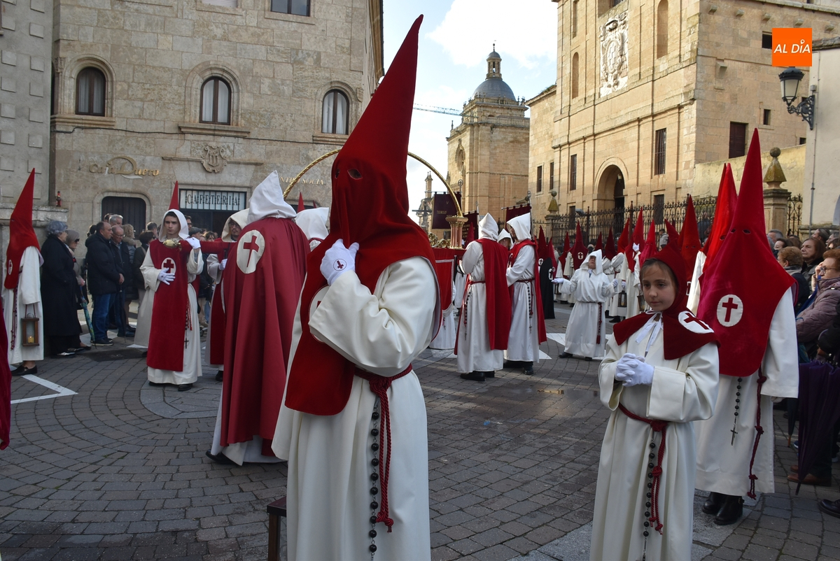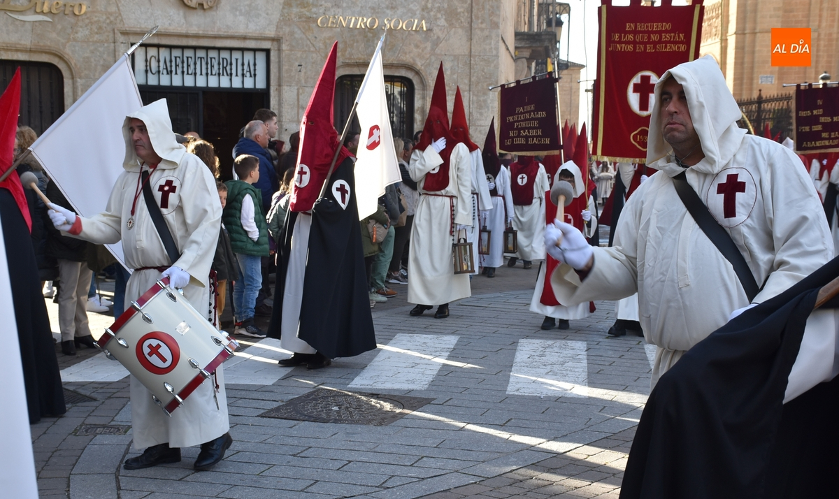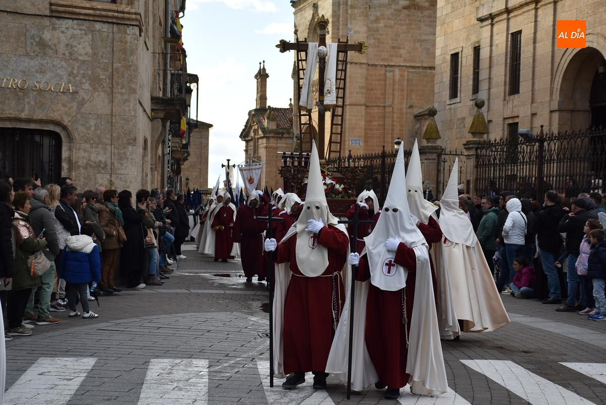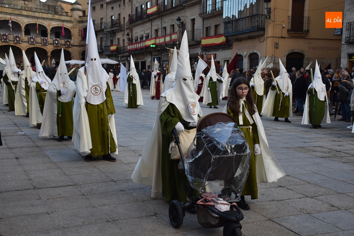 Toda la comitiva hizo conjunta el trayecto por Cardenal Pacheco, Plaza Mayor (que estuvo abarrotadísima), Rúa del Sol, Gigantes, Plaza de San Pedro y Plaza Cristóbal de Castillejo, por donde empezaron los ‘abandonos’, para ir regresando varias de las compañías a sus sedes. Así, El Silencio se quedó en San Pedro-San Isidoro, el Nazareno y parte de La Cruz en San Agustín, y La Borriquilla se desvió para bajar al Arrabal del Puente por la Puerta de Santiago.